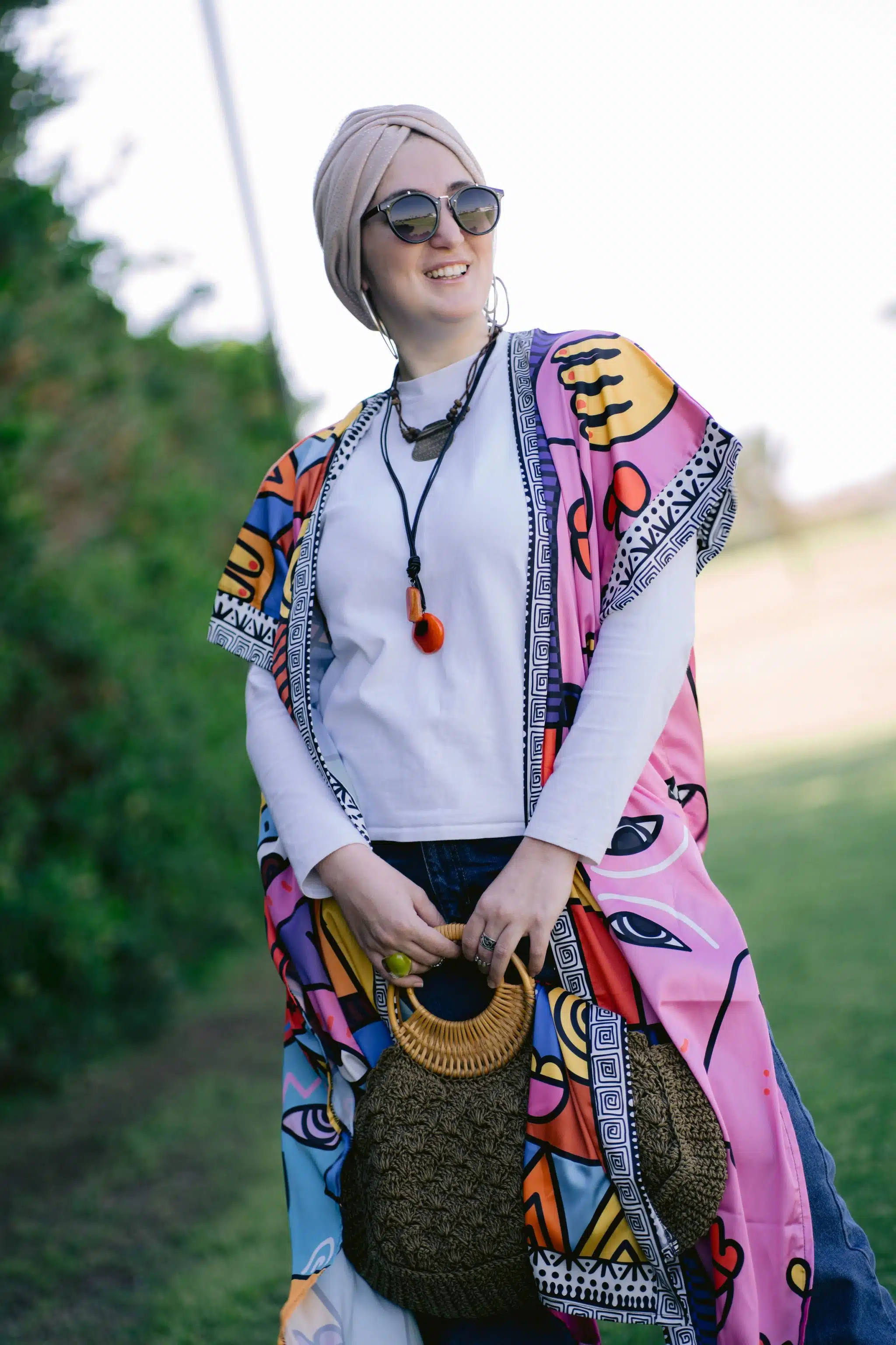 You can wear it like a kimono, with shorts, with pants, or with a shirt for a modest look.