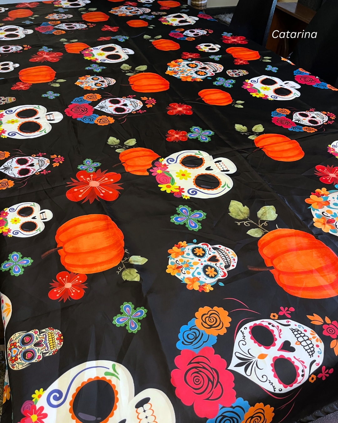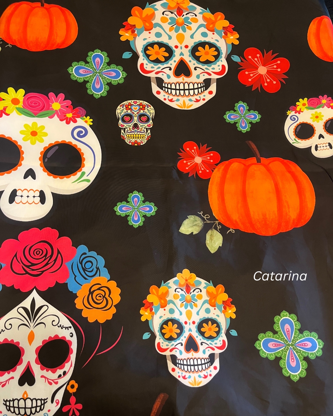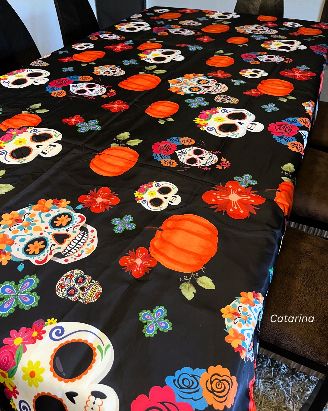 Halloween Tablecover in waterproof material size 140×250 cm for 6-8 seater table, with cotton back tailored lining. ( Catarina Pattern)