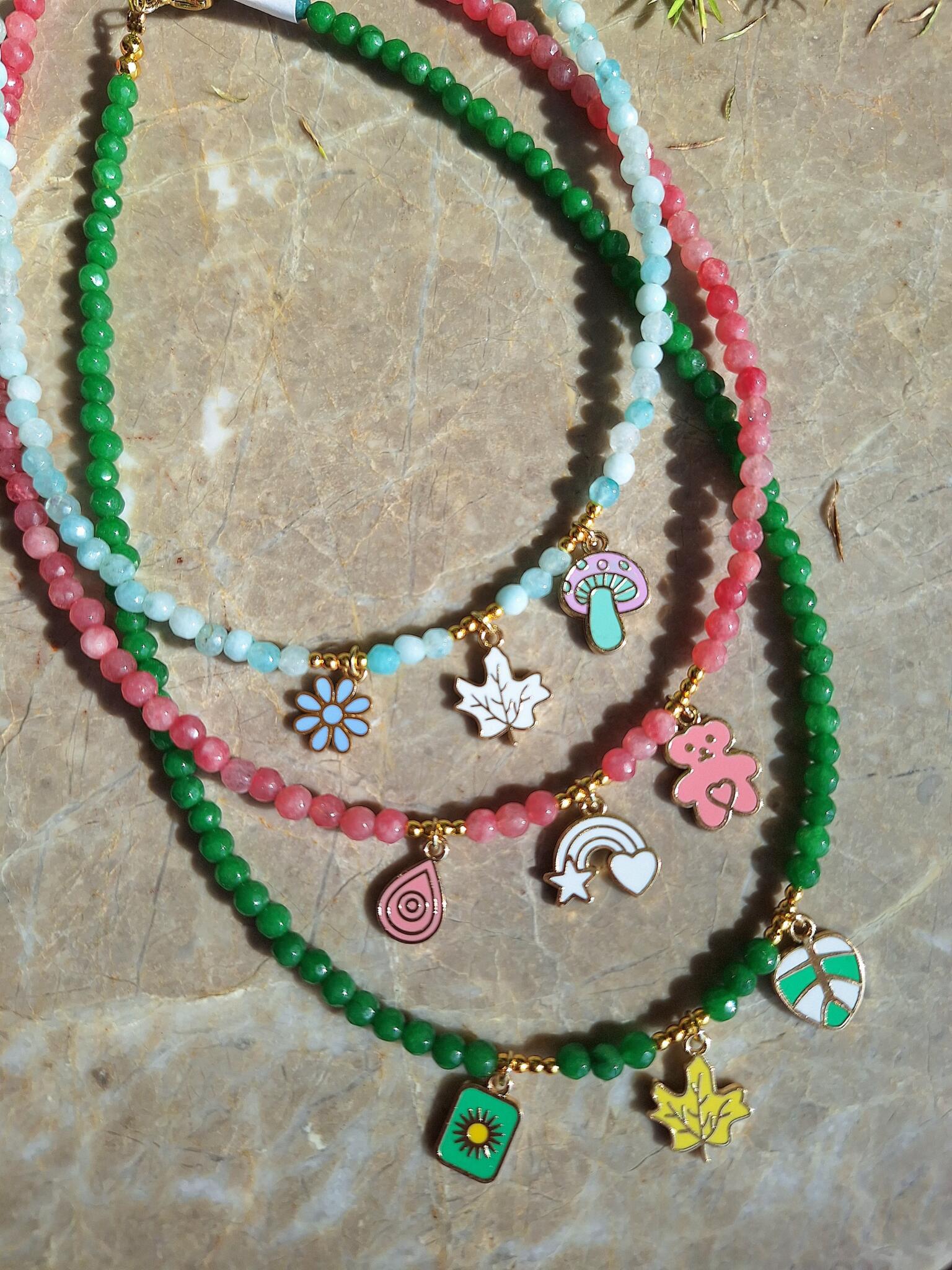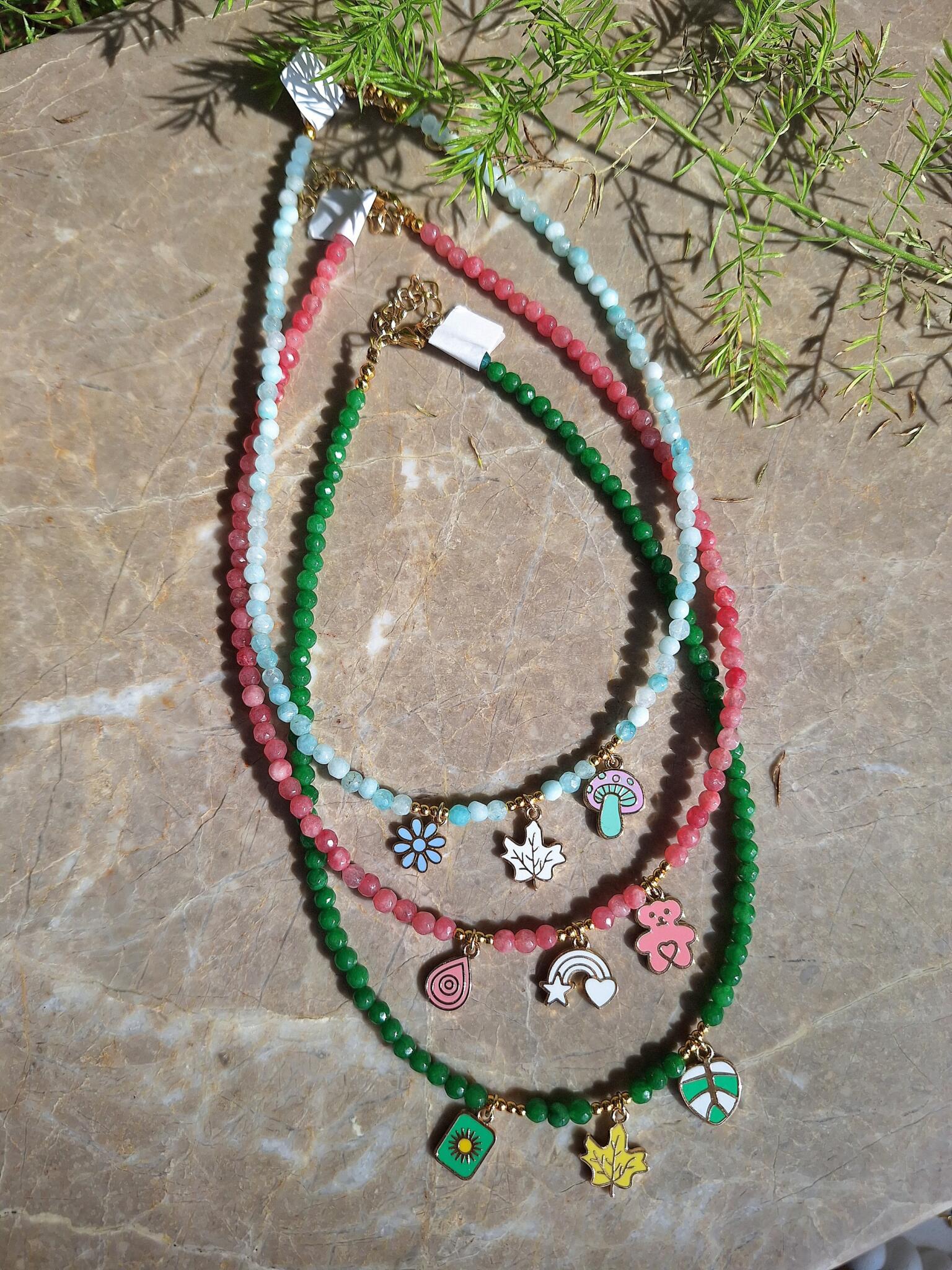 Agate stones necklaces with charms.