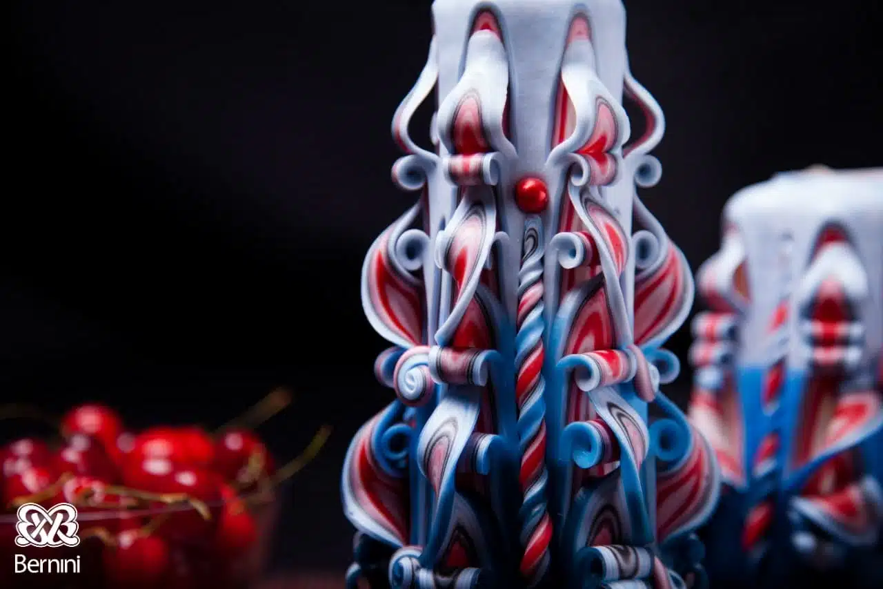 Set of  17 cm and 10 cm Shades of Blue & red Candles.