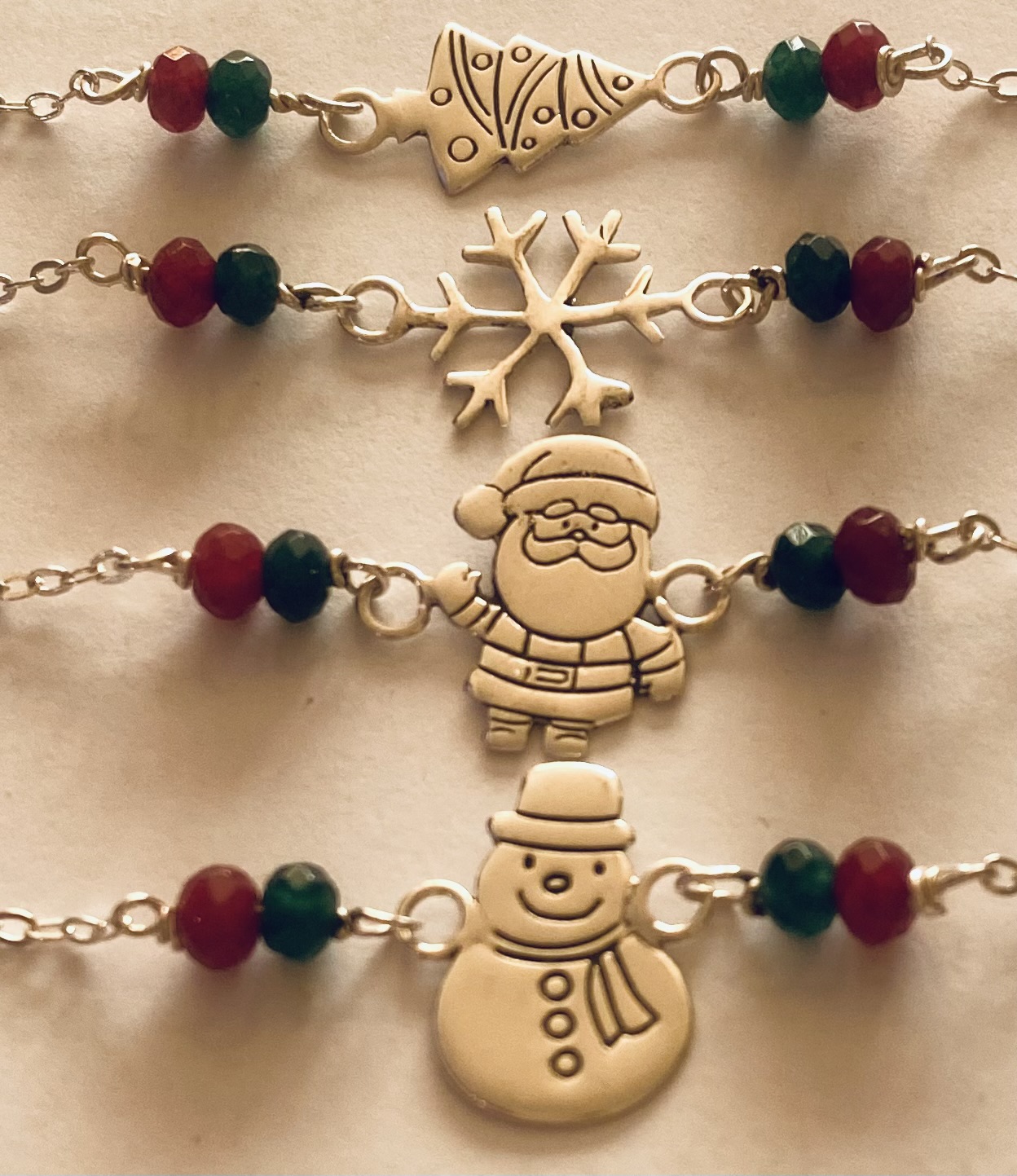 Papa Noel, Christmas tree, Snowman and Snow flake