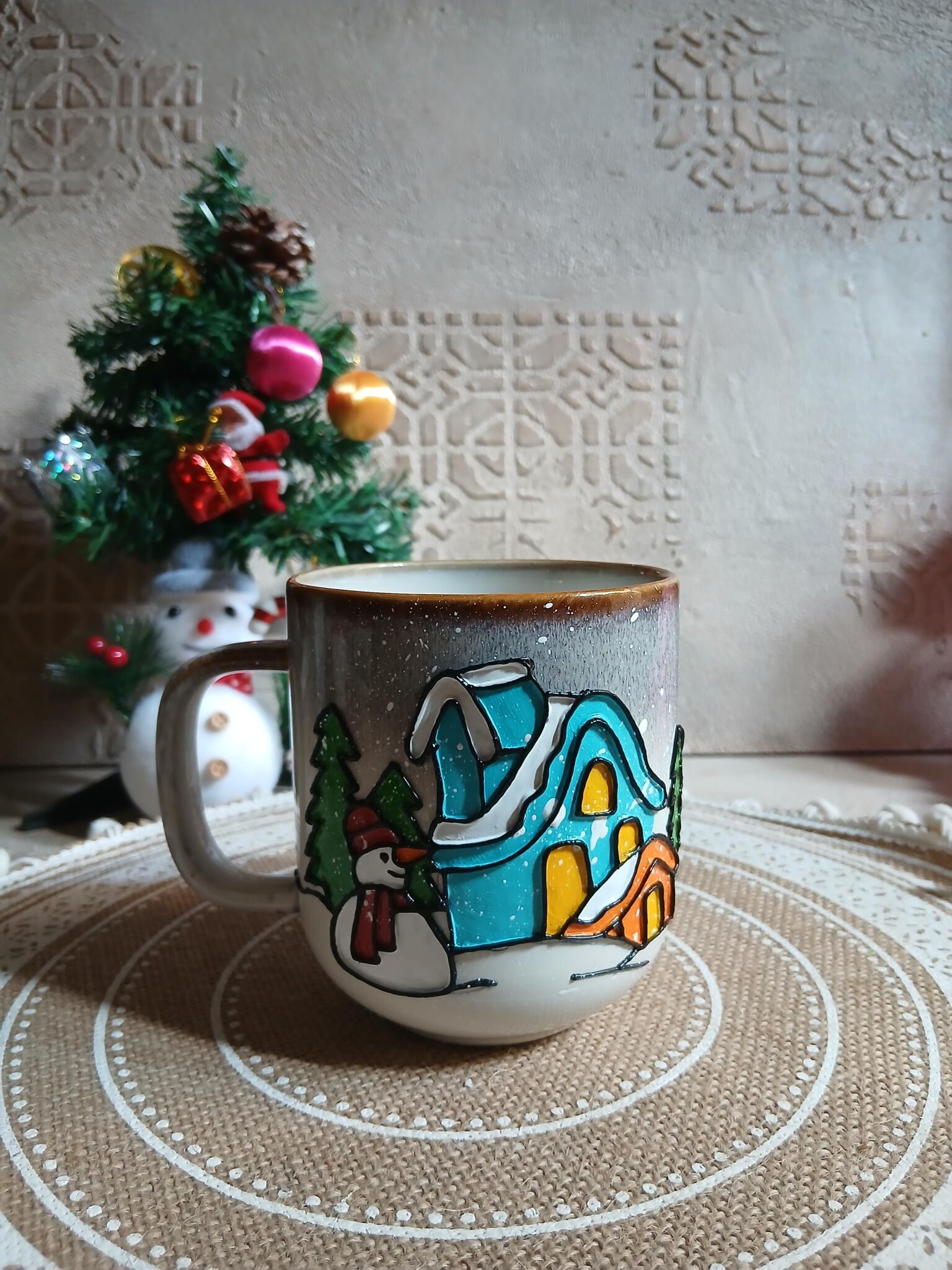Hand painted christmas house on mug Size 400 ml Hand wash save