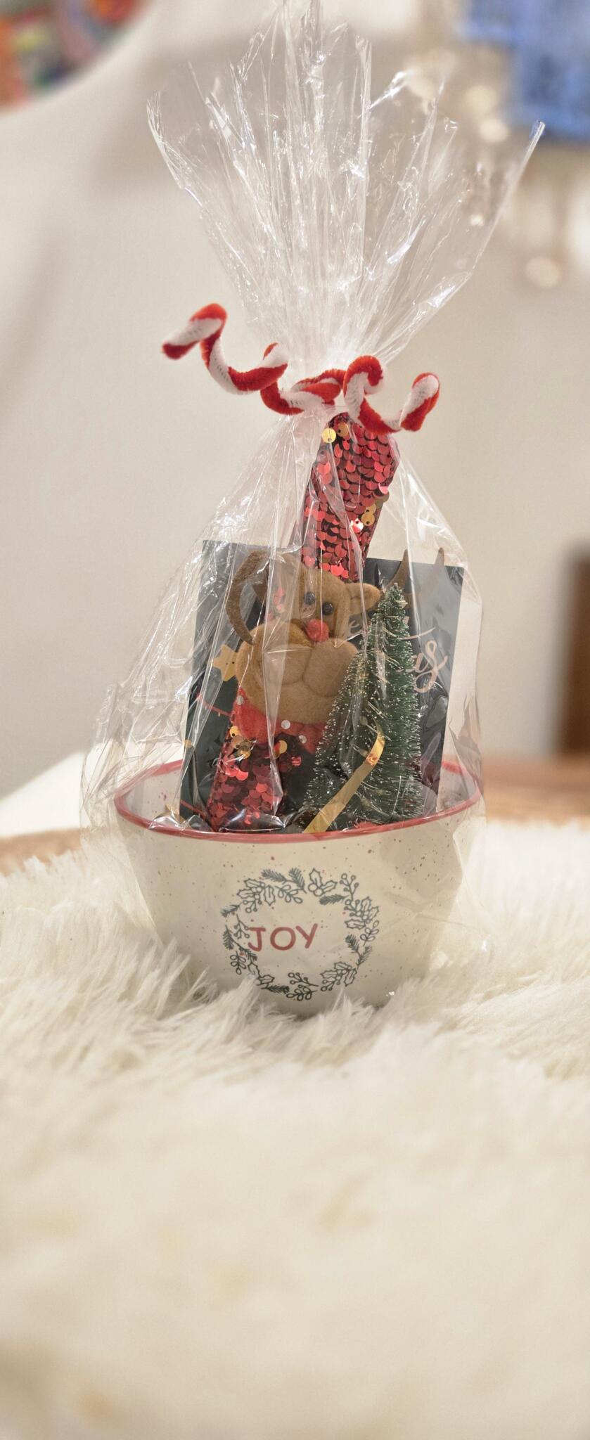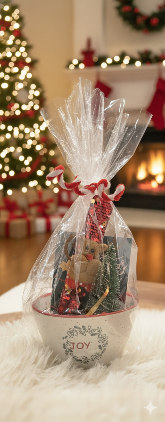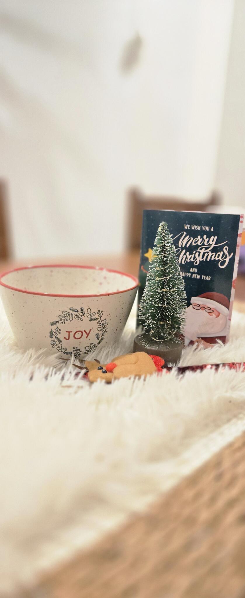 CHRISTMAS BOWEL, NOTEBOOK, LIGHTING CHRISTMAS TREE AND GLITTER BRACELET.