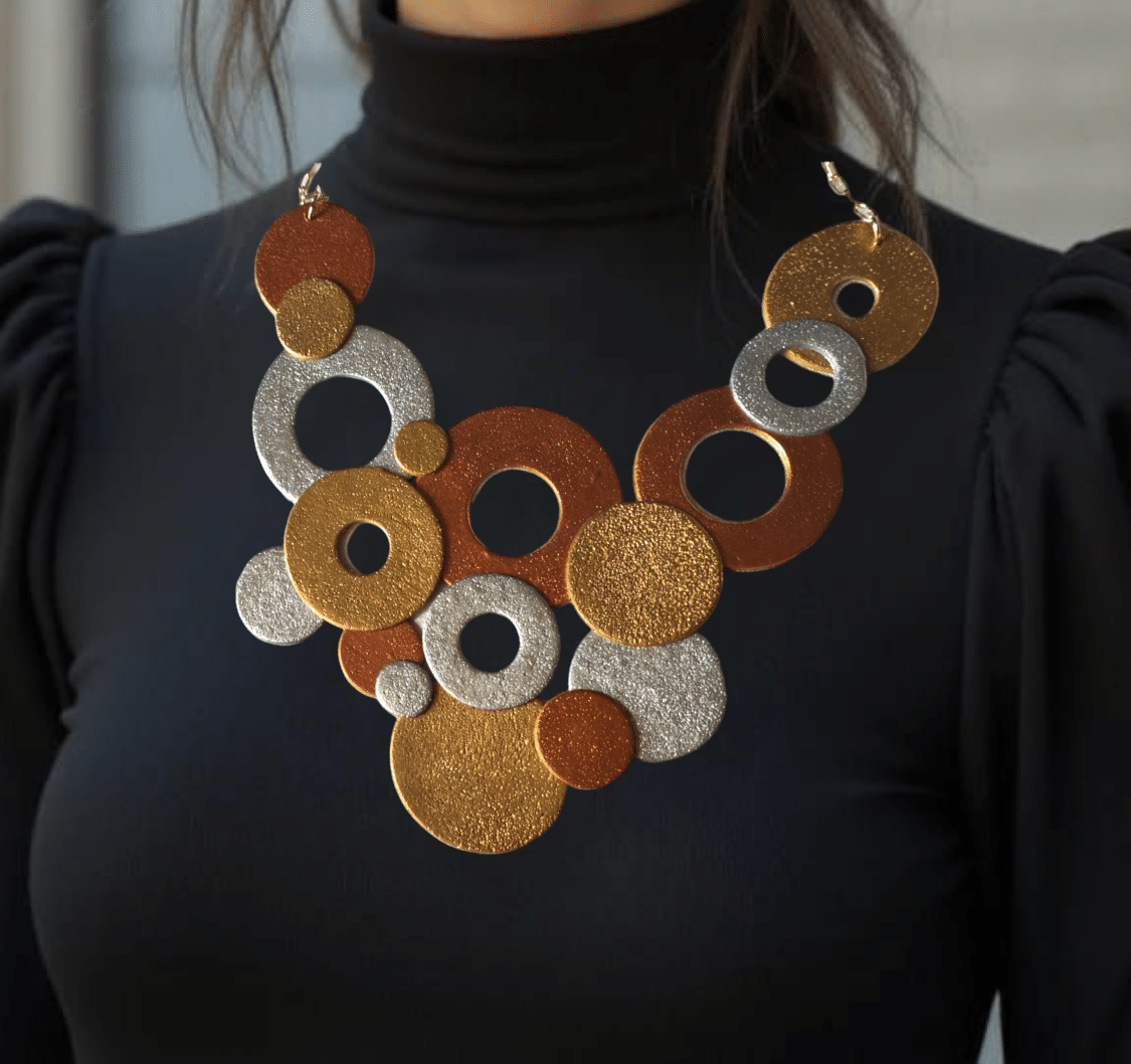 one-of-a-kind necklace with a modern design of interlocking circles.