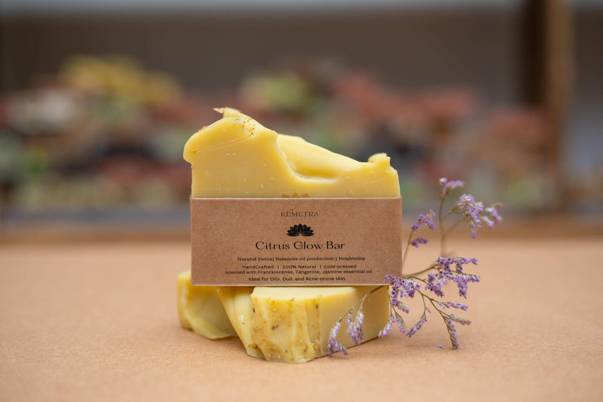 Awaken your skin with the Citrus Glow Soap Bar, a 100% natural, cold-pressed soap designed to detoxify, balance oil production, and reveal a radiant complexion. Enriched with lemon-infused olive oil, coconut oil, shea butter, castor oil, and jojoba oil, it deeply nourishes and revitalizes the skin while maintaining its natural moisture. The uplifting blend of frankincense, tangerine, and jasmine essential oils leaves a refreshing, aromatic scent, turning every cleanse into a rejuvenating skincare ritual. Gentle yet effective, this soap helps promote a balanced, luminous, and healthy-looking glow—perfect for daily use.