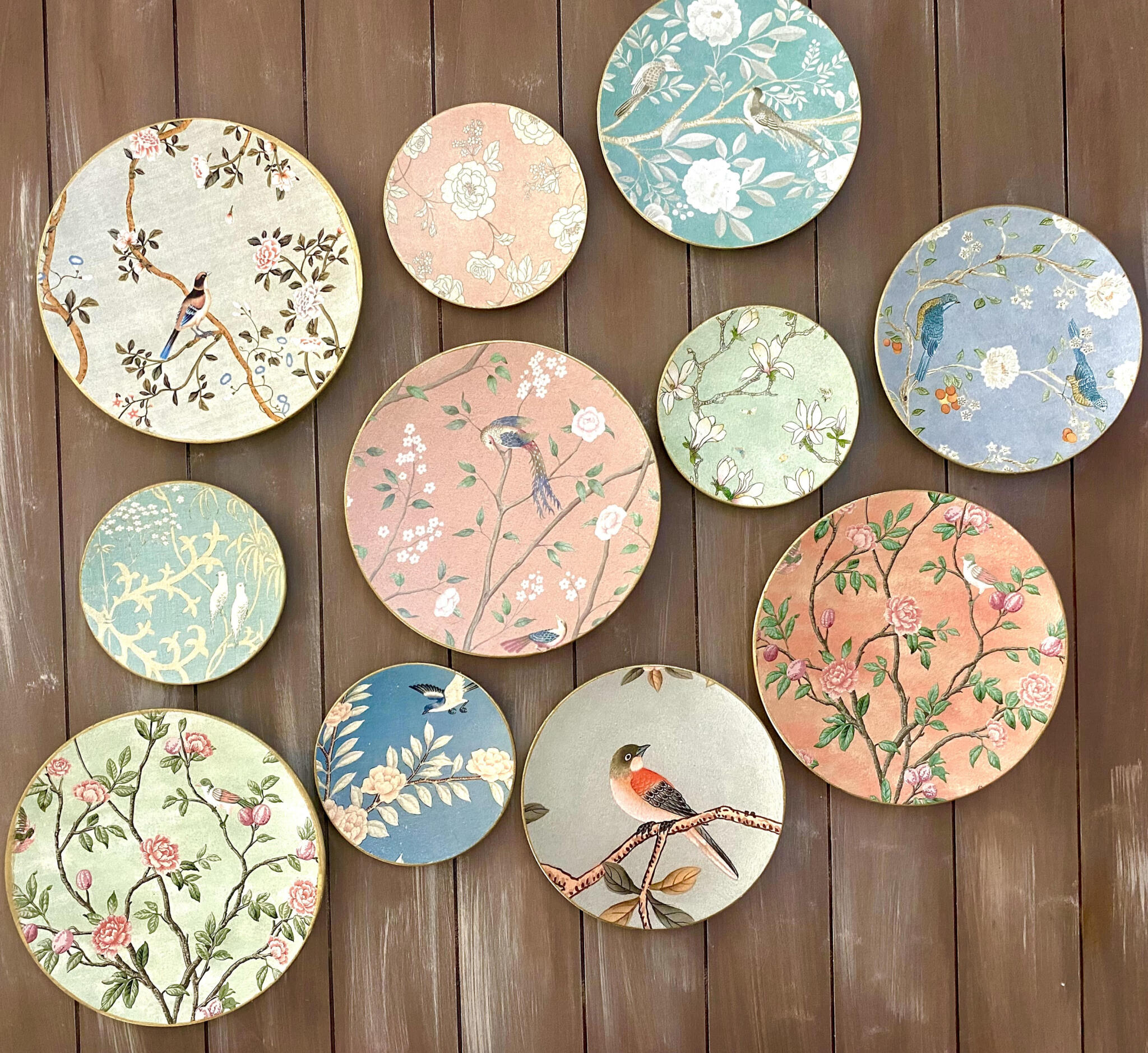 Decoupaged wall plates in classic chinoiserie design