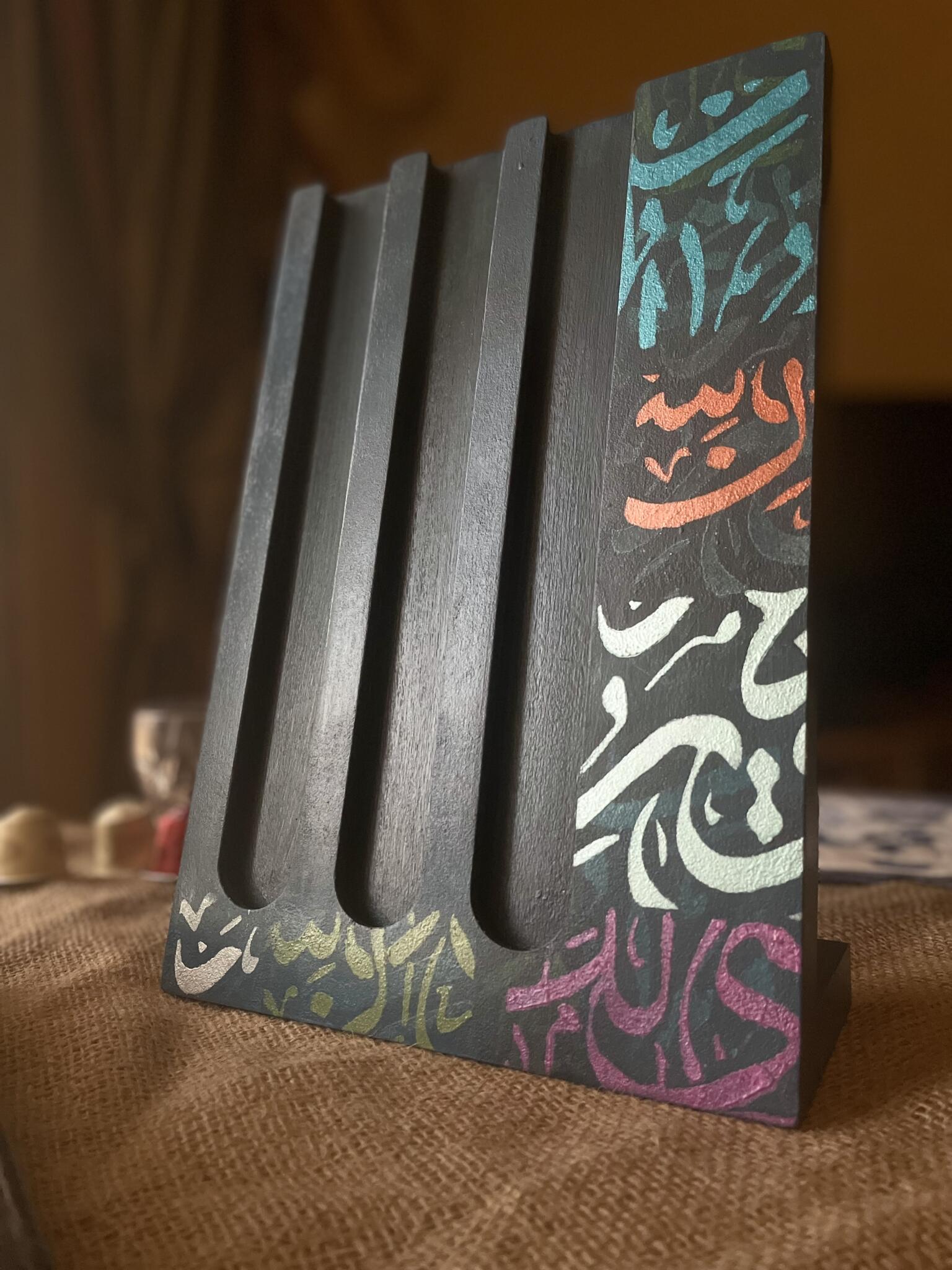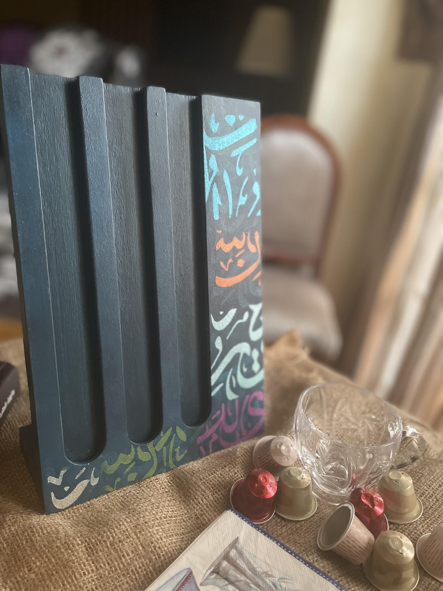 Serve and display your coffee pods in this Arabic calligraphy style stand.