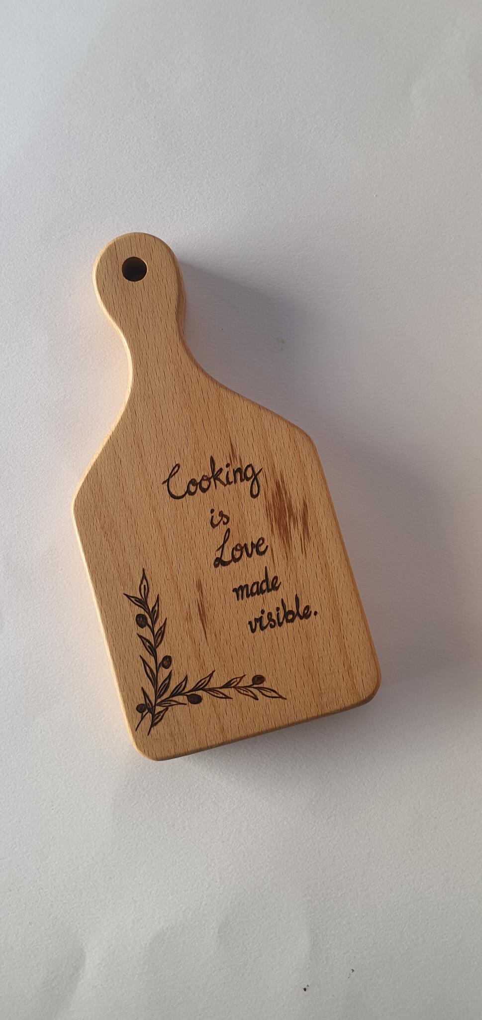 As each piece is hand-burned on natural wood, expect beautiful variations in grain and burn color.