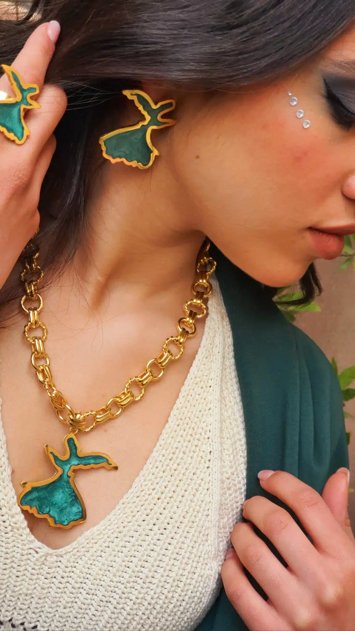 Handmade copper set plated with gold 18k and melting stones حجر العقيق a piece of ramadan traditional jewelry