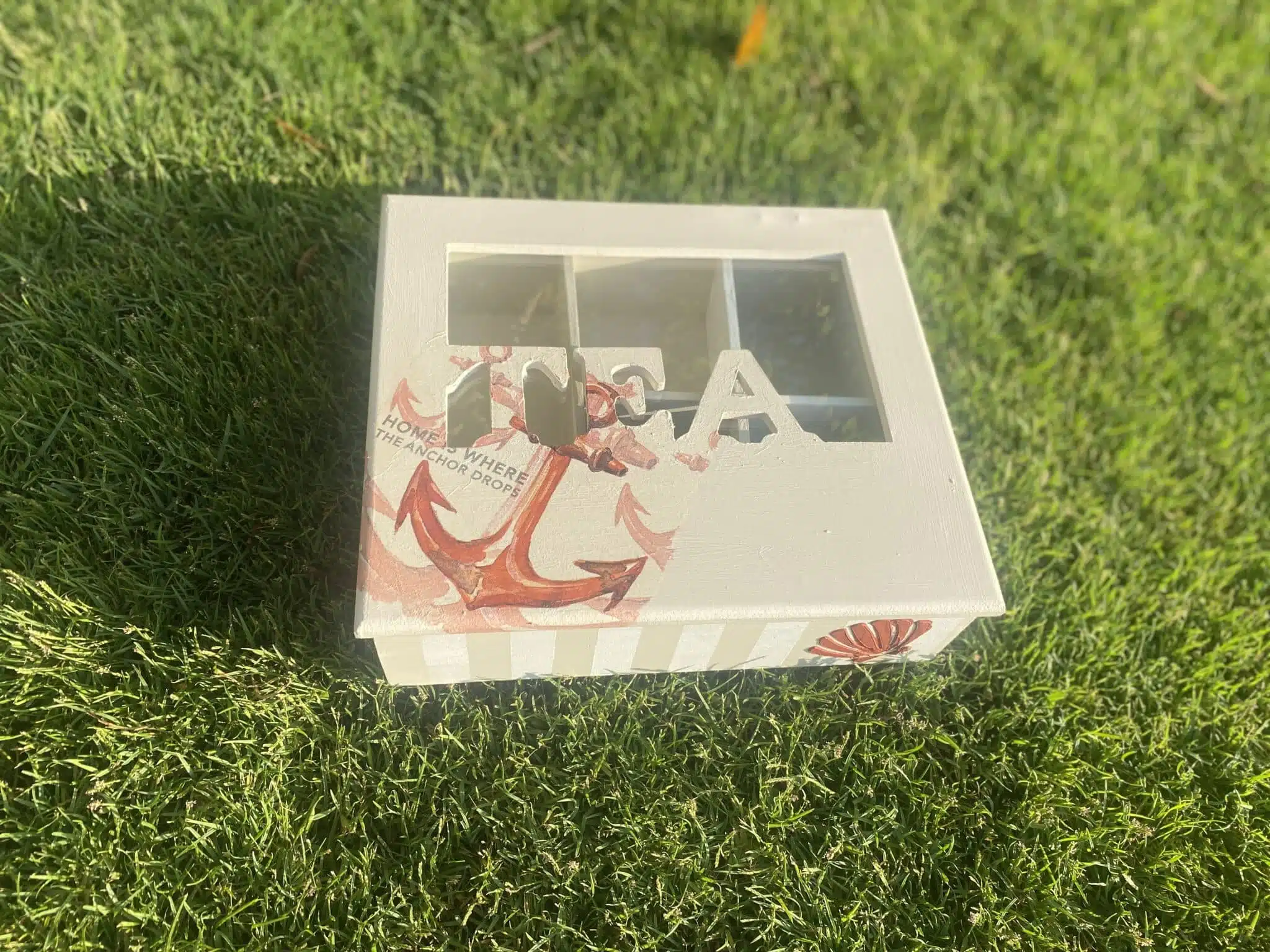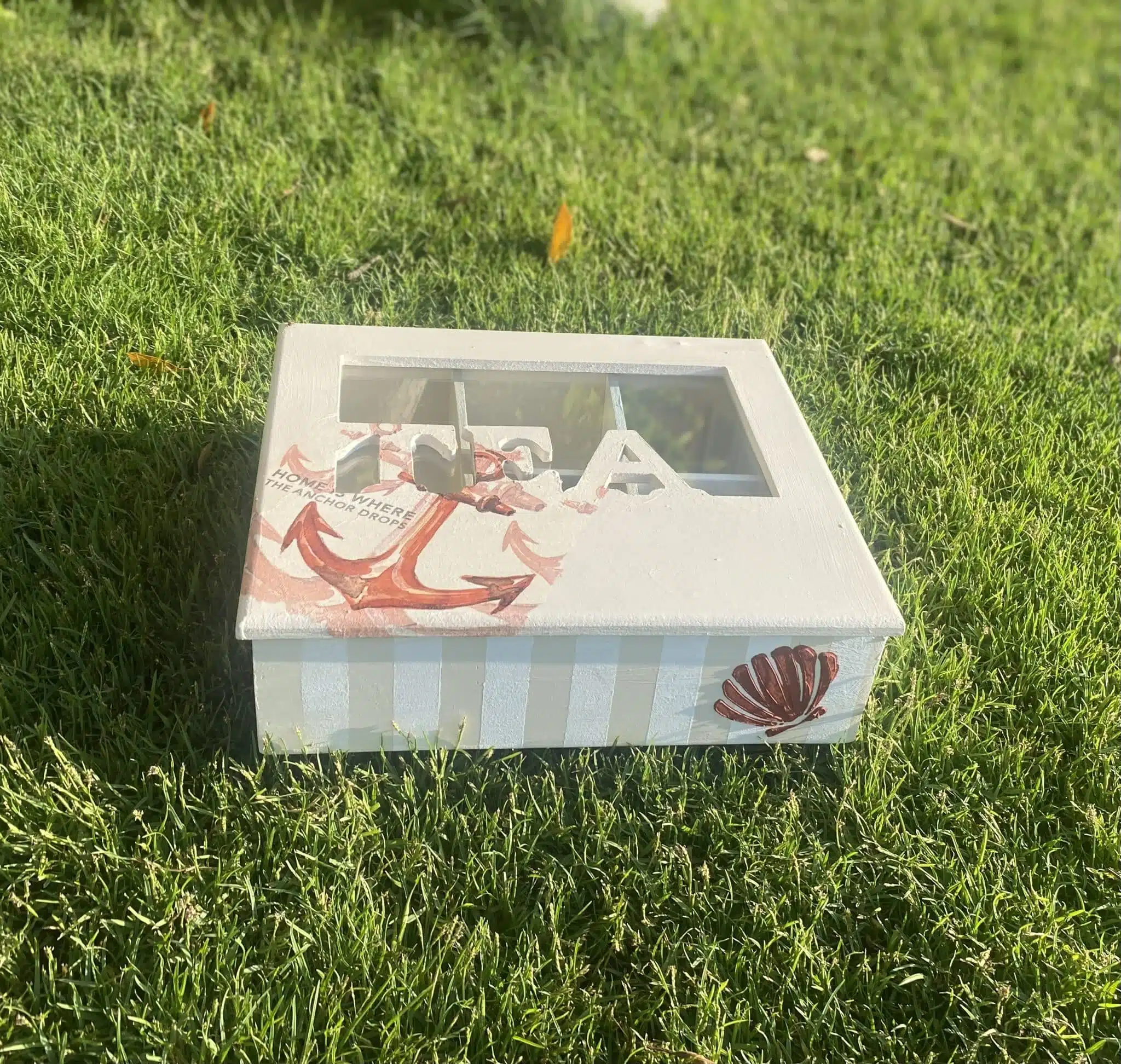 Wooden Summer Tea Box with Coral Anchor and Sea Shell