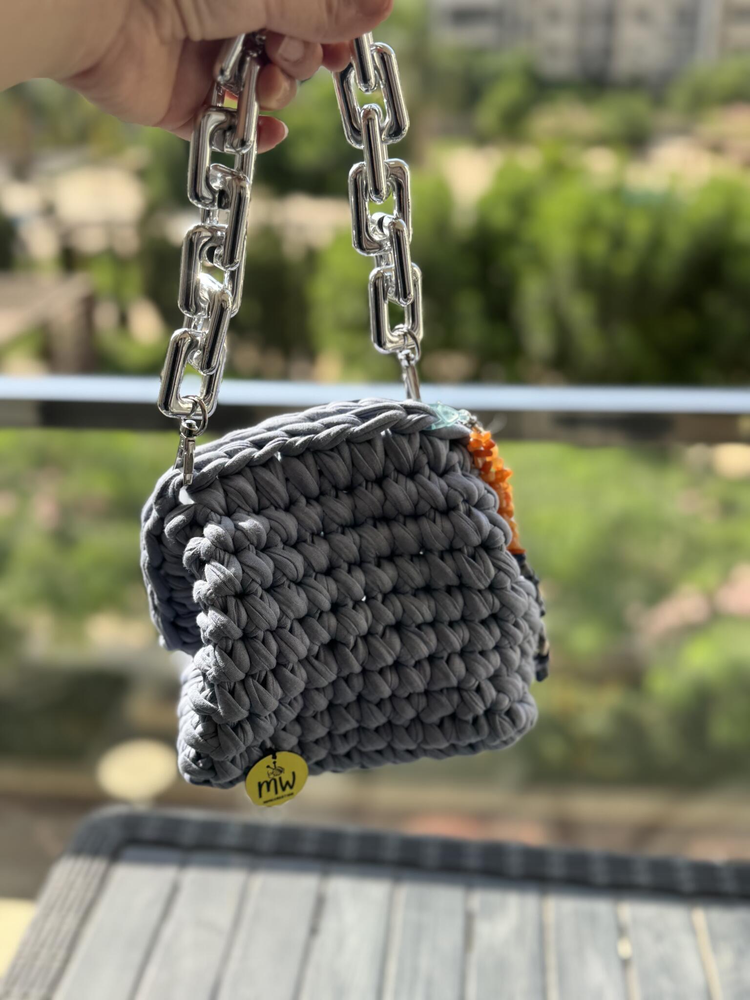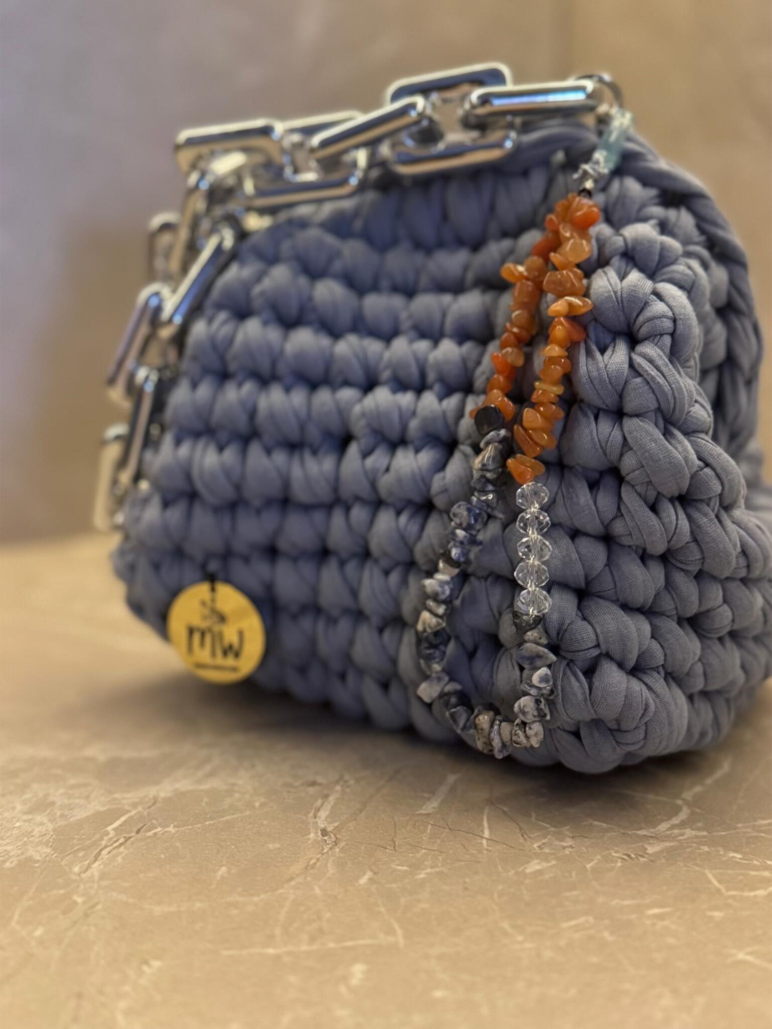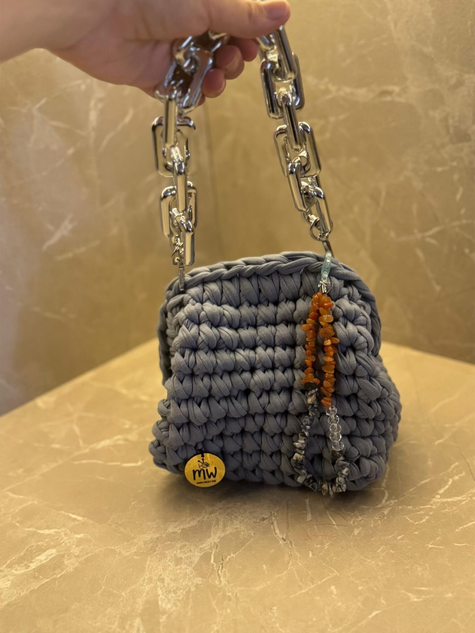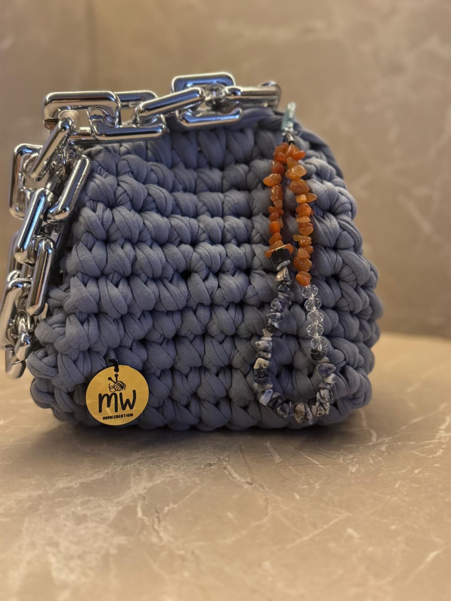 Crochet clutch with small handle and accessories