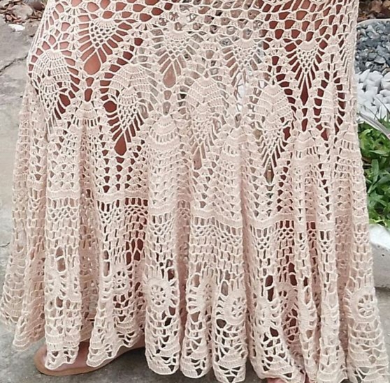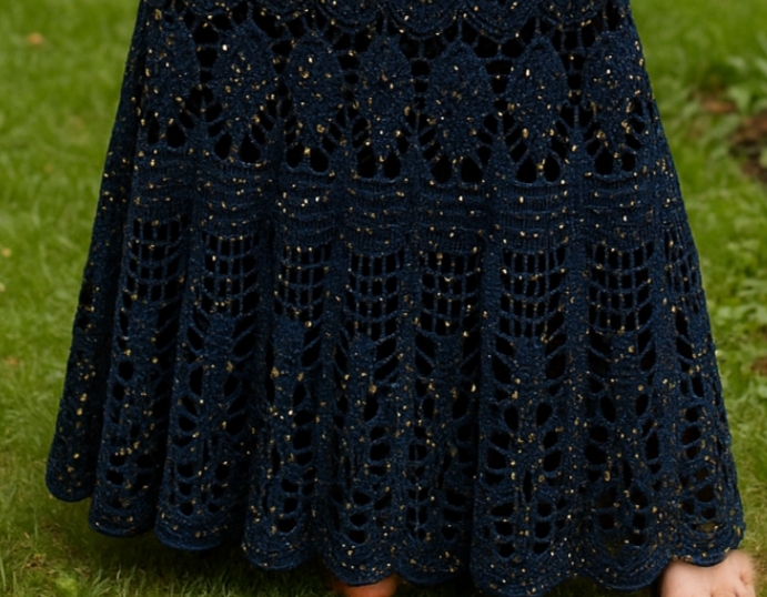 Handmade crochet skirt, russian fine silky thread Embroidered with small gold sequins