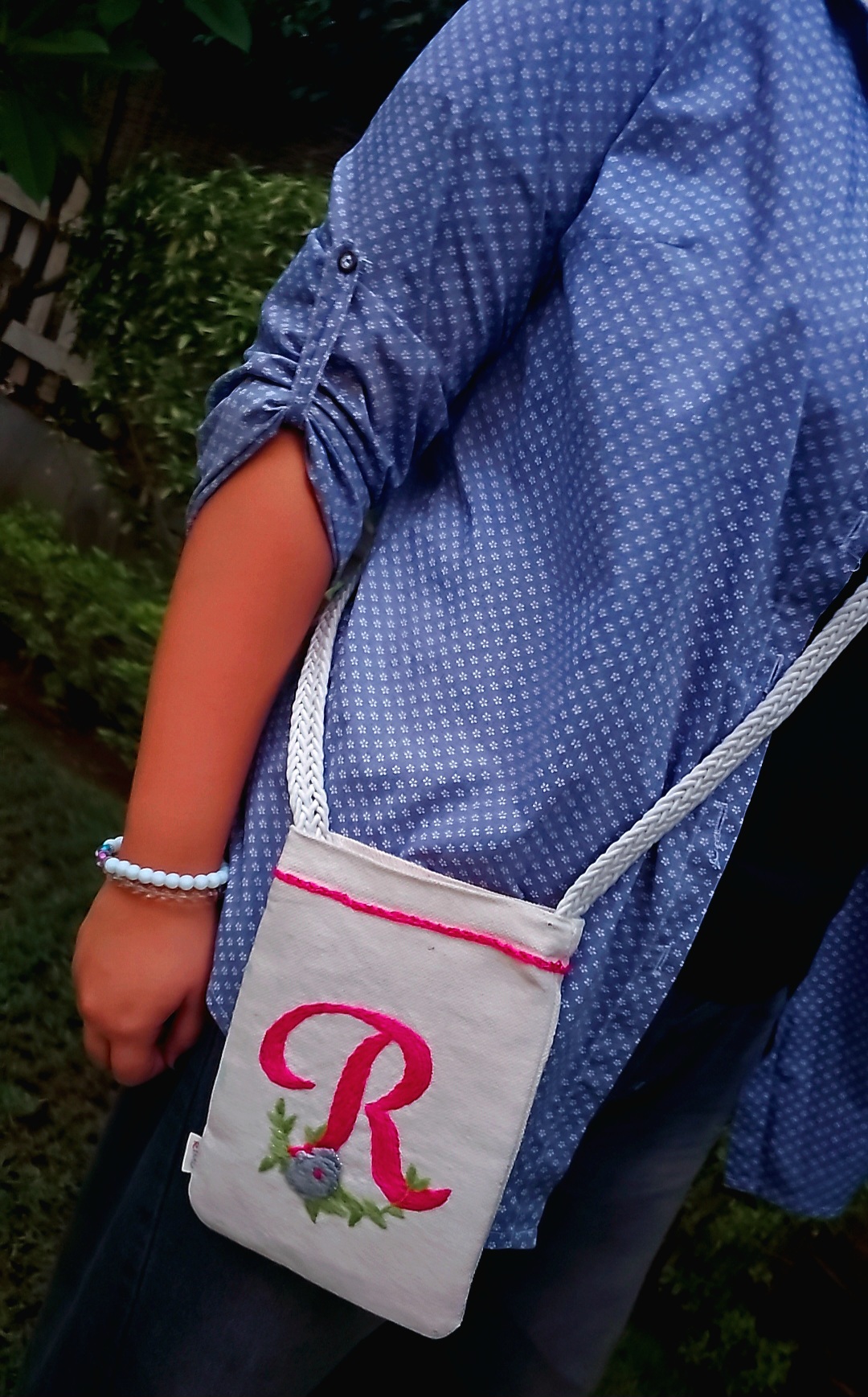 Cross pocket cover embroidered with first letter .fits mobile, money,keys,credit card…..