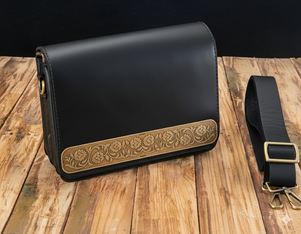 Handmade Natural Leather Crossbody Bag with Brass Ornament