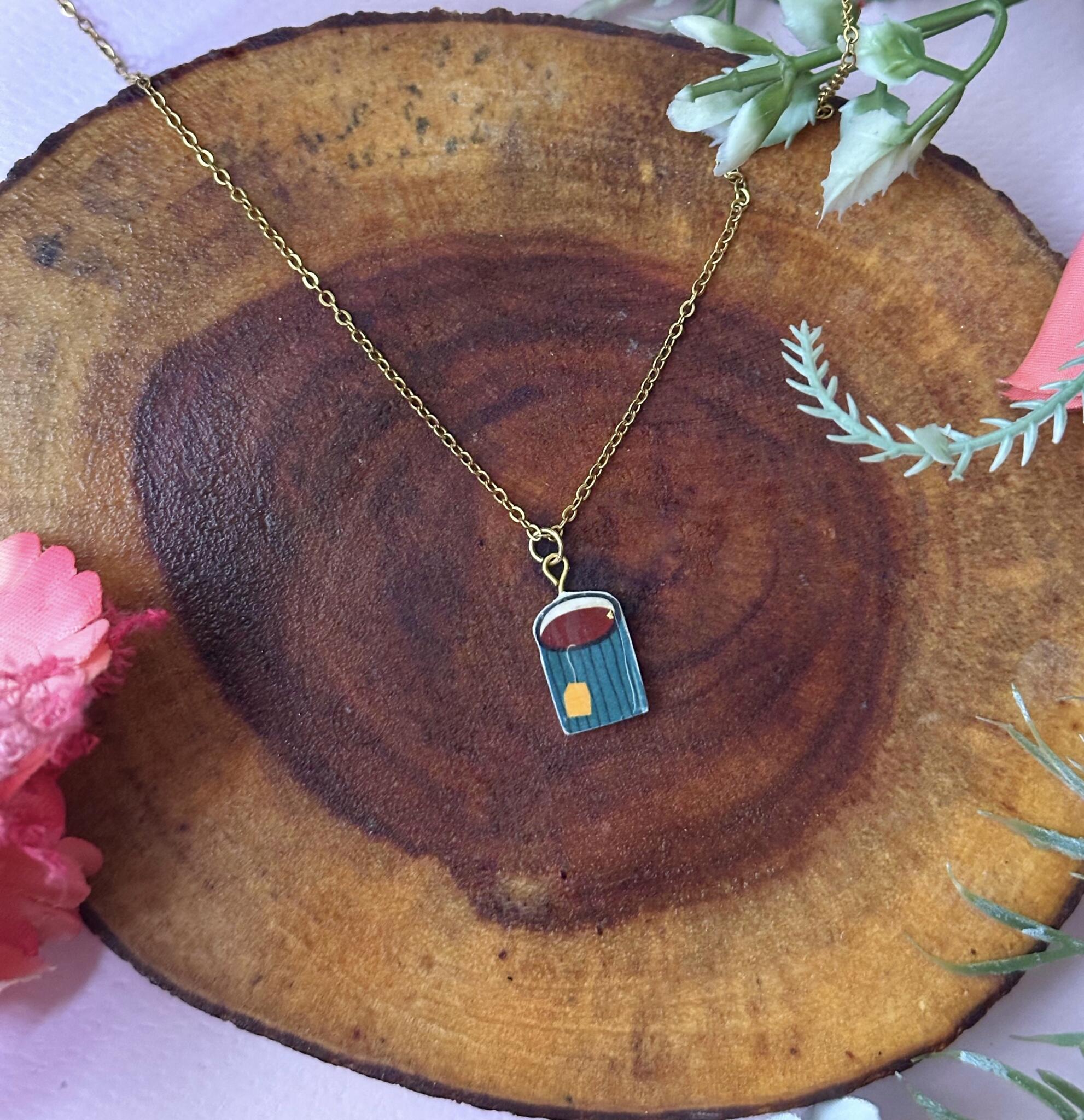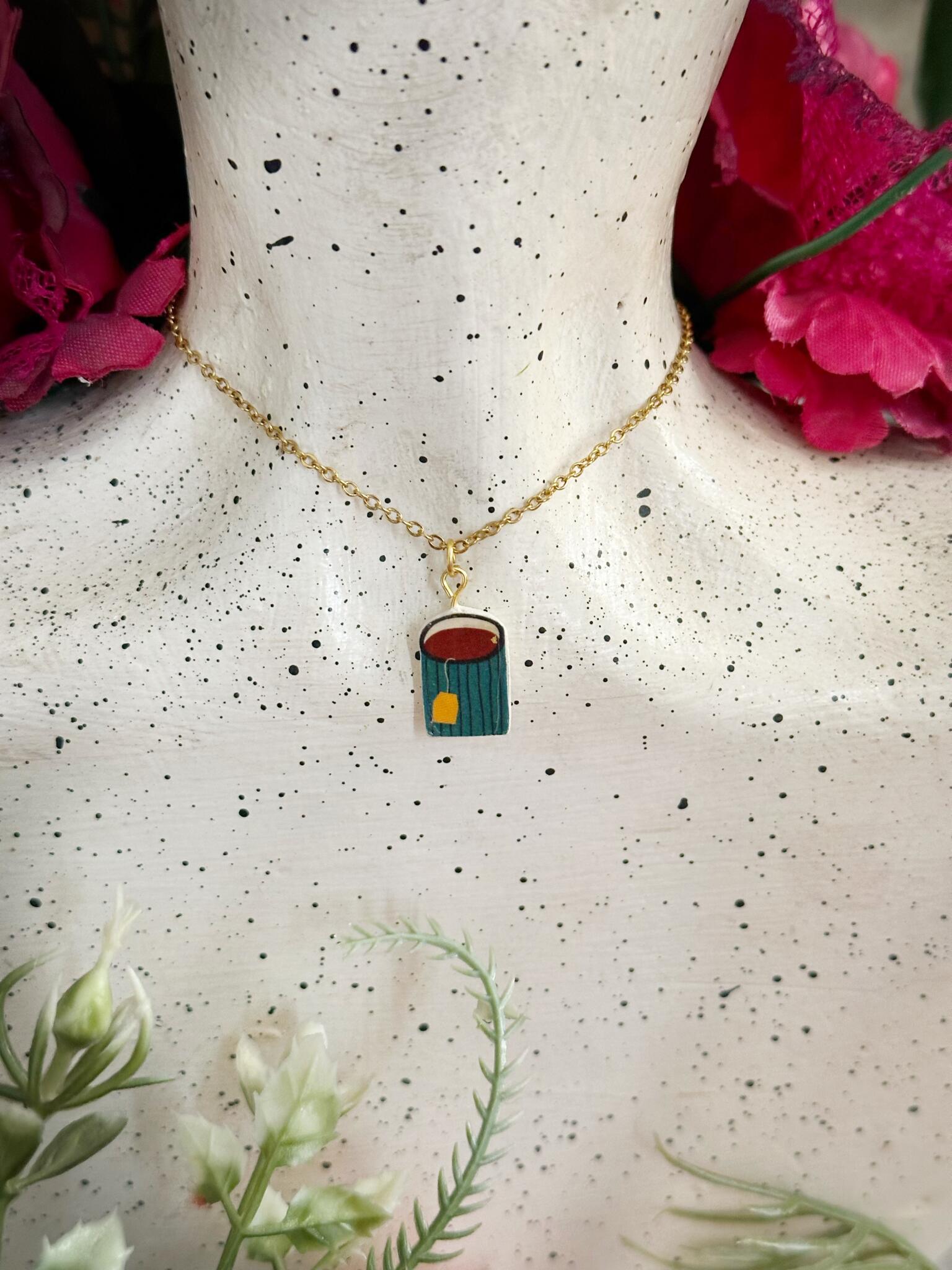 Handmade cup of tea pendant comes with stainless steel necklace , 45 cm.