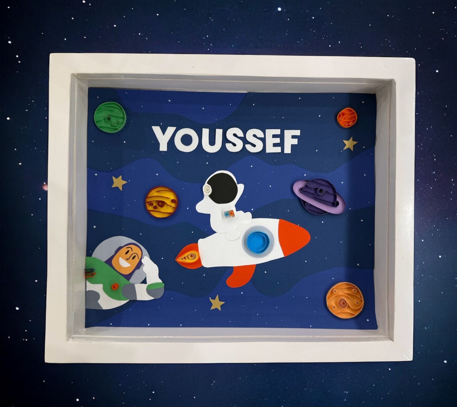 Handmade paper quilling frame to add a unique touch to your room.