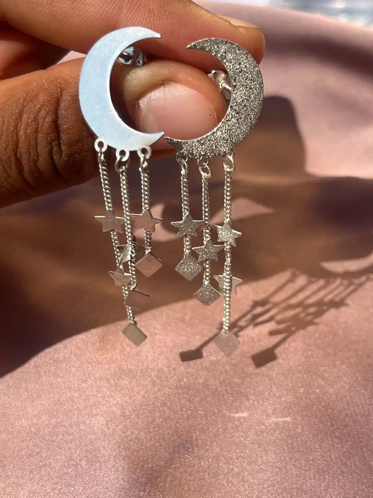 it is a hand made product in an orignal design ,the paired earring has one side shines with brilliance of polished silver, while the other side features a textured matte finish.