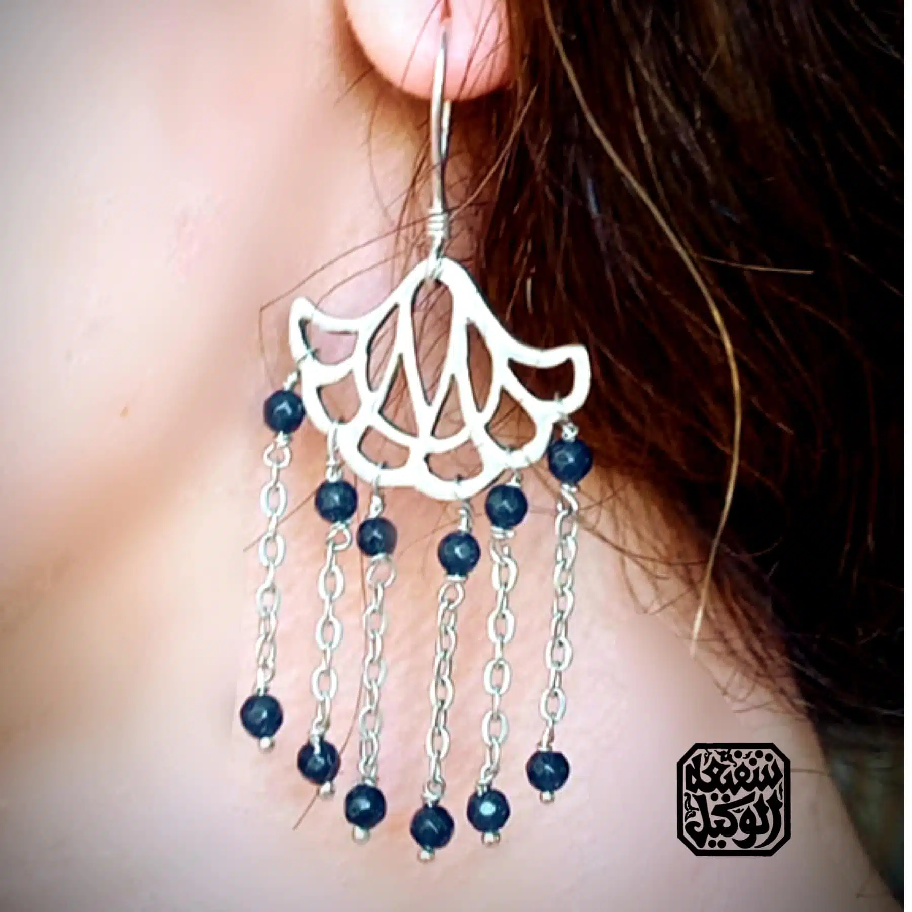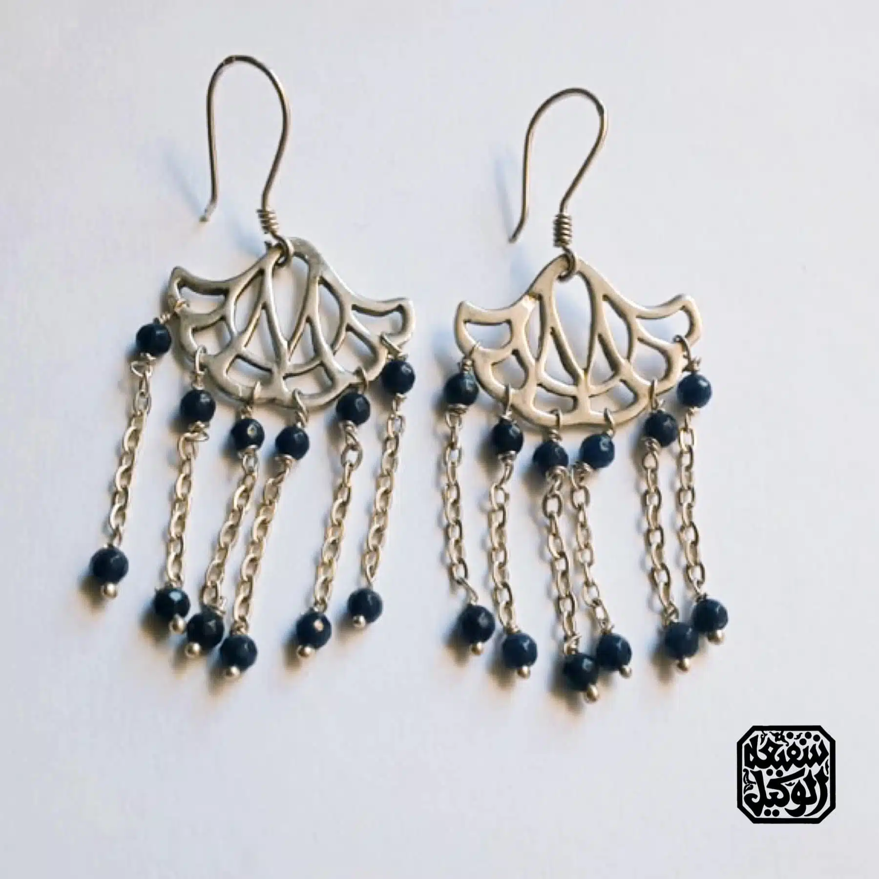 Dangling sterling silver 925 Lotus earrings with semiprecious stones