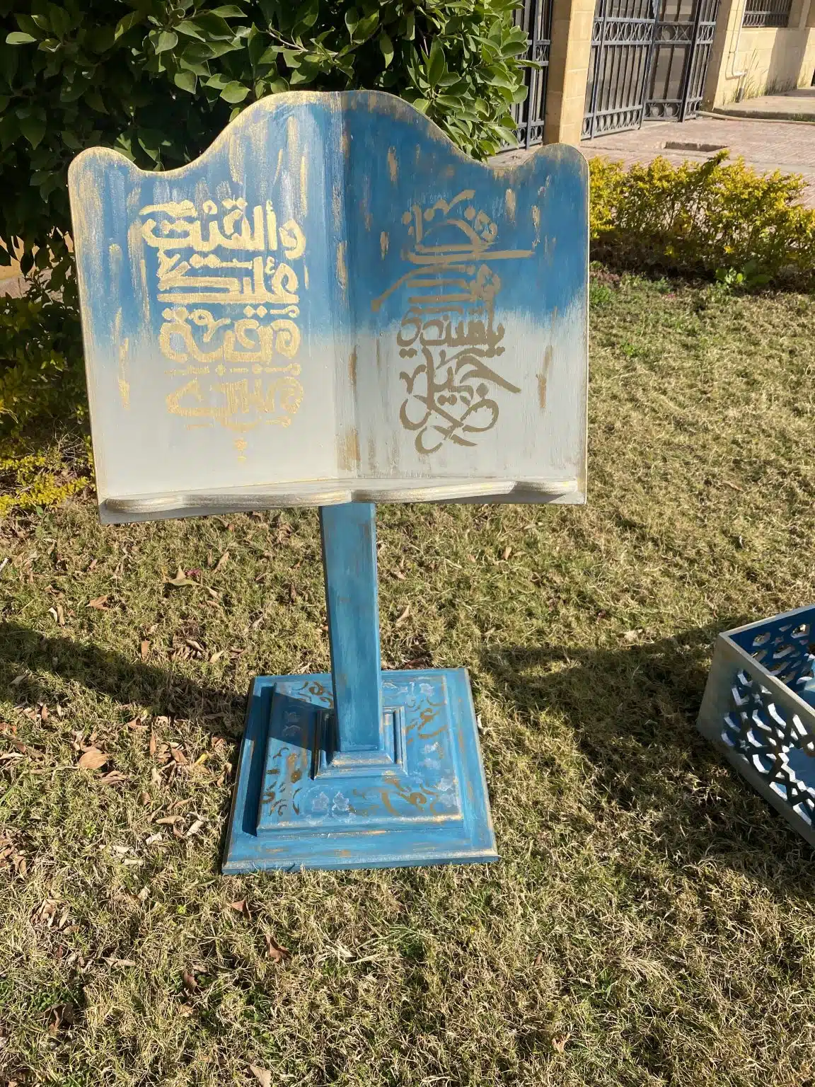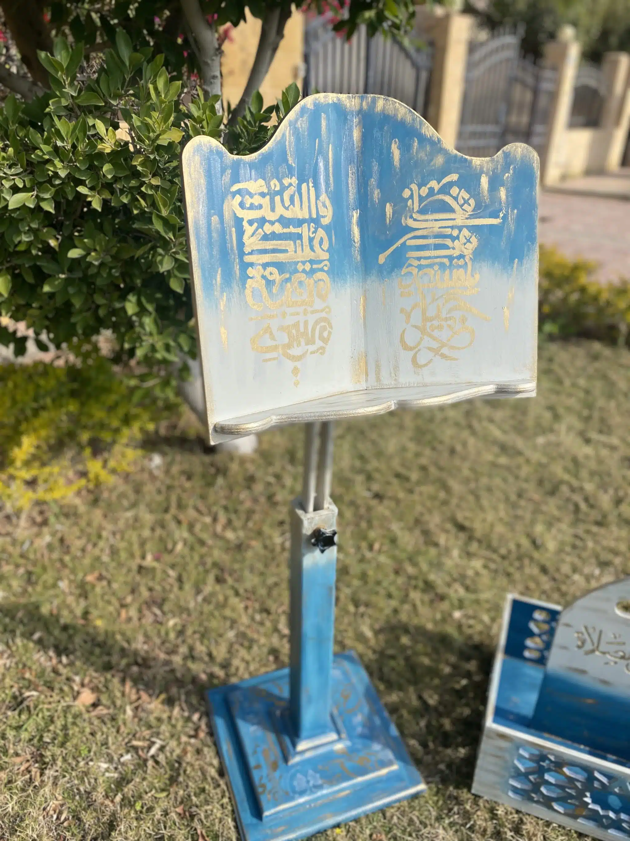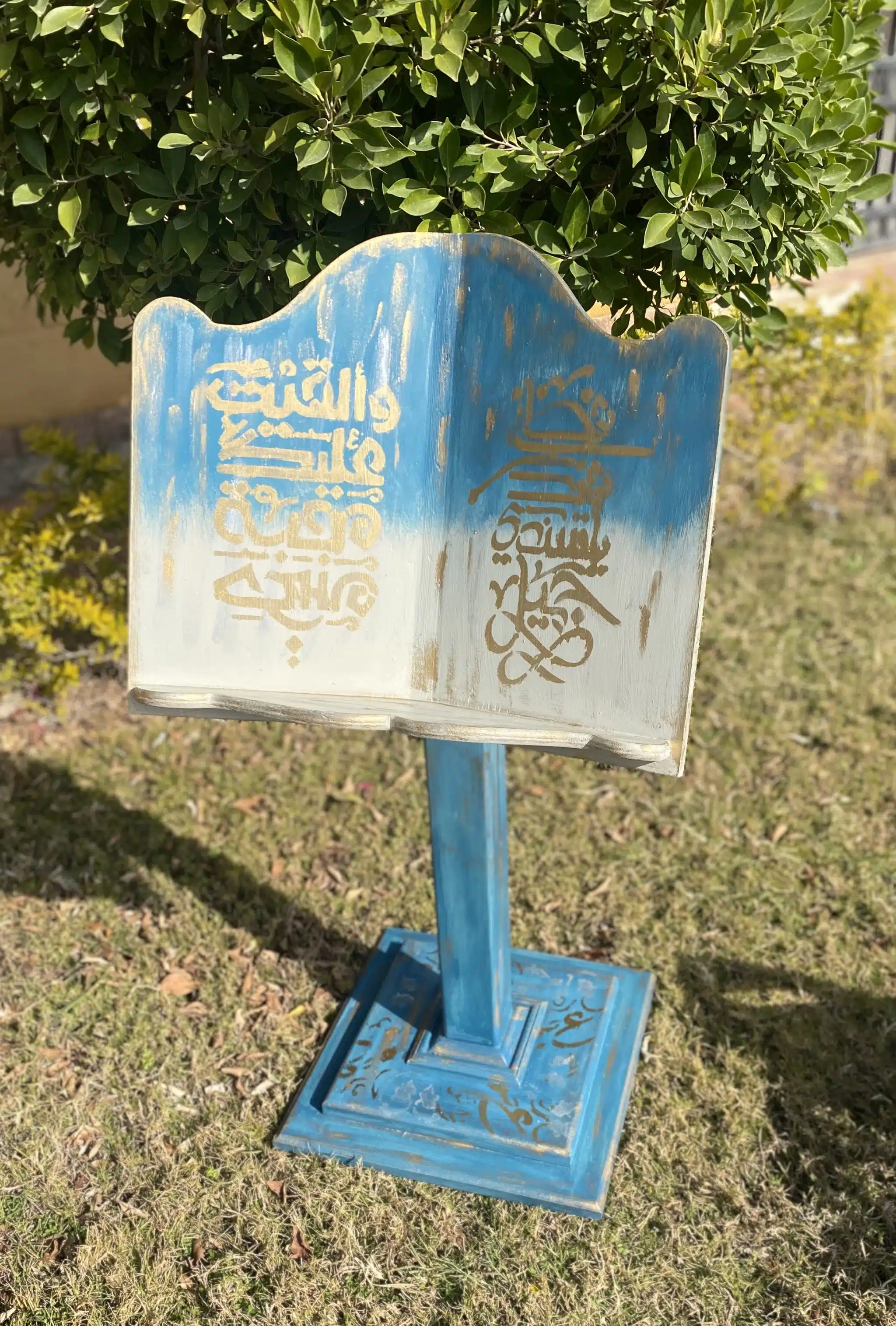 Wooden Mushaf holder in degardée color blue x beige with gold and ilver effects