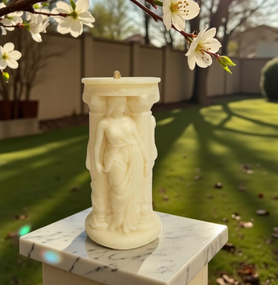 This beautifully sculpted candle features three graceful goddesses, representing intuition, strength, and inner peace. A reminder of your own divine power.