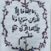 An elegant, hand-stitched Arabic calligraphy needlepoint featuring classic script and a traditional floral border
