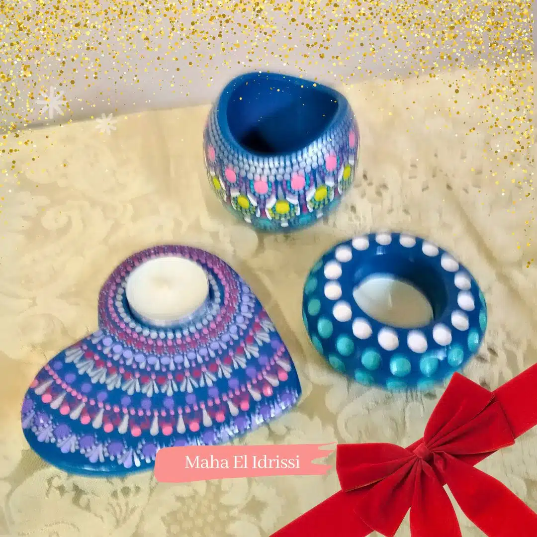 three gifts for blue lovers, dotted with acrylic