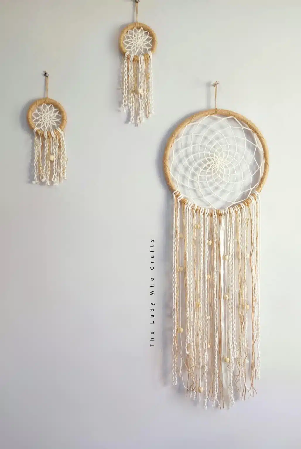 Materials: cotton yarn, hemp rope, wooden beads, and plastic hoop.