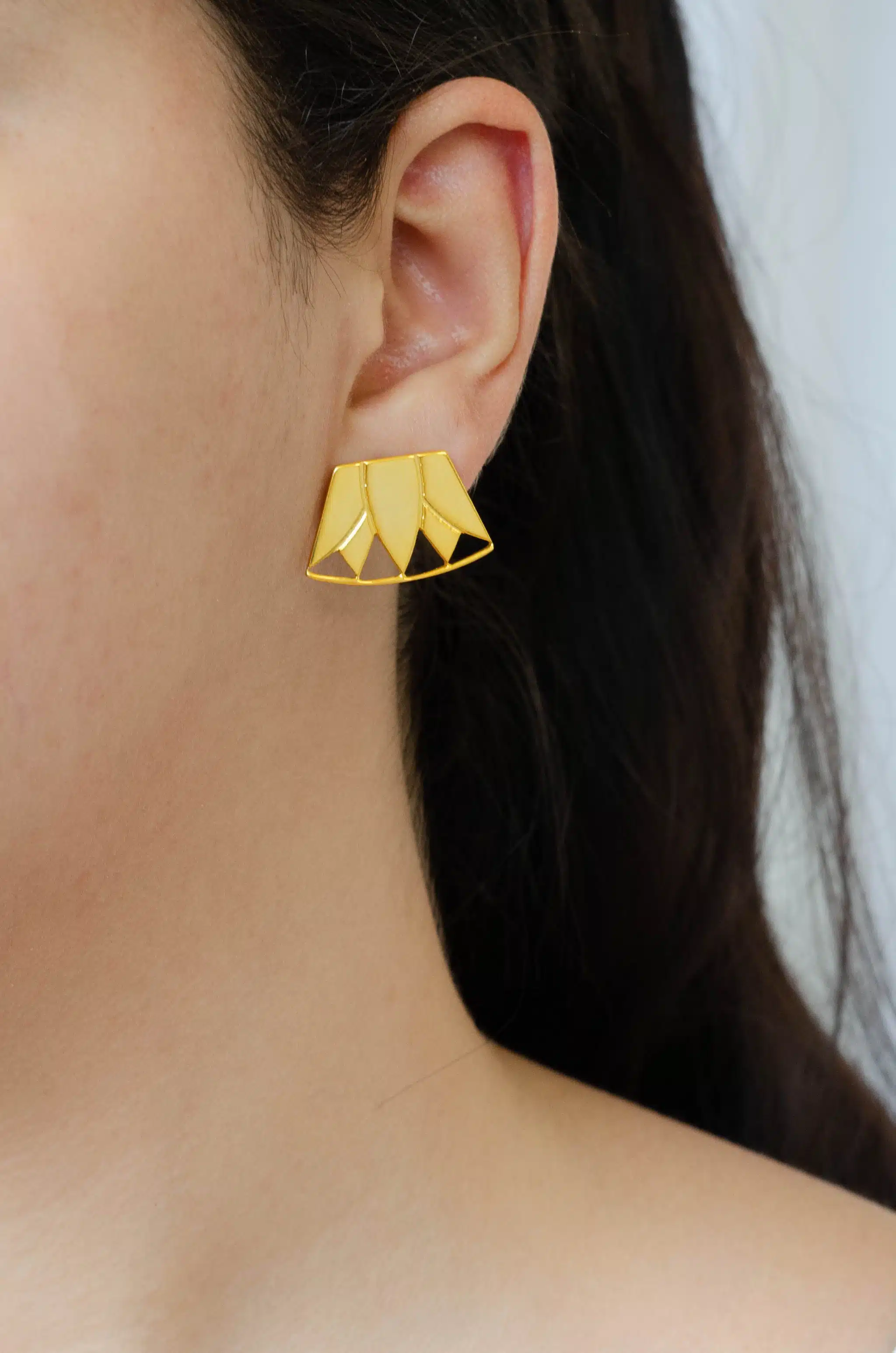 The Flora Earrings, Inspired by The Lotus Flower ancient Egyptian Symbol by the designer “Toka Nabil”. Material: Brass 21K Gold plated with a very high quality. hand made. Pre order will Take from 3-8 Days. No REFUND or EXCHANGE.
