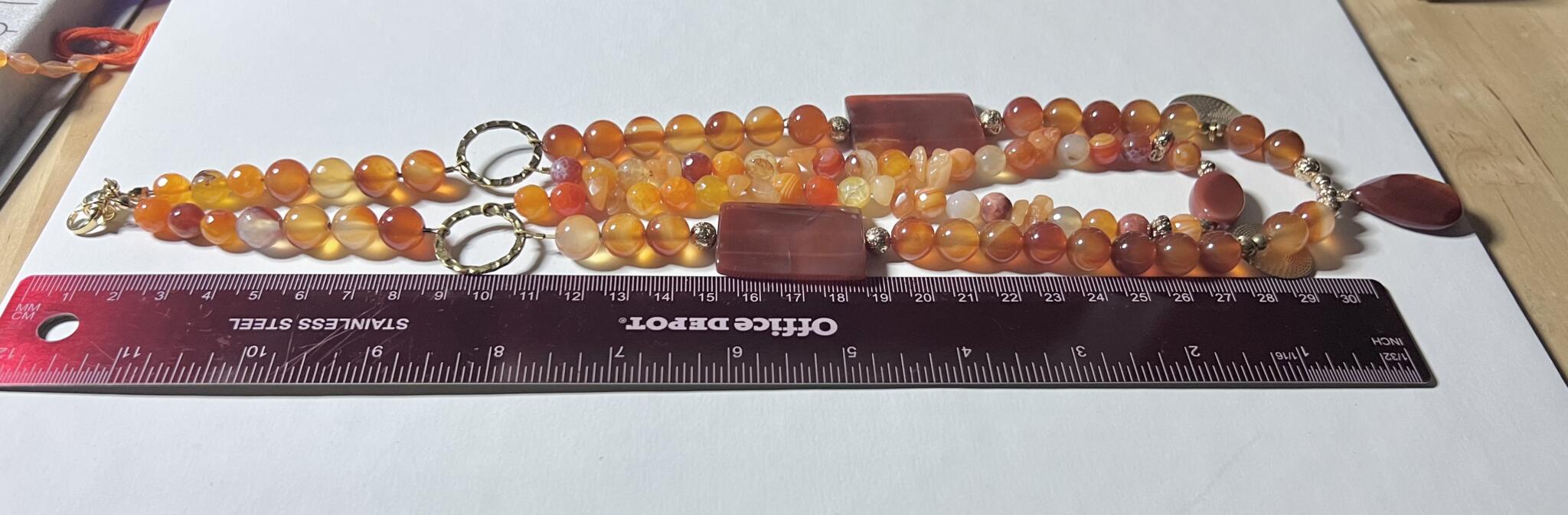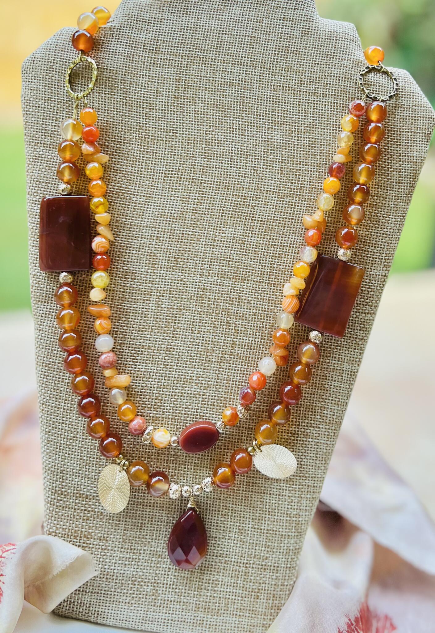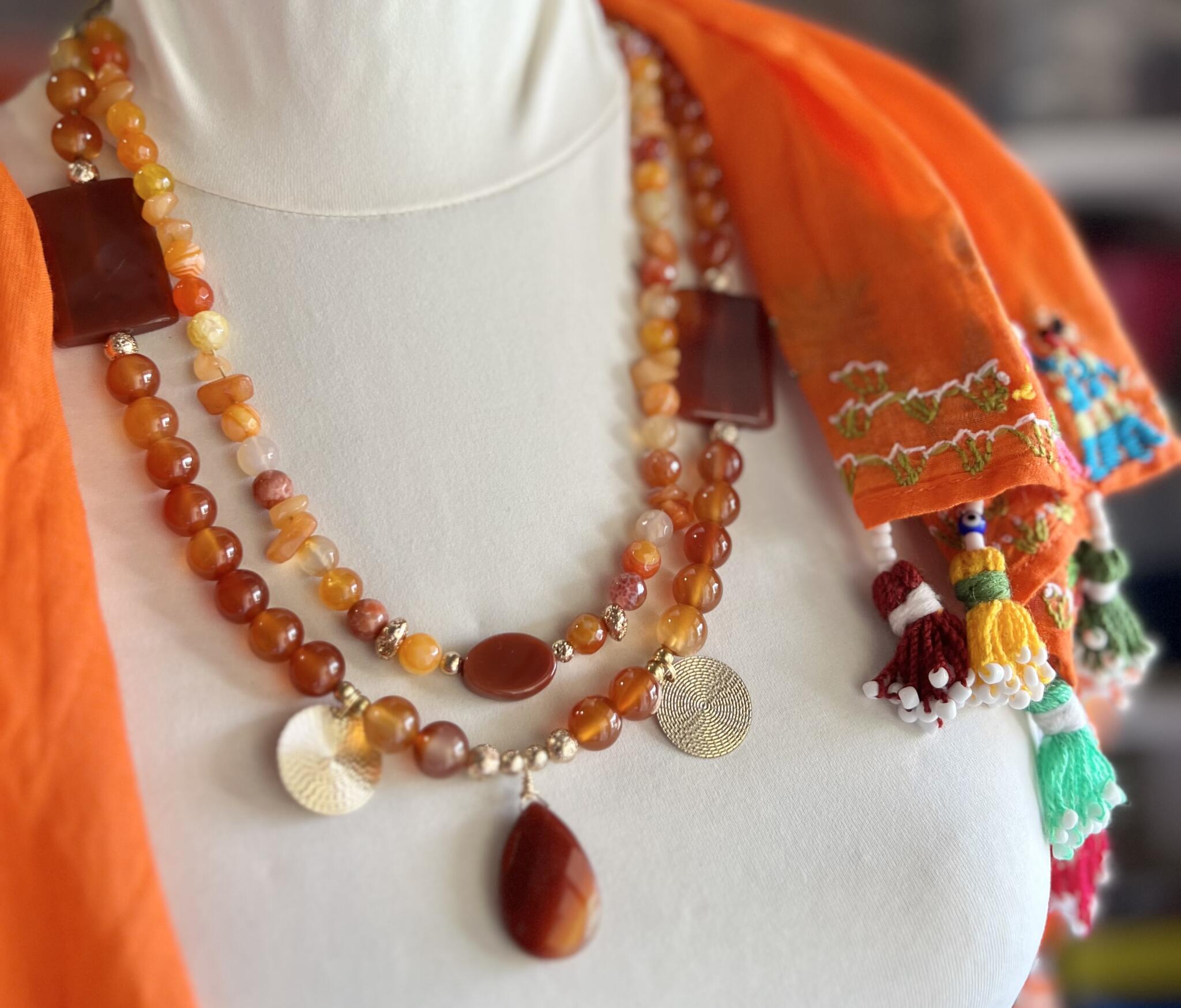 Bold, earthy & elegant with deep orange agate , lava gold & gold tones, great for Autumn as statement piece.