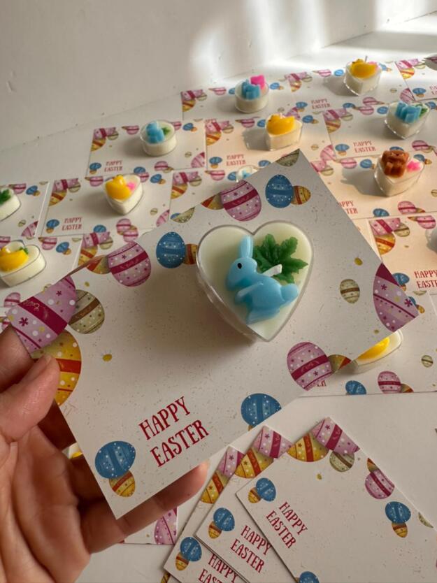 30 cute scented Easter-themed tealight candles, perfect for corporate gifting.