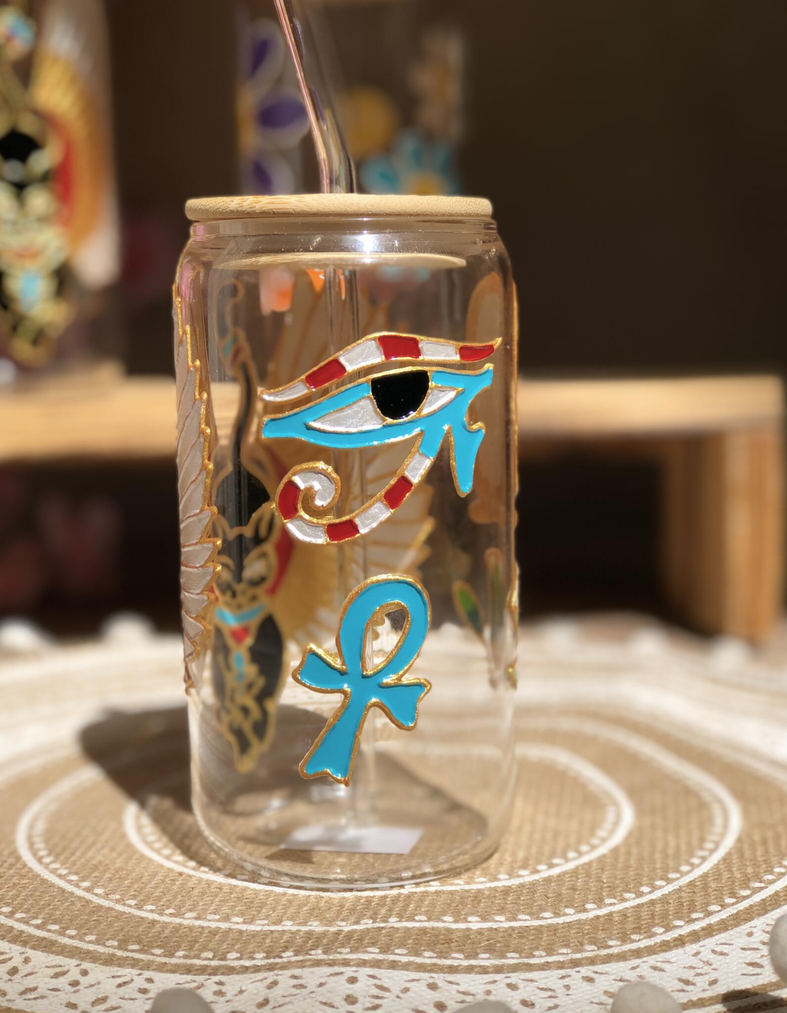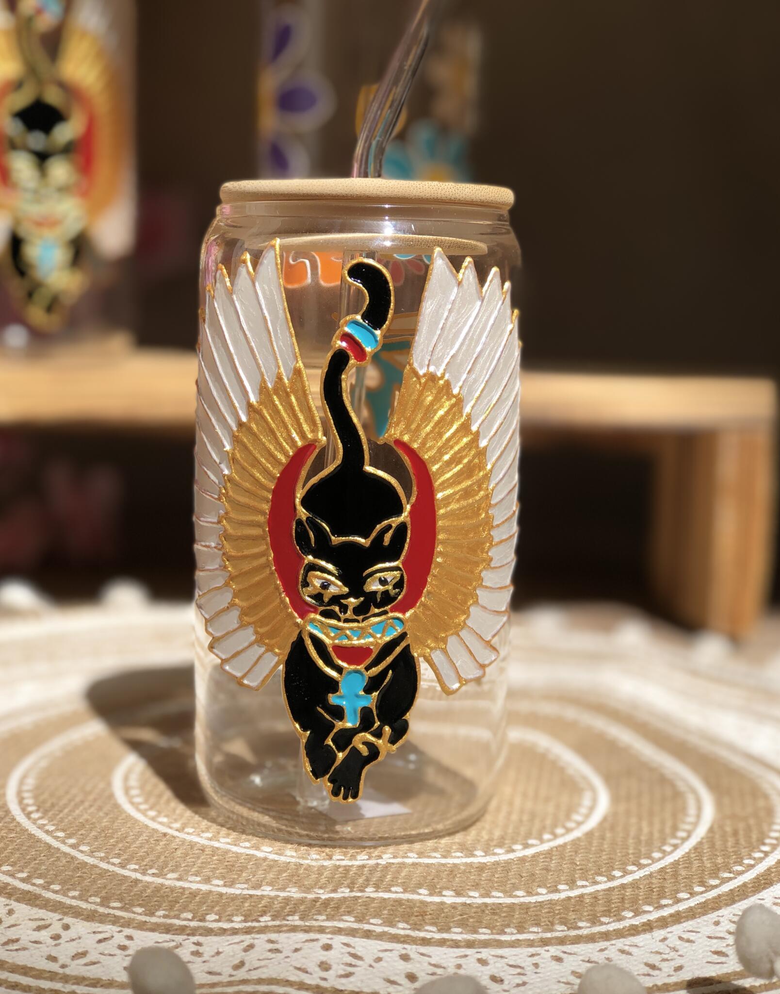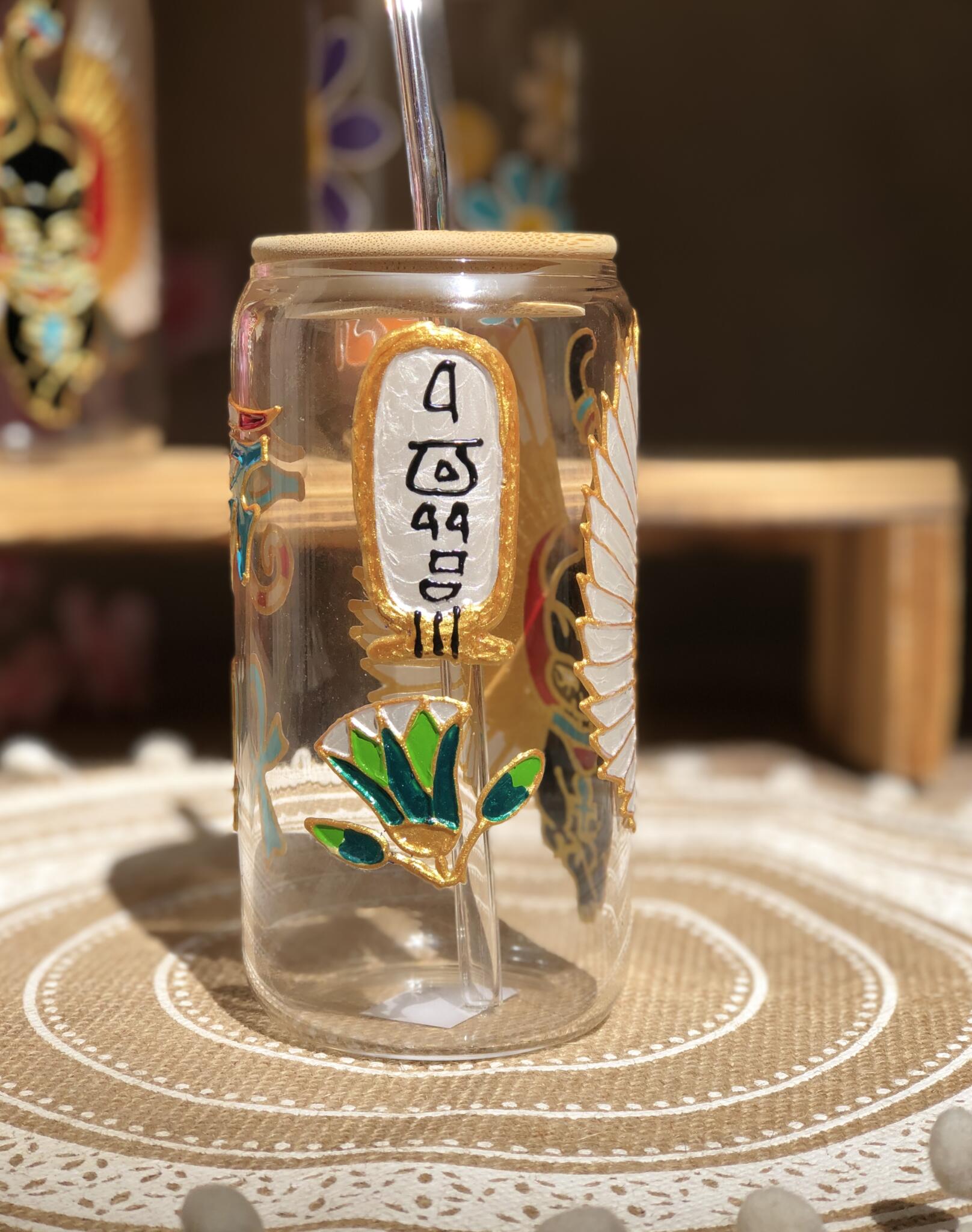 Hand painted pharonic seem on ice coffee cups