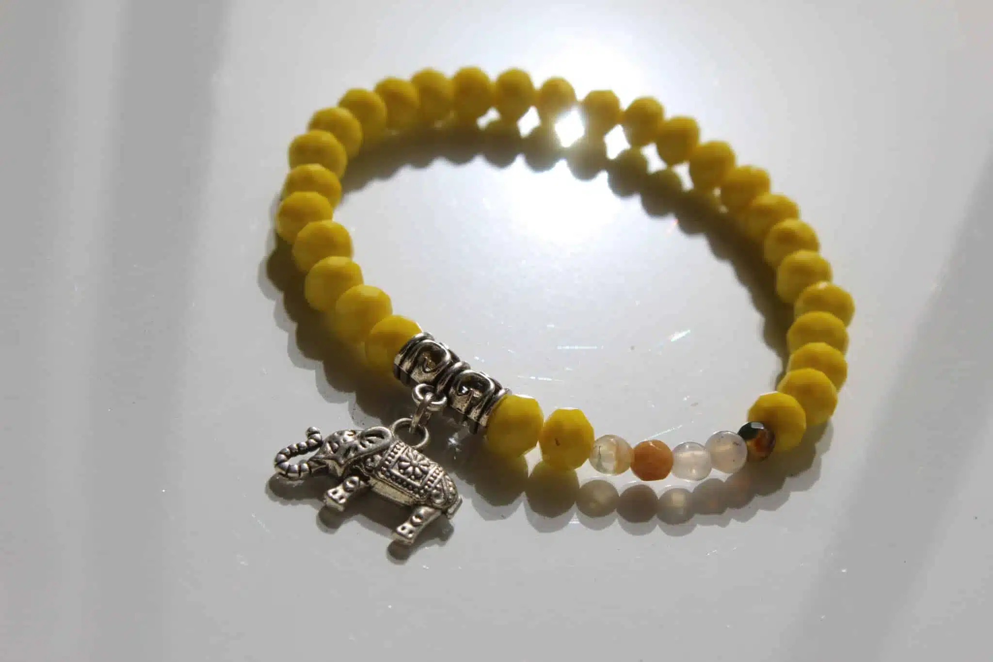 Yellow crystal bracelet with silver elephant charm & artificial agate stones