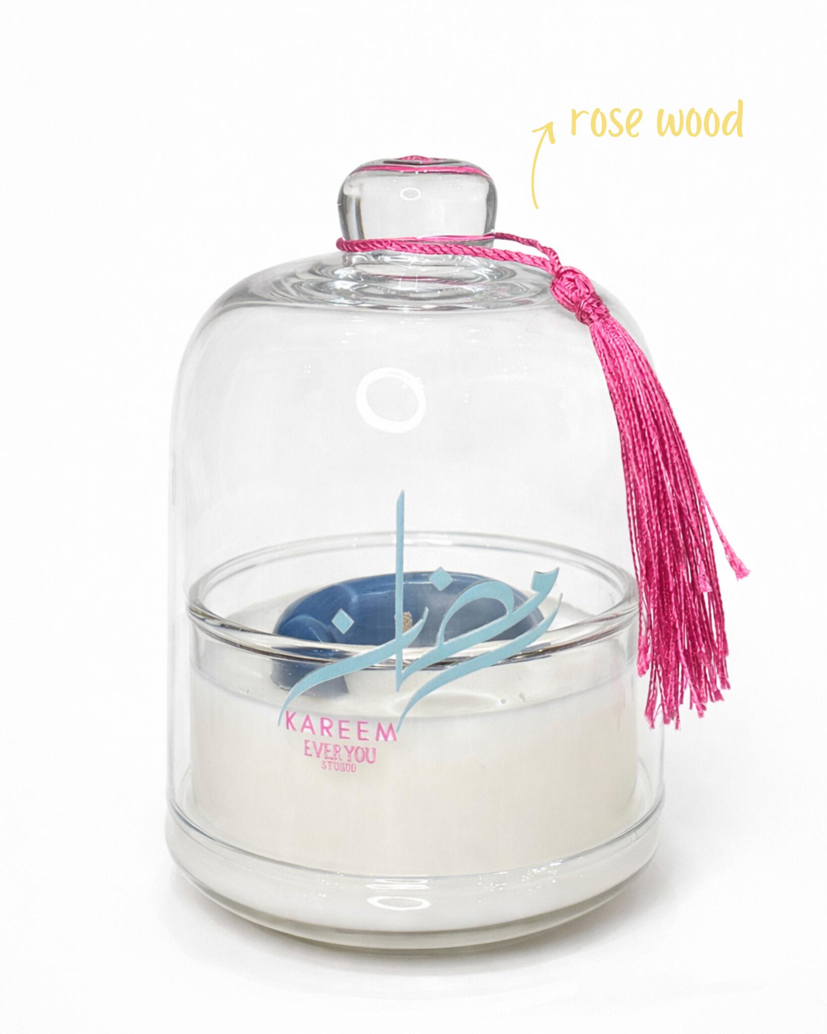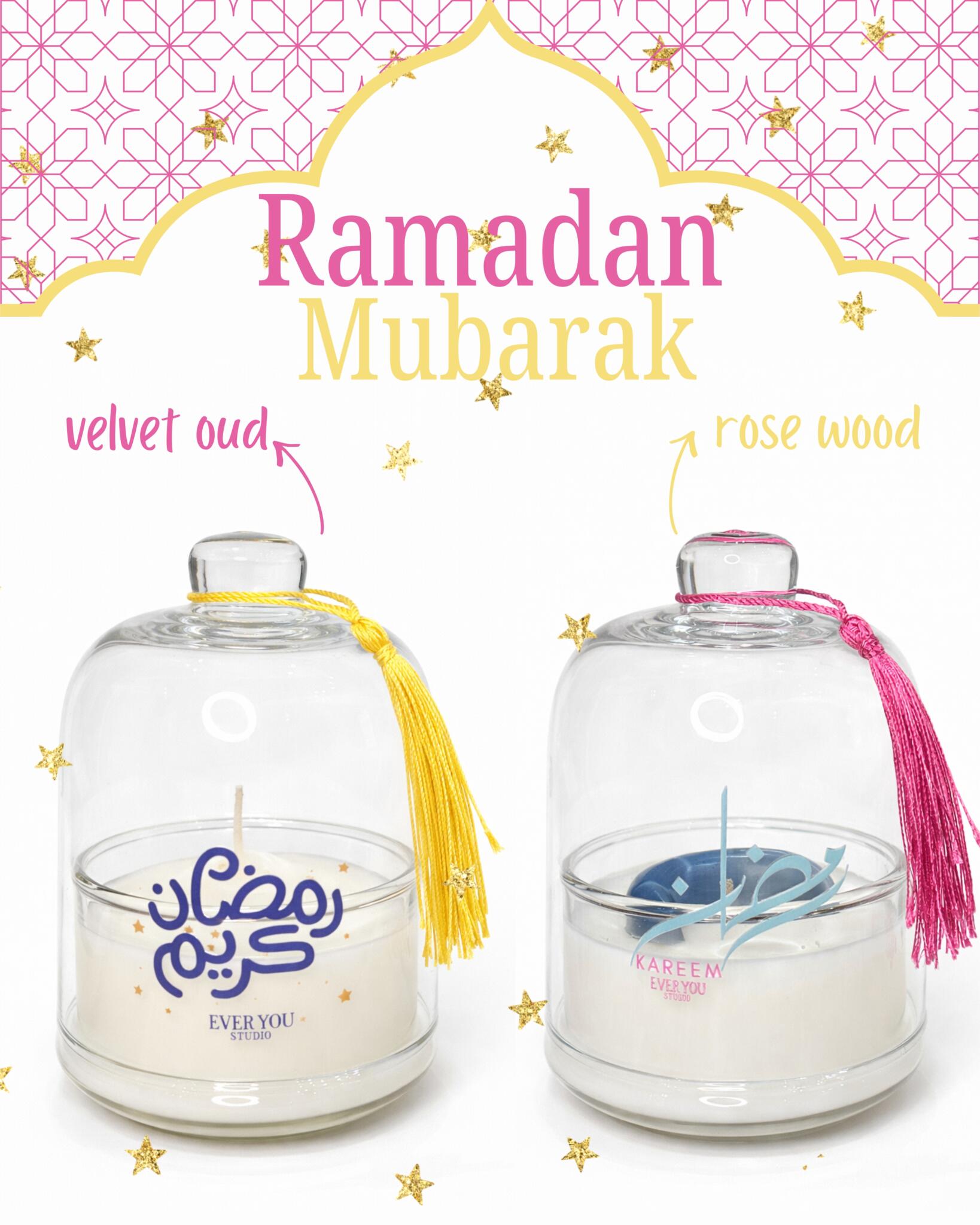 Hand-poured with soy wax and presented inside a clear glass dome, this candle becomes both a beautiful decoration and a meaningful piece for the season. The design is finished with a decorative tassel, adding a festive touch that complements Ramadan table settings and home decor.