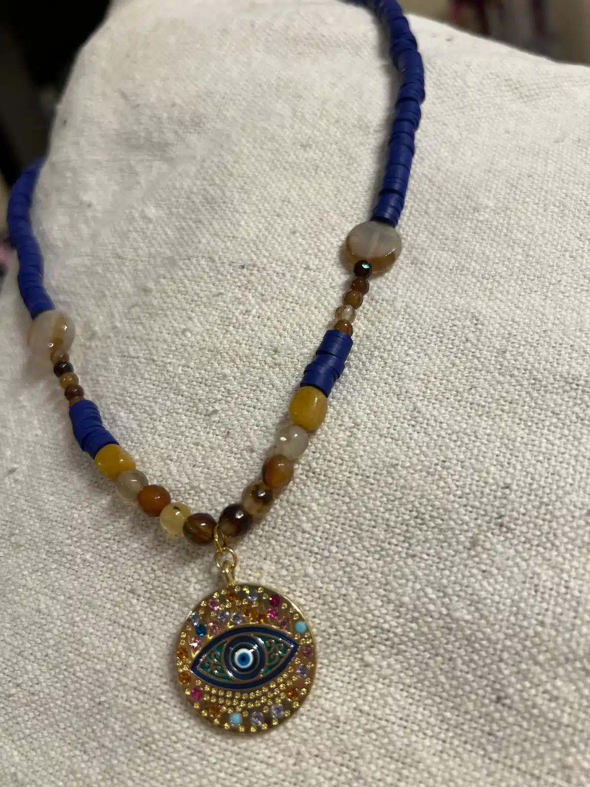 Handmade Necklace with a touch of dark blue beads mixed with elegant stones & artificial agate