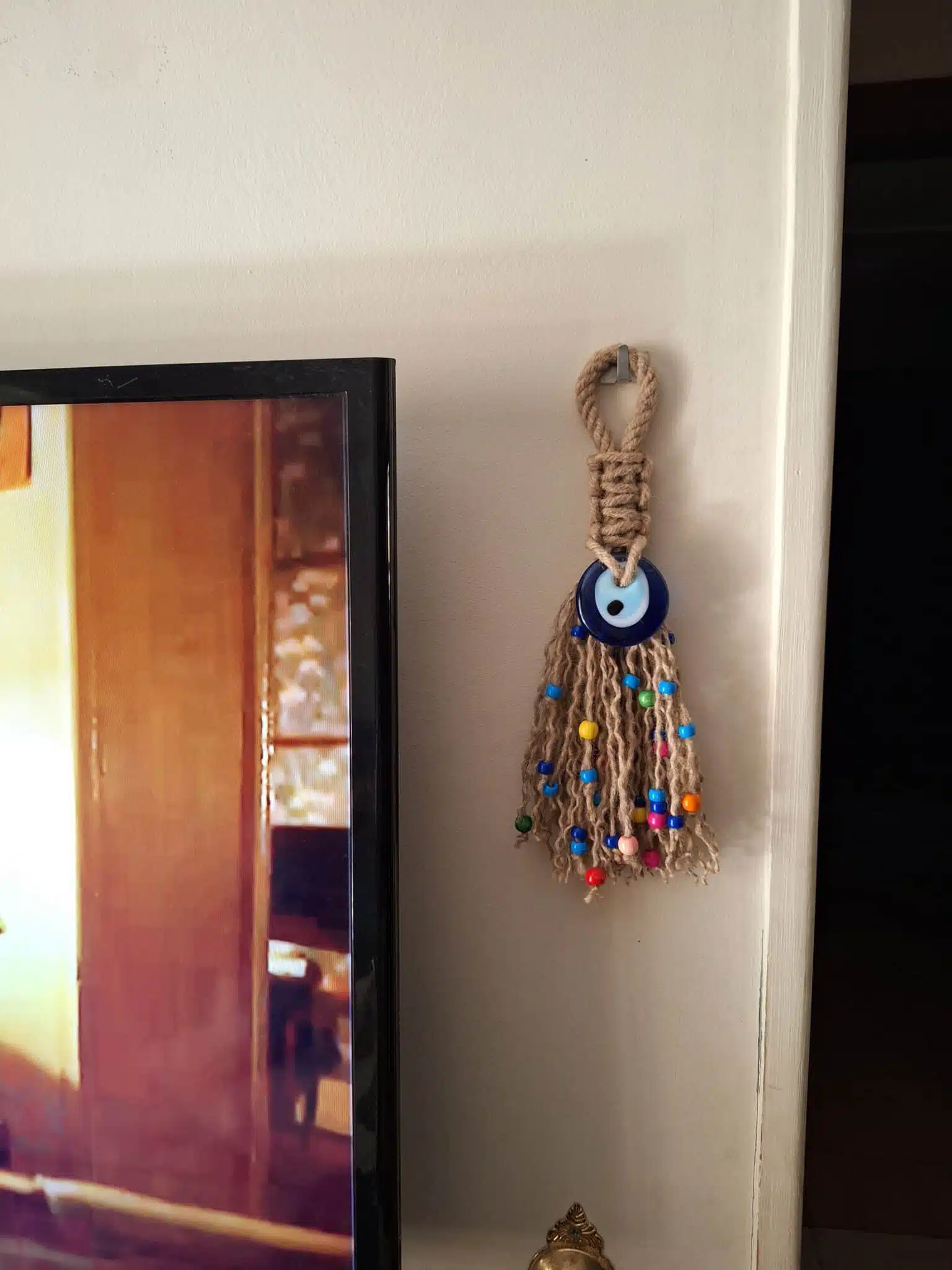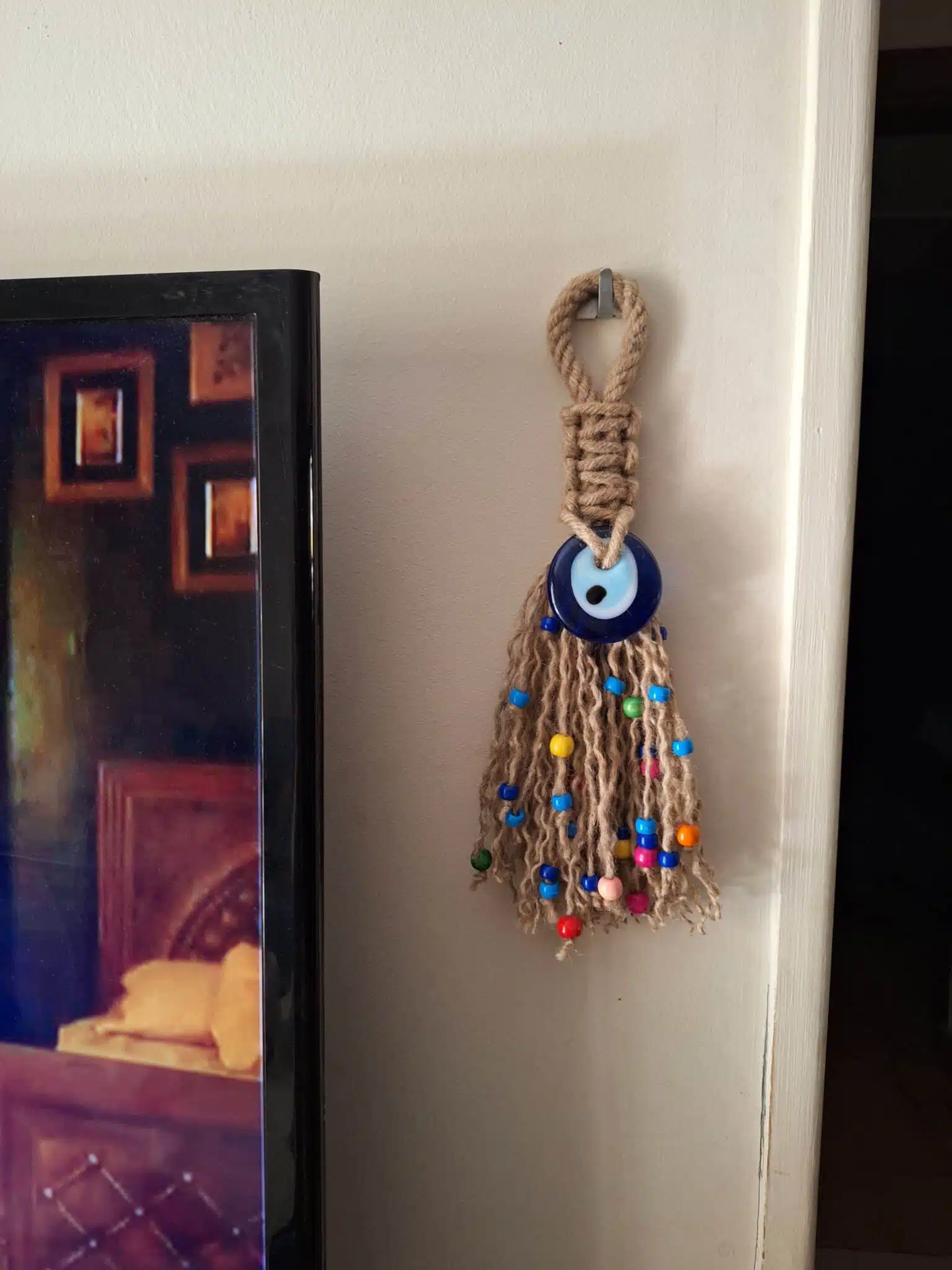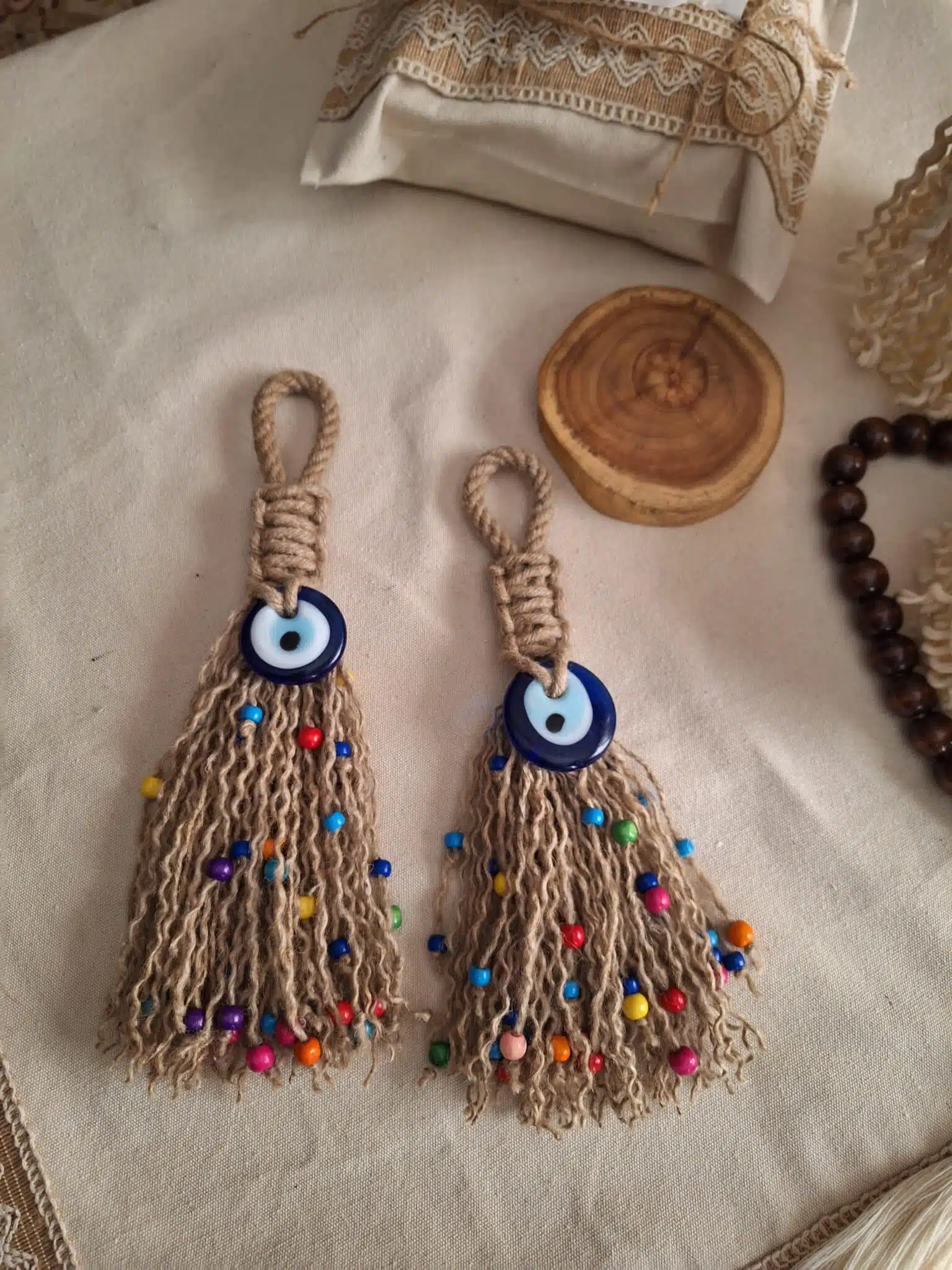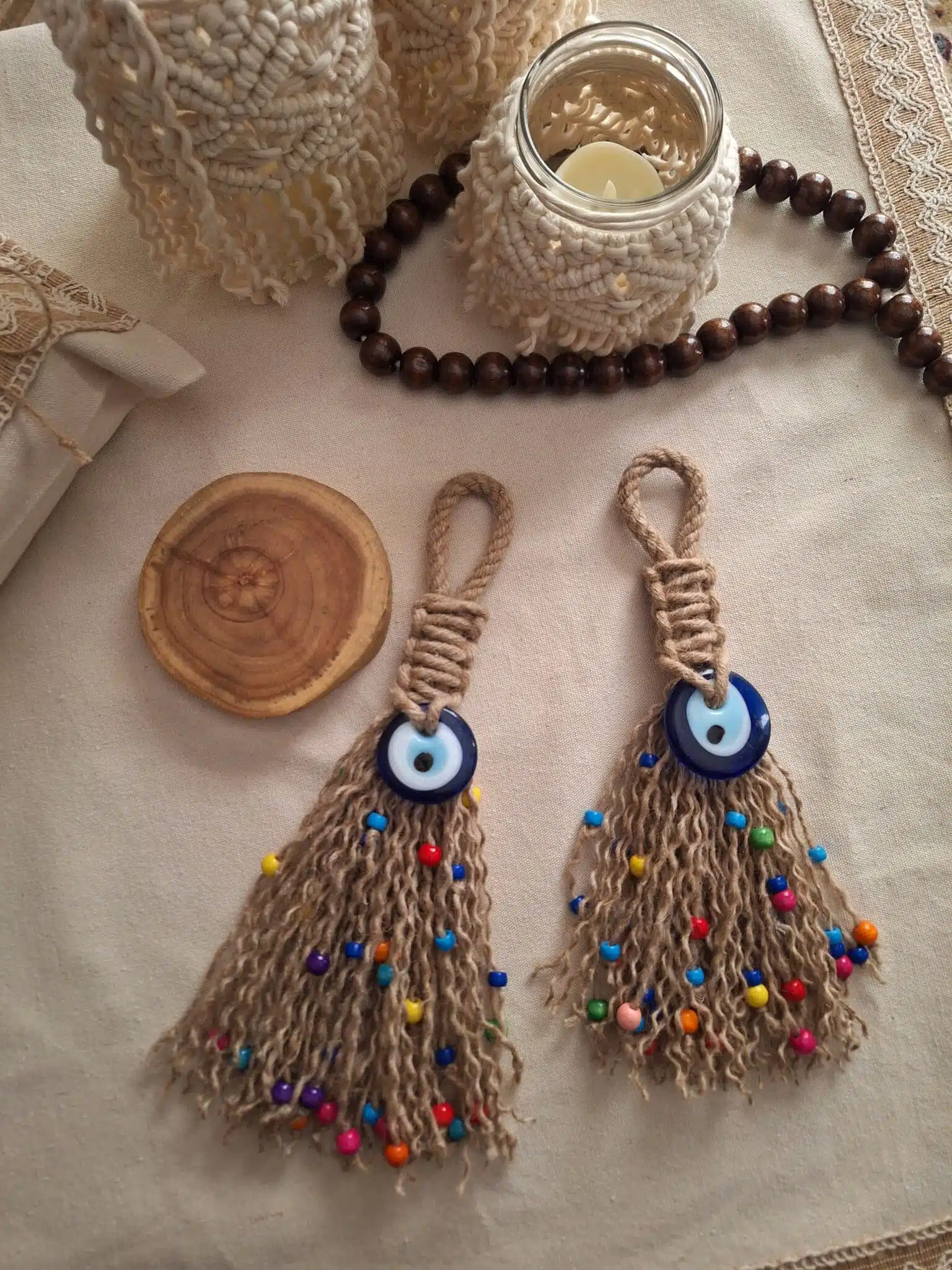 معلقه عين زرقاء زجاج مع خيط خيش بوهو