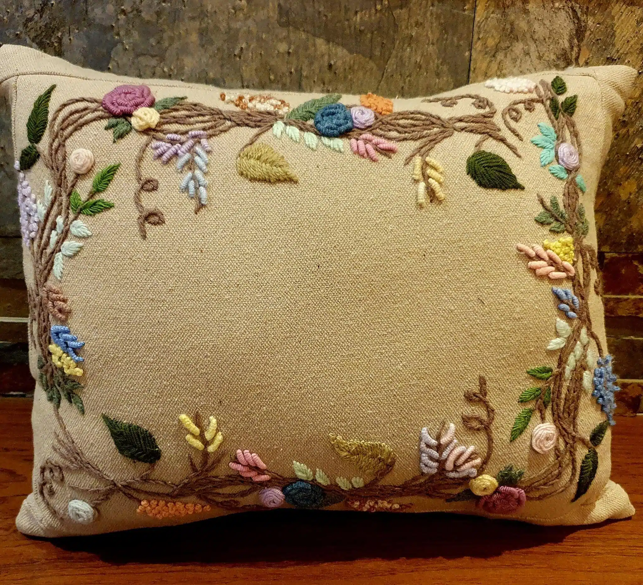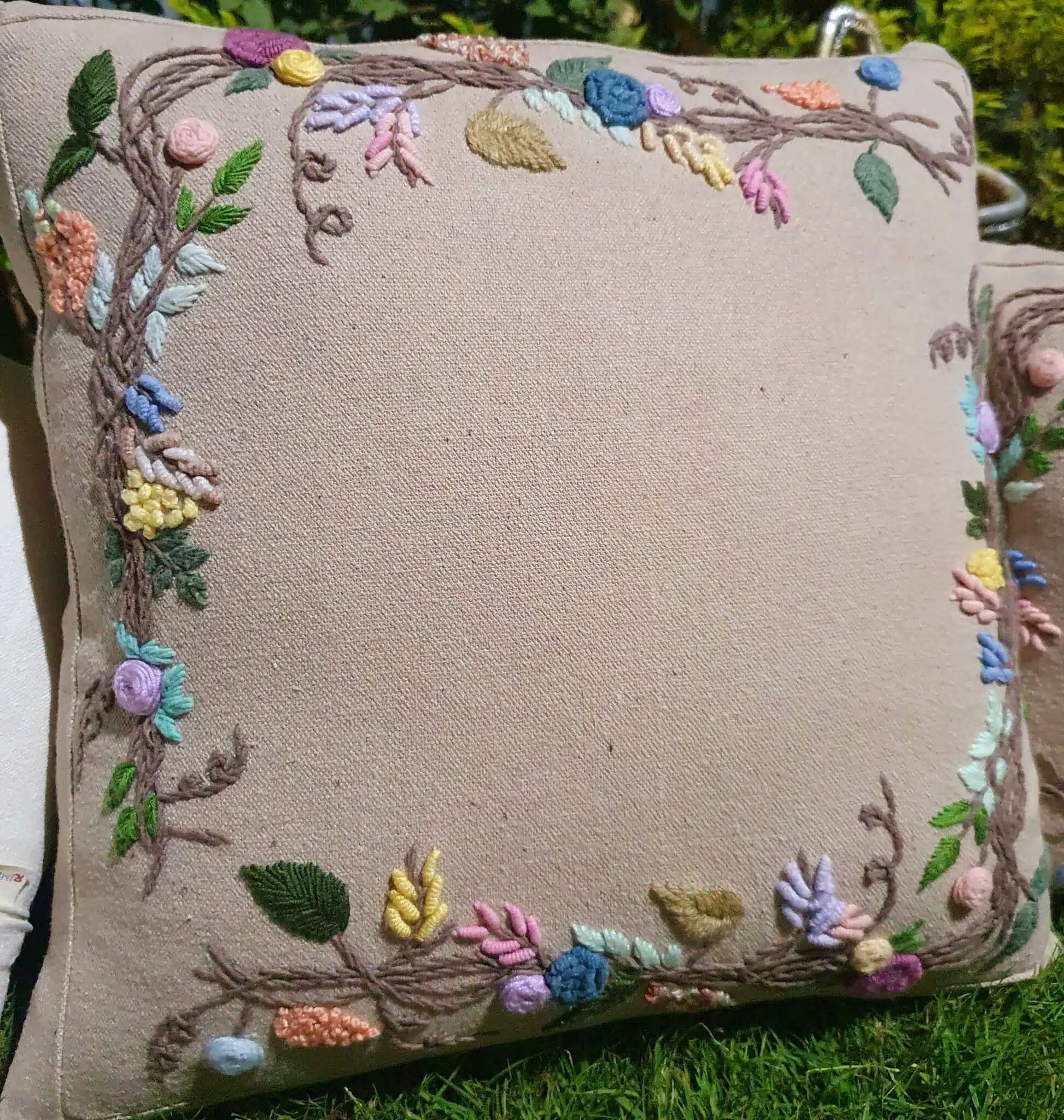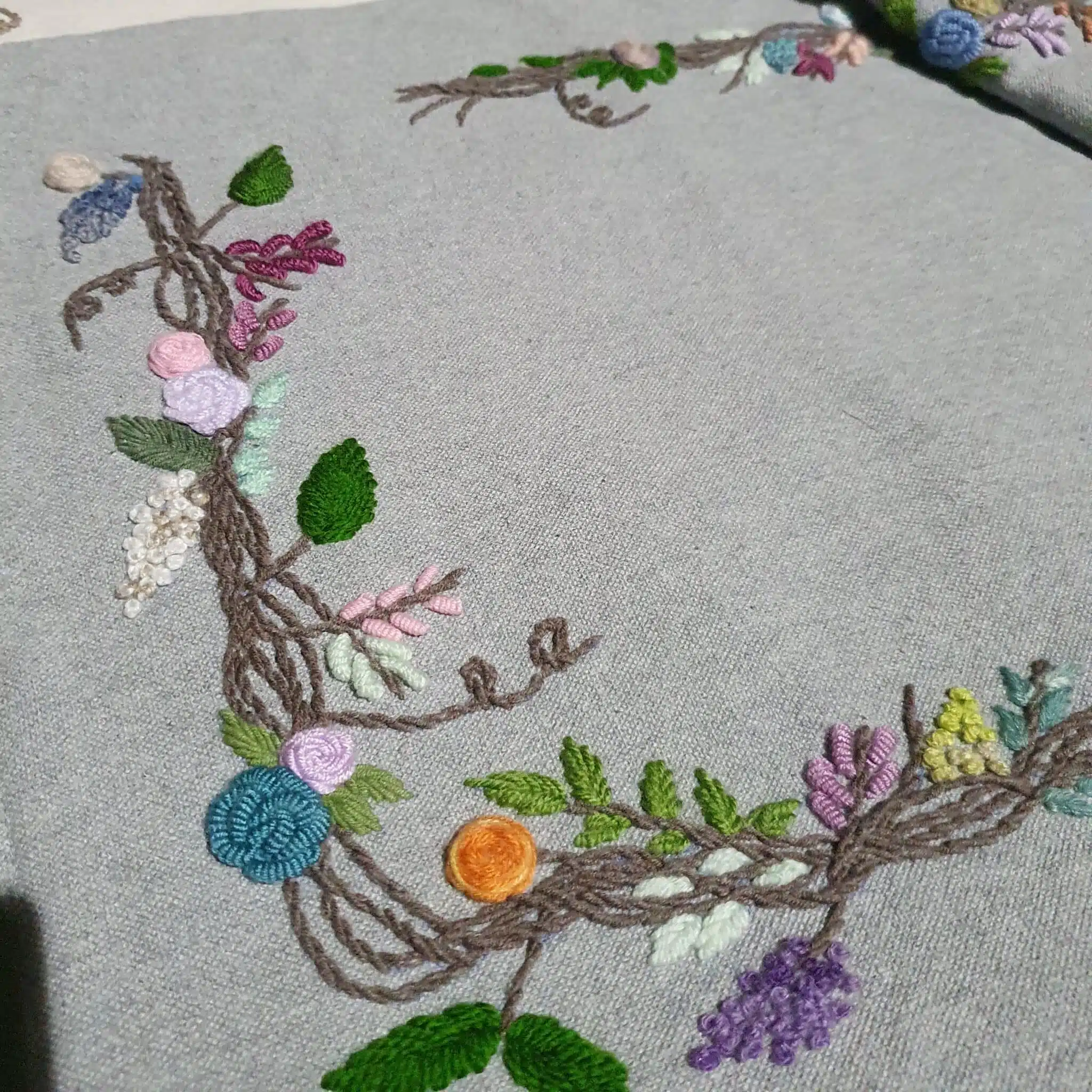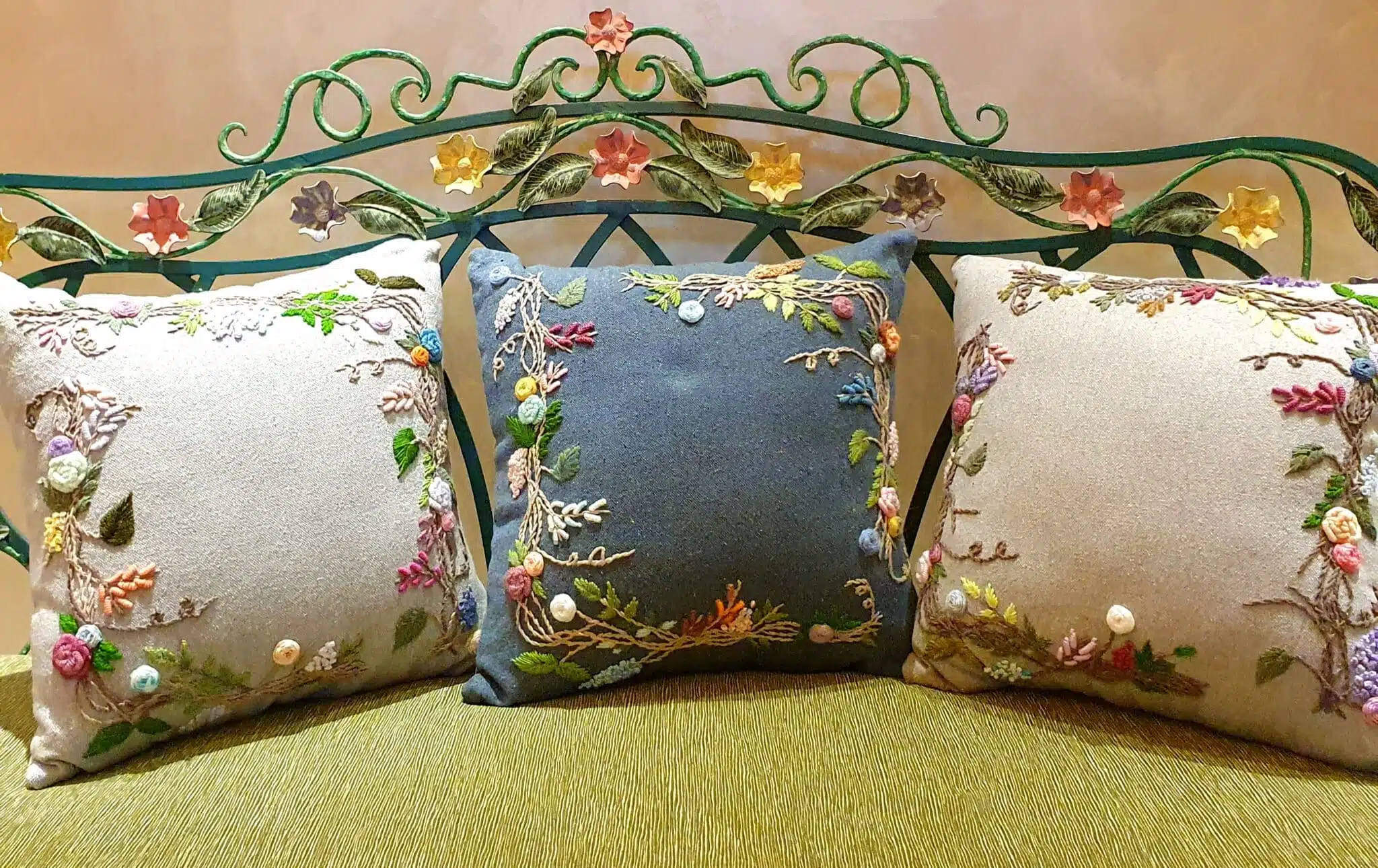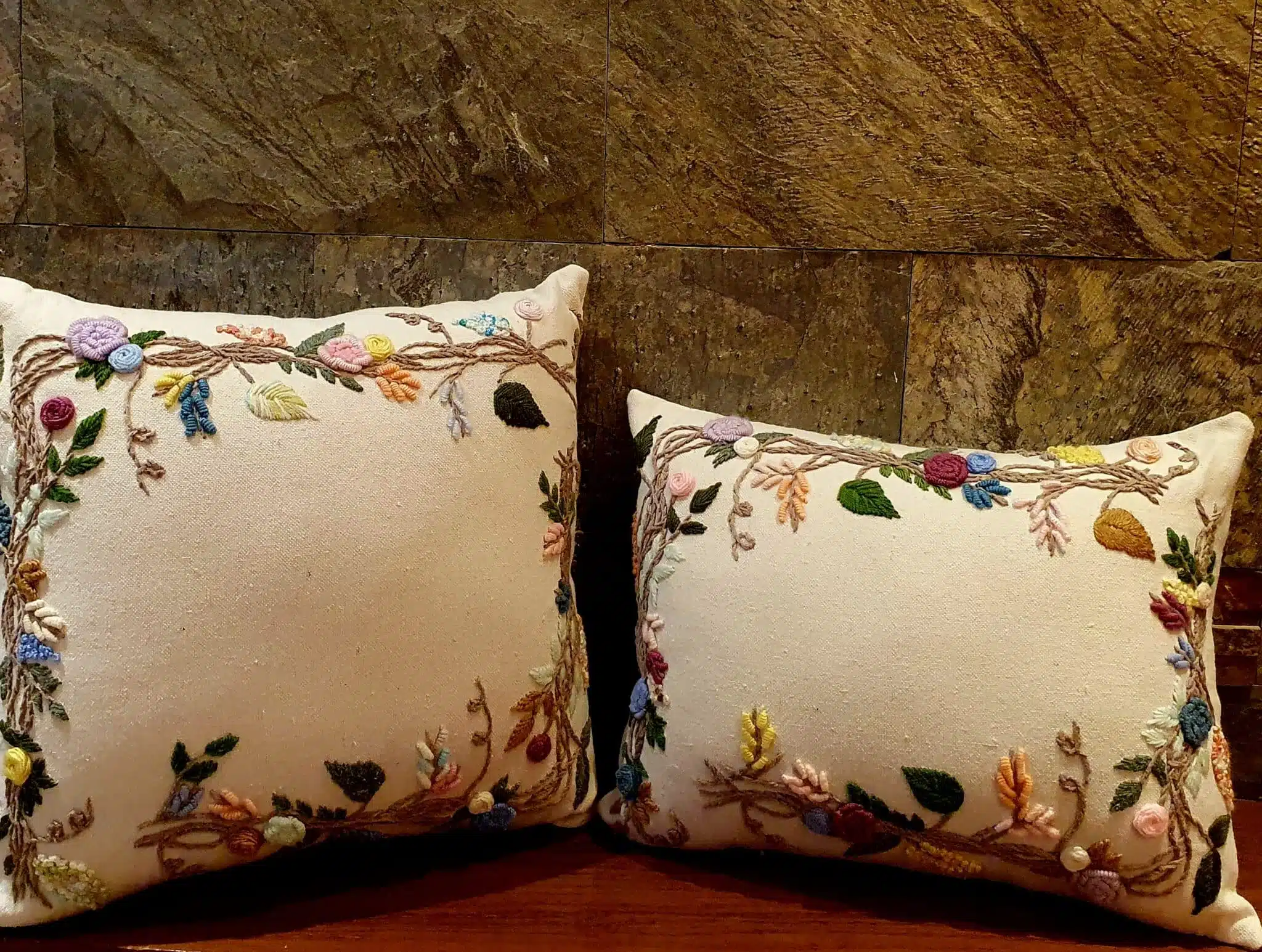 Handmade embroidery unique fairy design cushions and runner ,chose your preferred color: Off-white, Beij ,Grey or Jens fabric