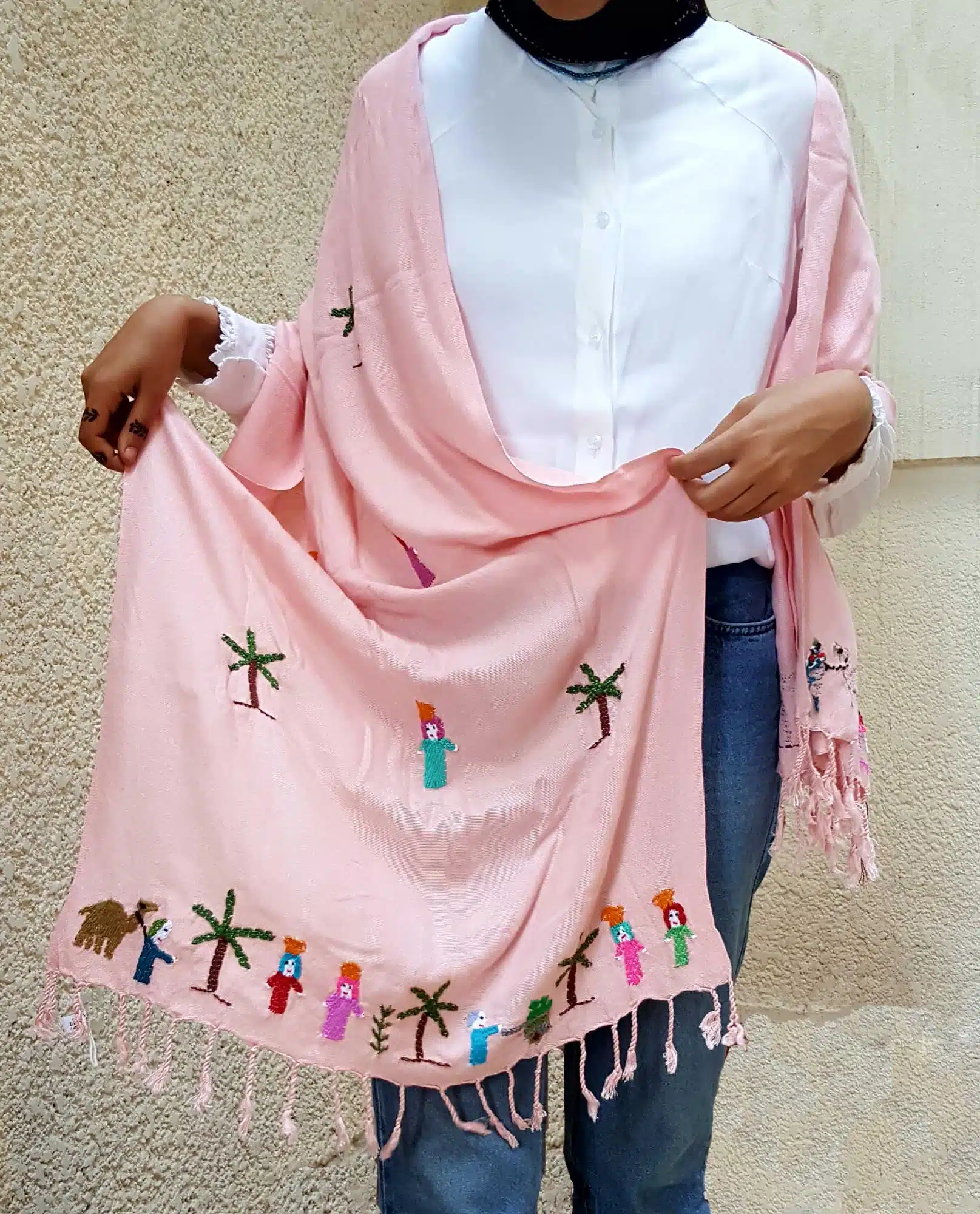 Light rose falahy embroidered shawl.