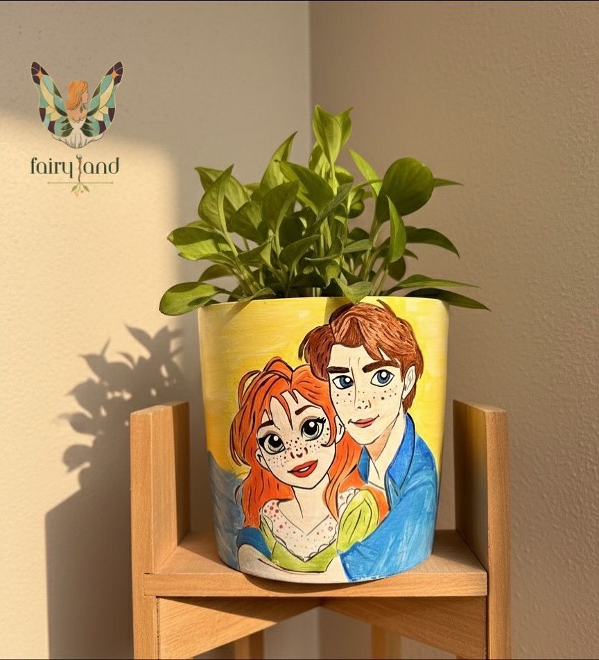 الأصيص ده مش مجرد وعاء زرع، دي قطعة فنية متكاملة عشان تزين بيتك أو مكتبك. مرسومة بالكامل يدويًا بألوان أكريليك ممتازة، وبتصميم مستوحى من عالم الخيال اللي هيدي لمسة راقية ومختلفة لأي ركن في بيتك.