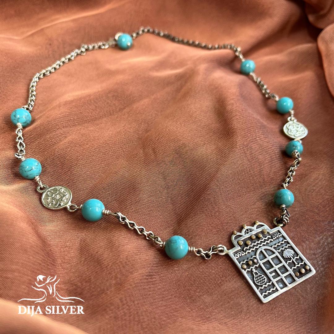 silver 925 necklace with farouz gemstones