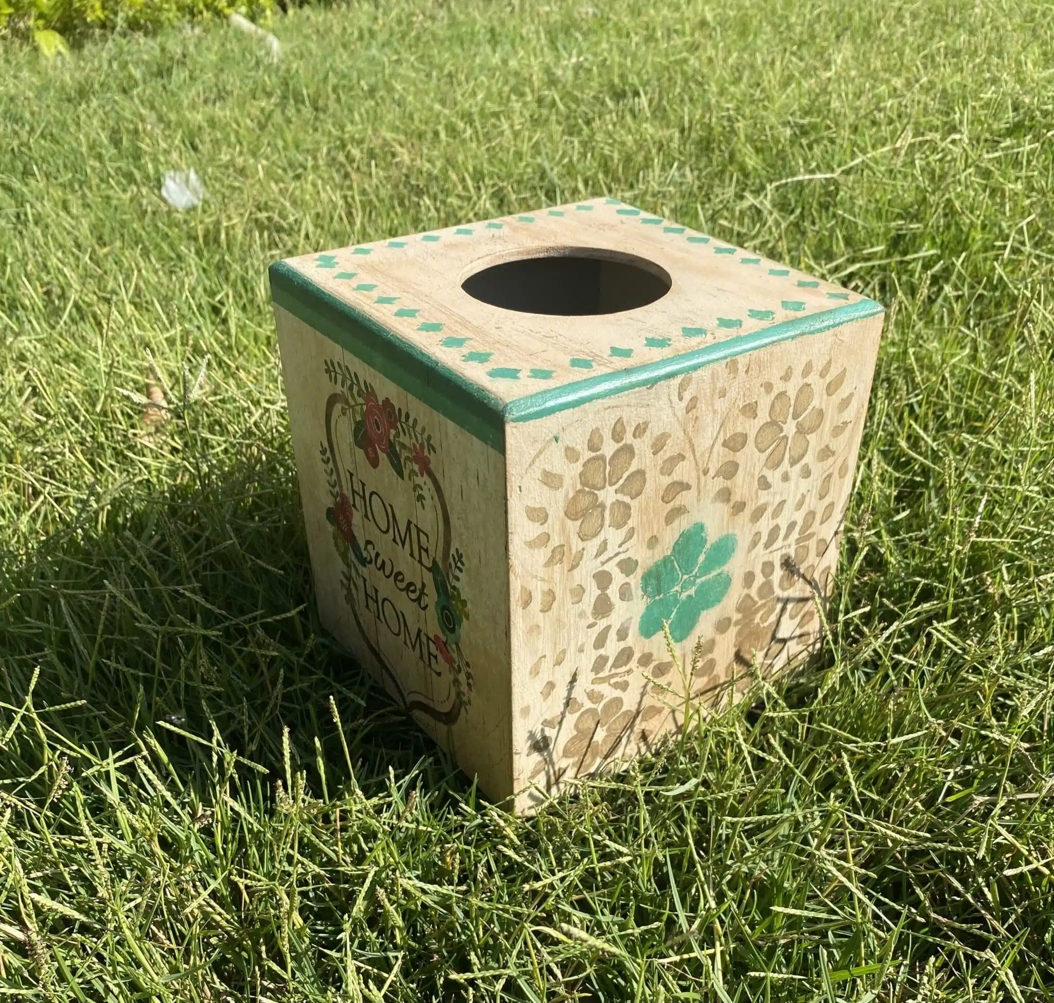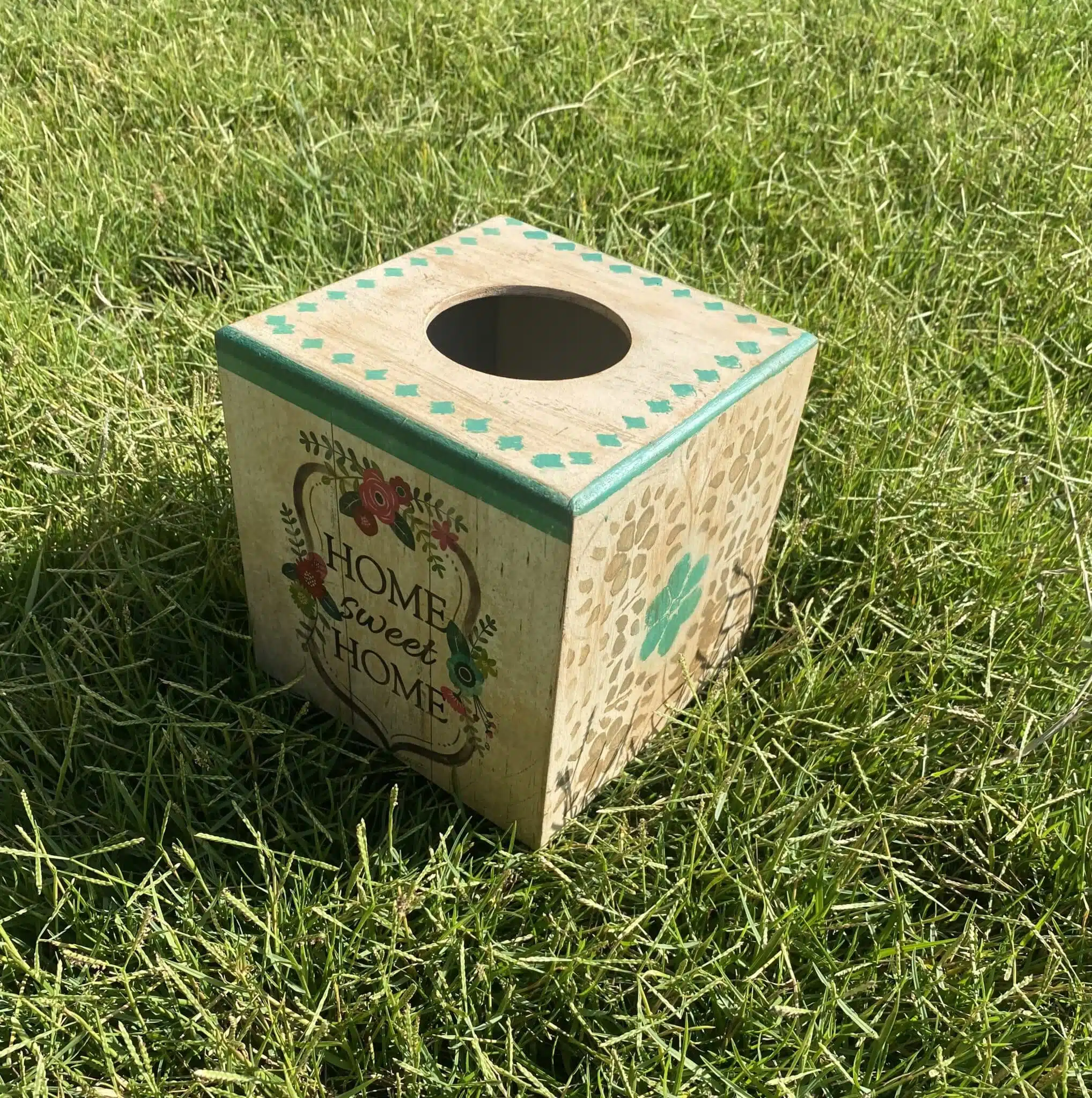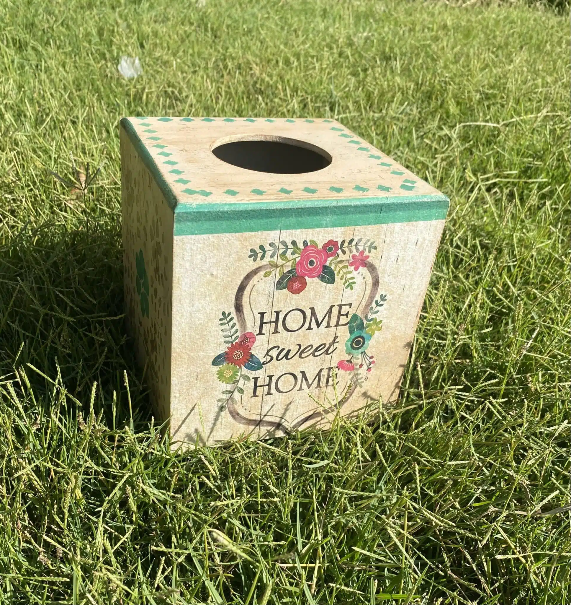 Wooden tissue box square in farmhouse design