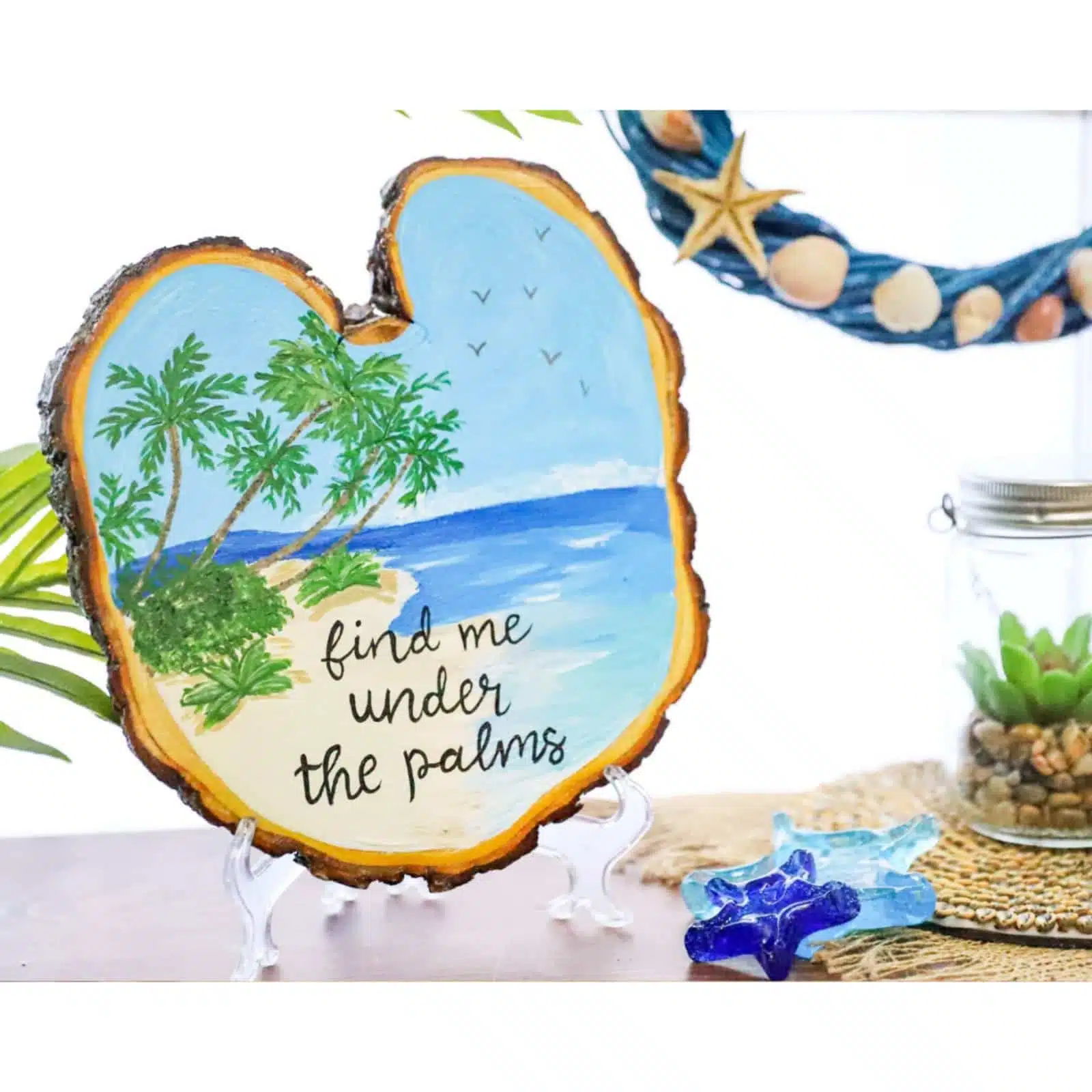 Hand painted wood slice, to decorate your beach house.
