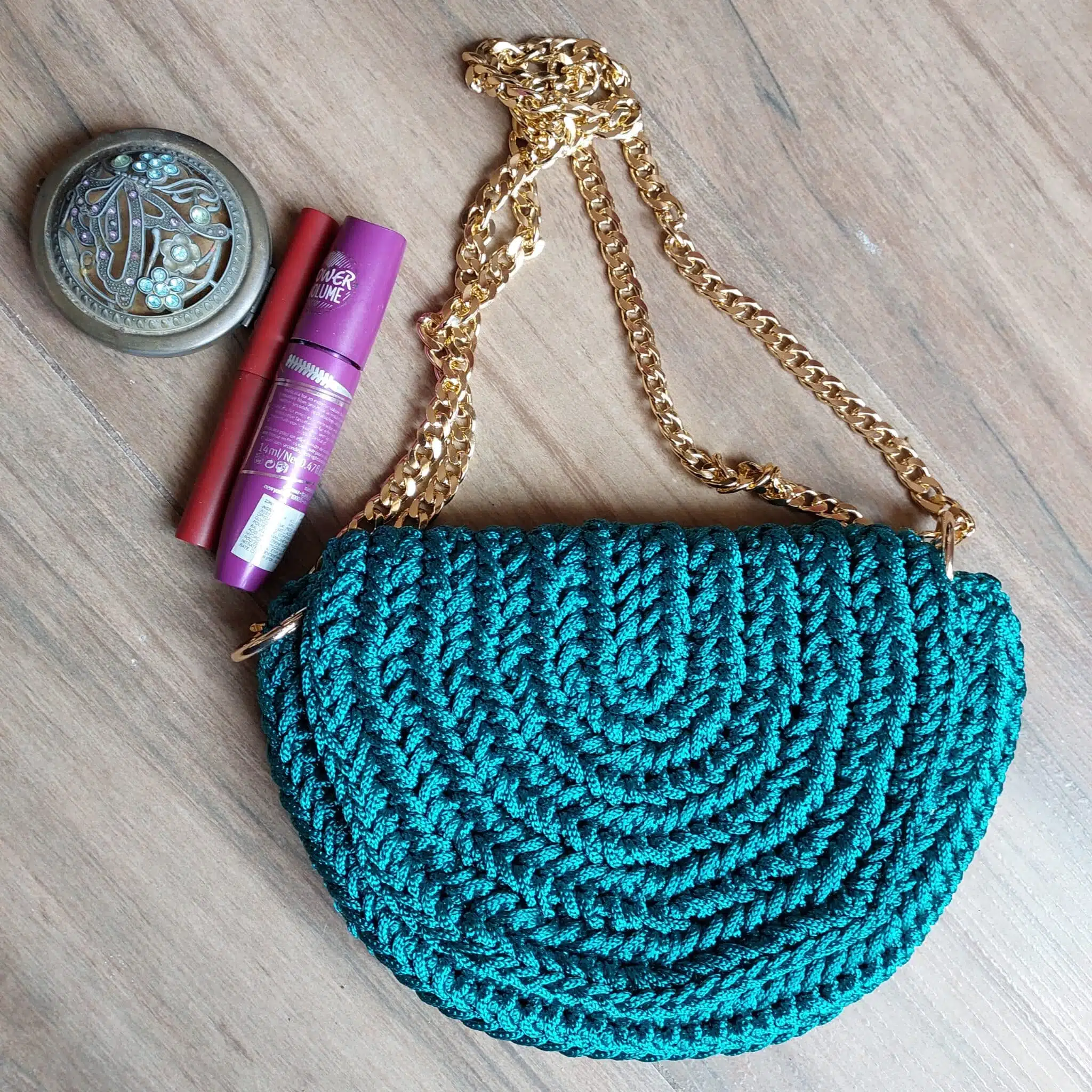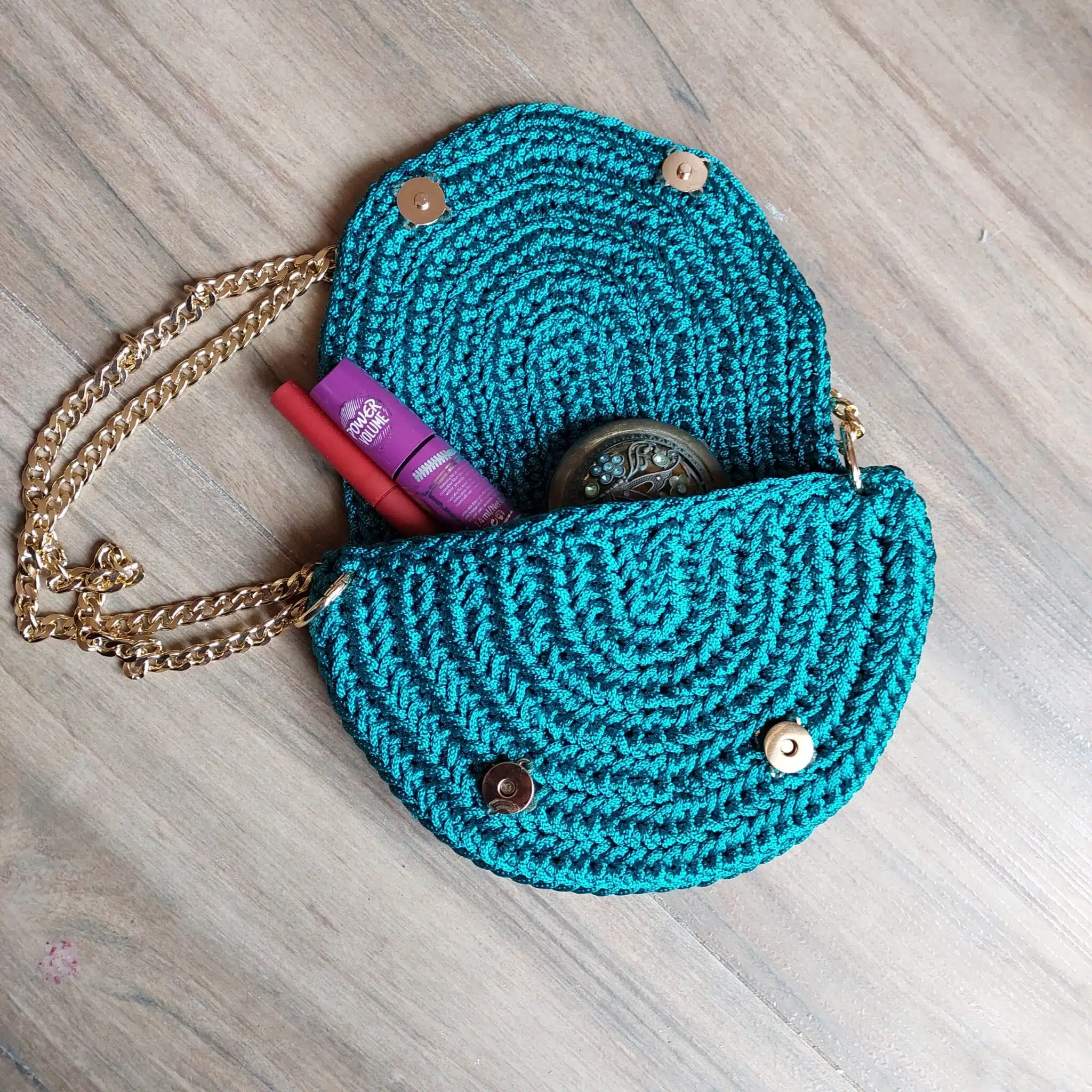شنطة قطرها عشرين سم من خيوط ممتازة معها بطانة سودا انيقة ،عملية جدا وخفيفة مناسبة لكتير من الخروجات