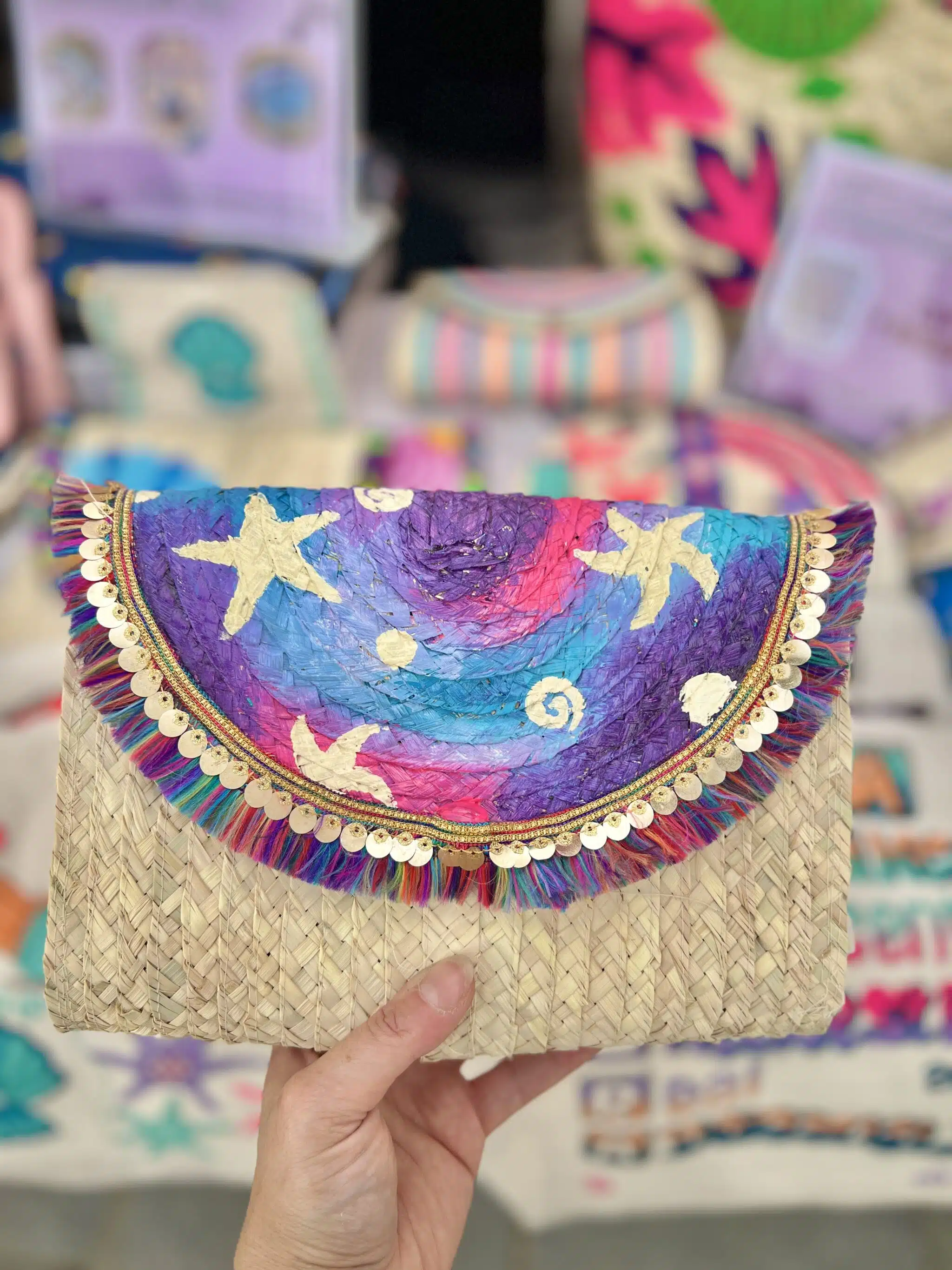 These hand-painted clutches are made of natural straw and feature a vibrant combination of summer colors. With a size of 15 x25cm medium size