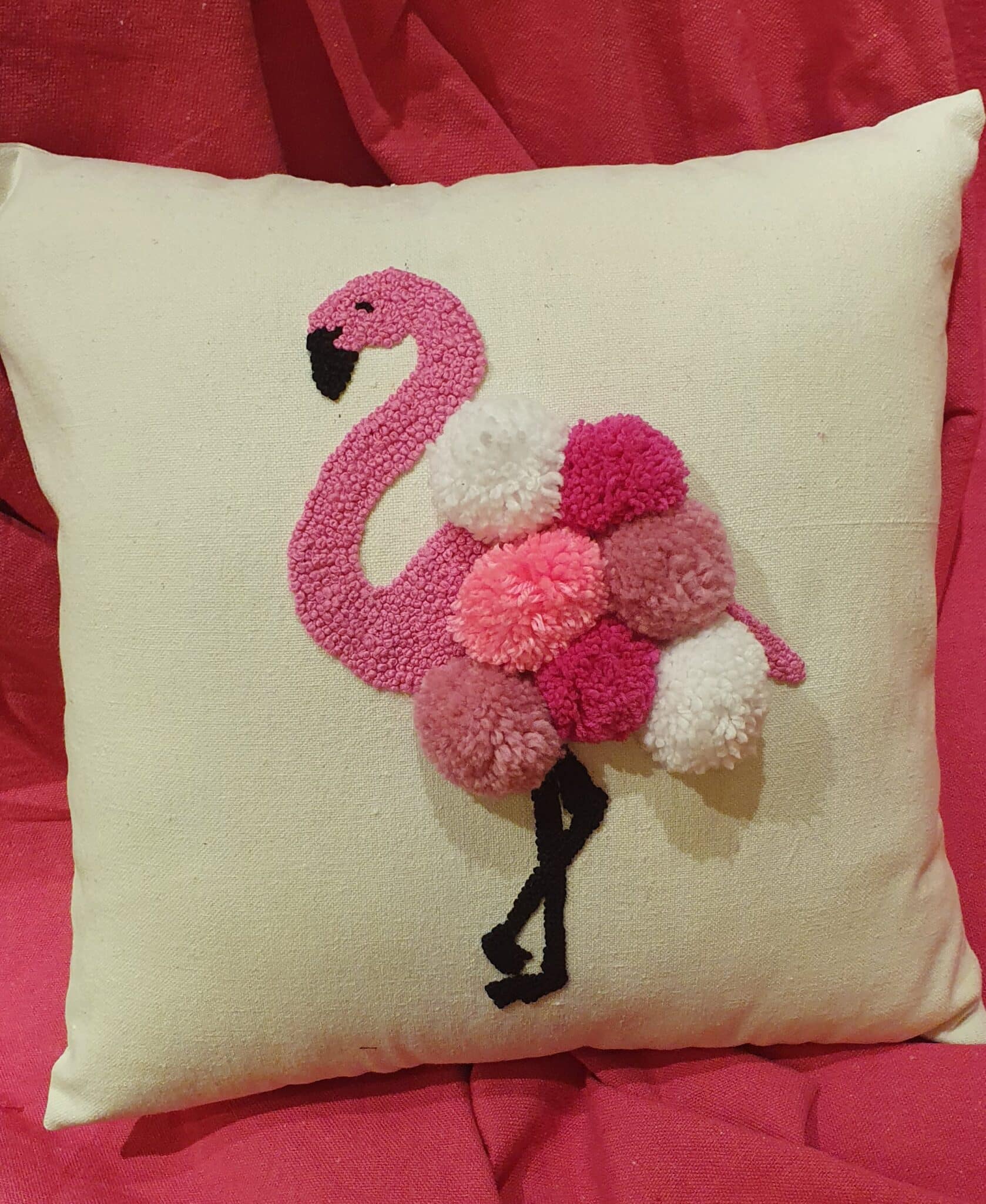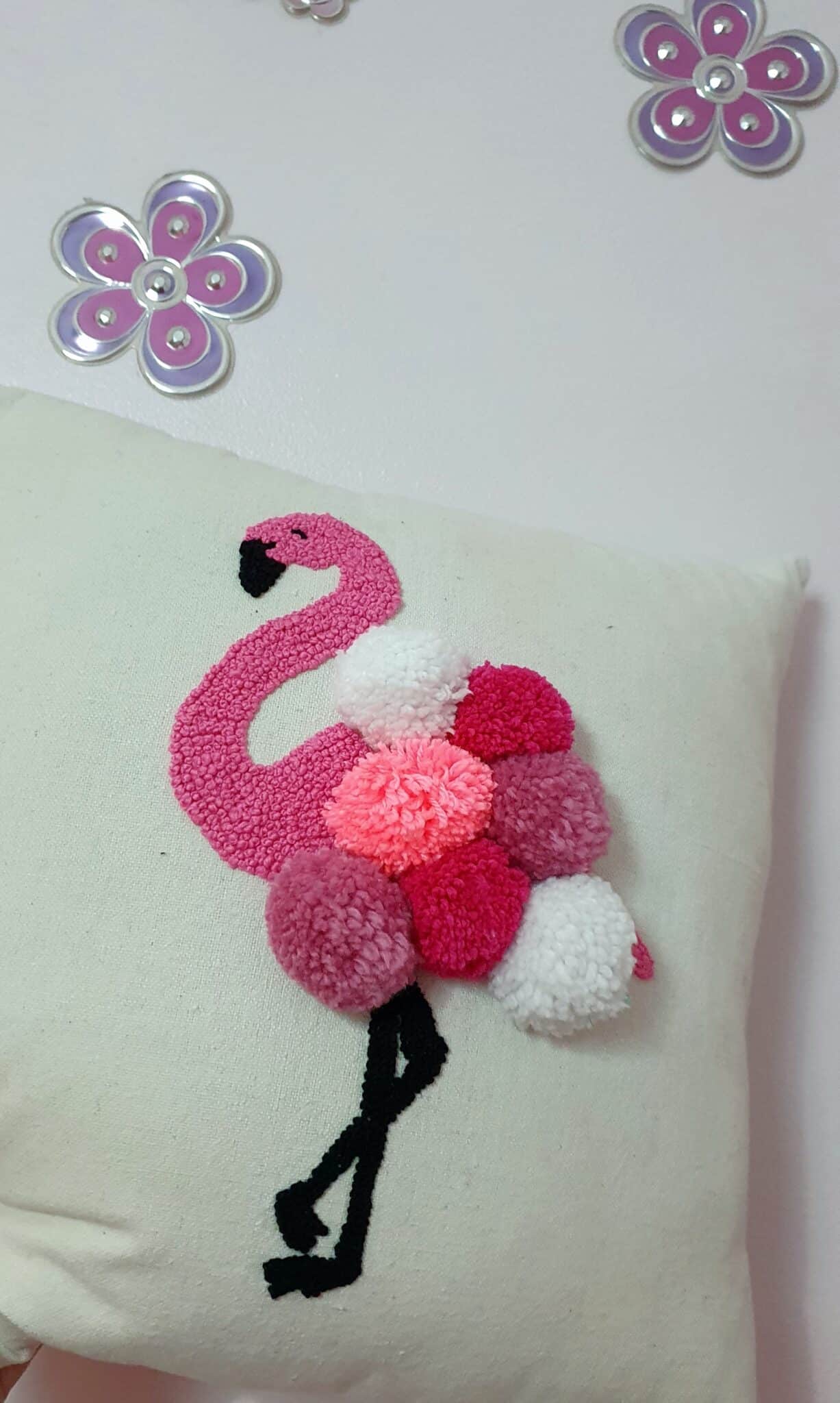 Handmade embroidery flamingo design 40×40 cm cushin .you can get it on cushin or Tara or tote bag .just chose.