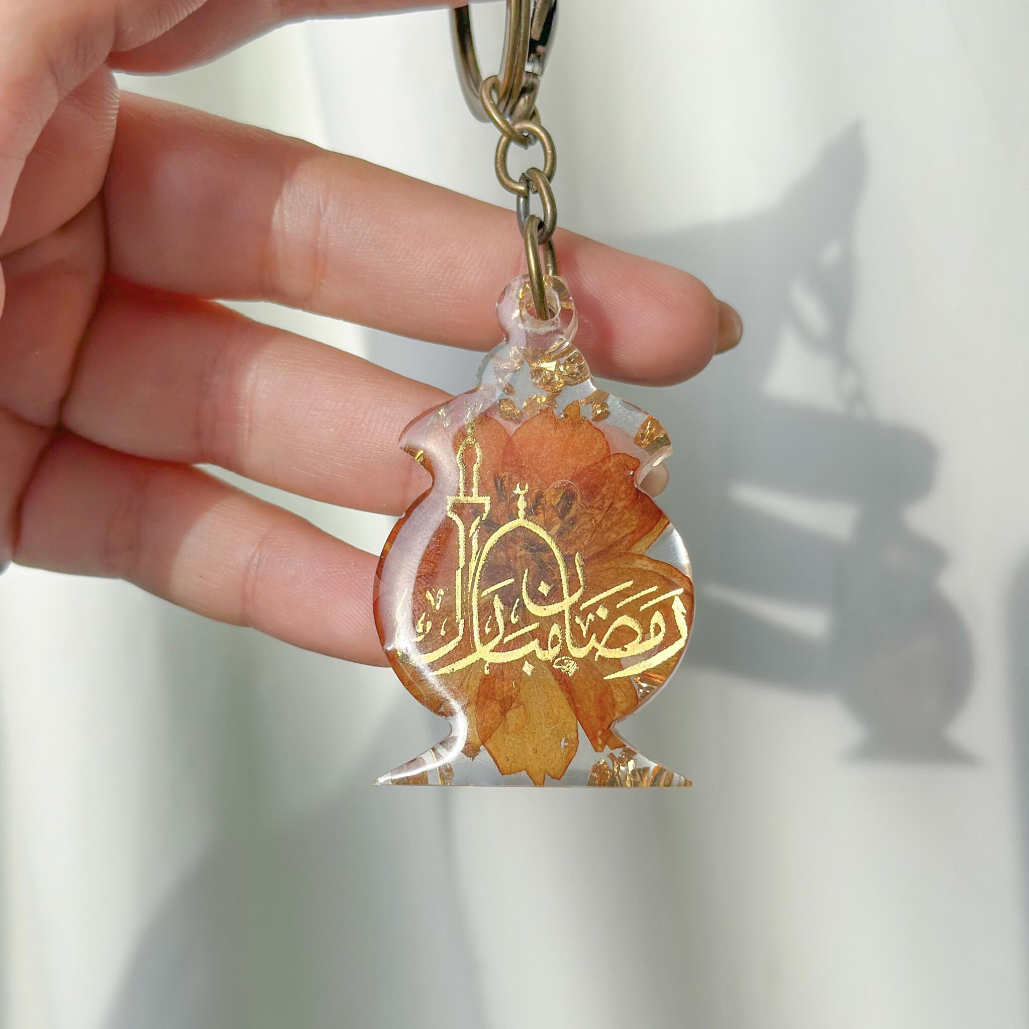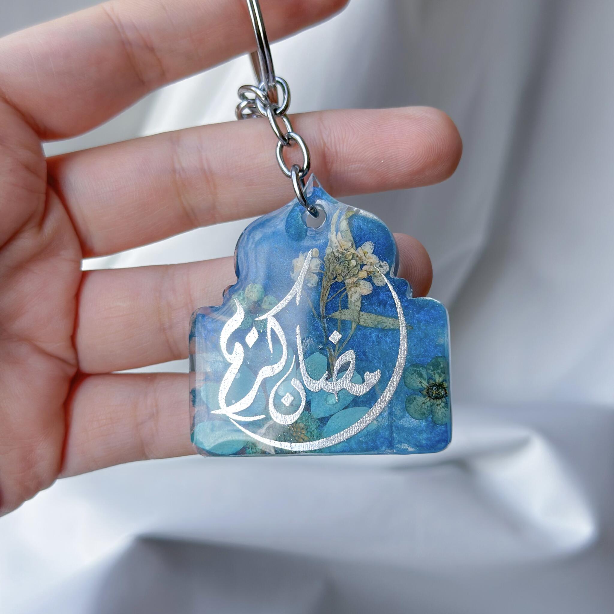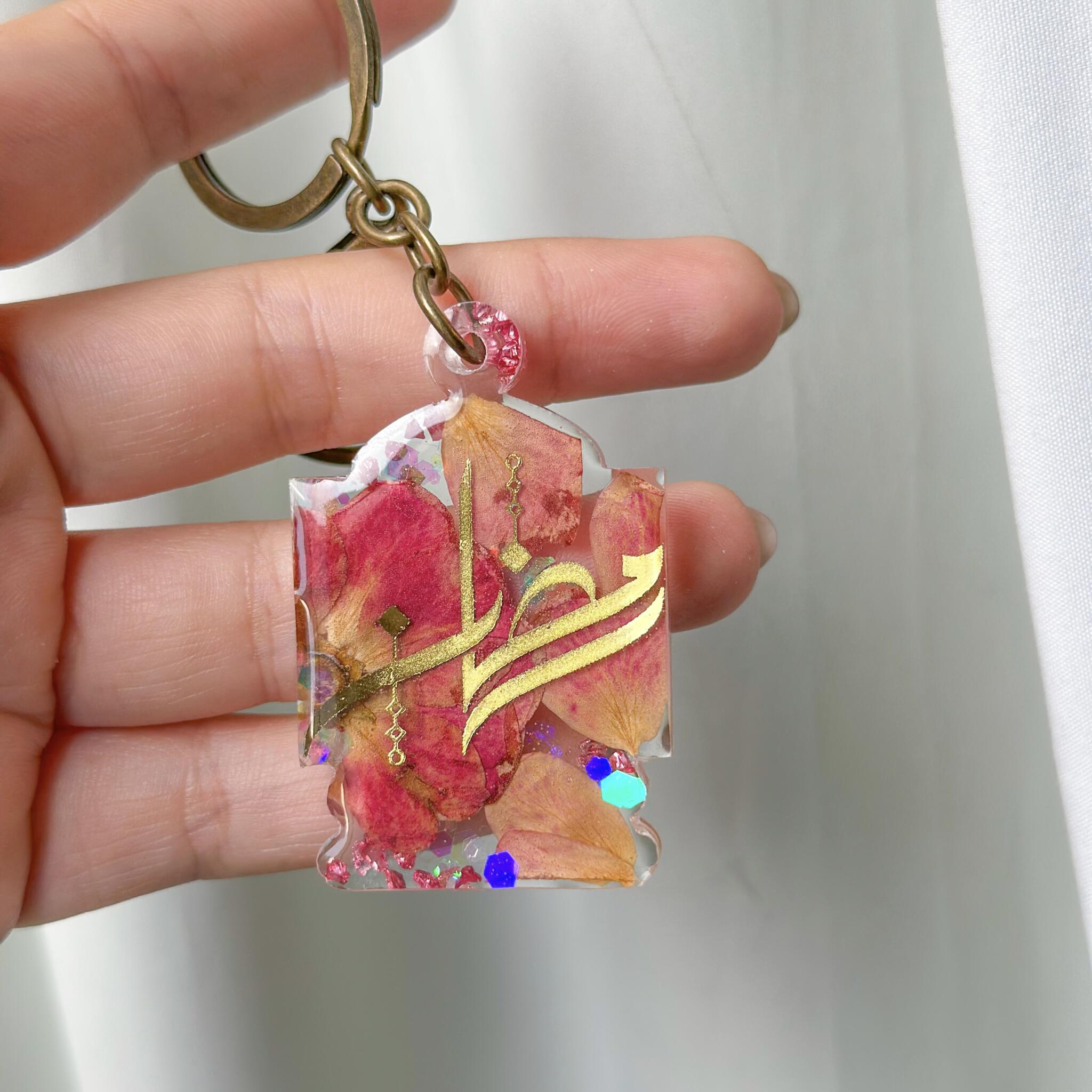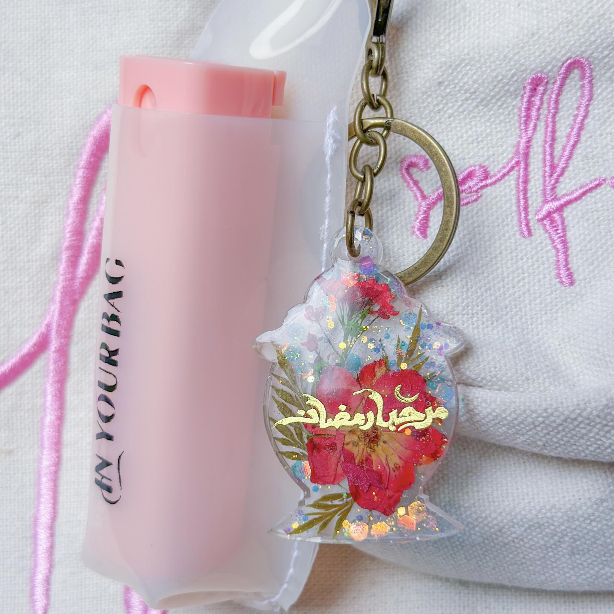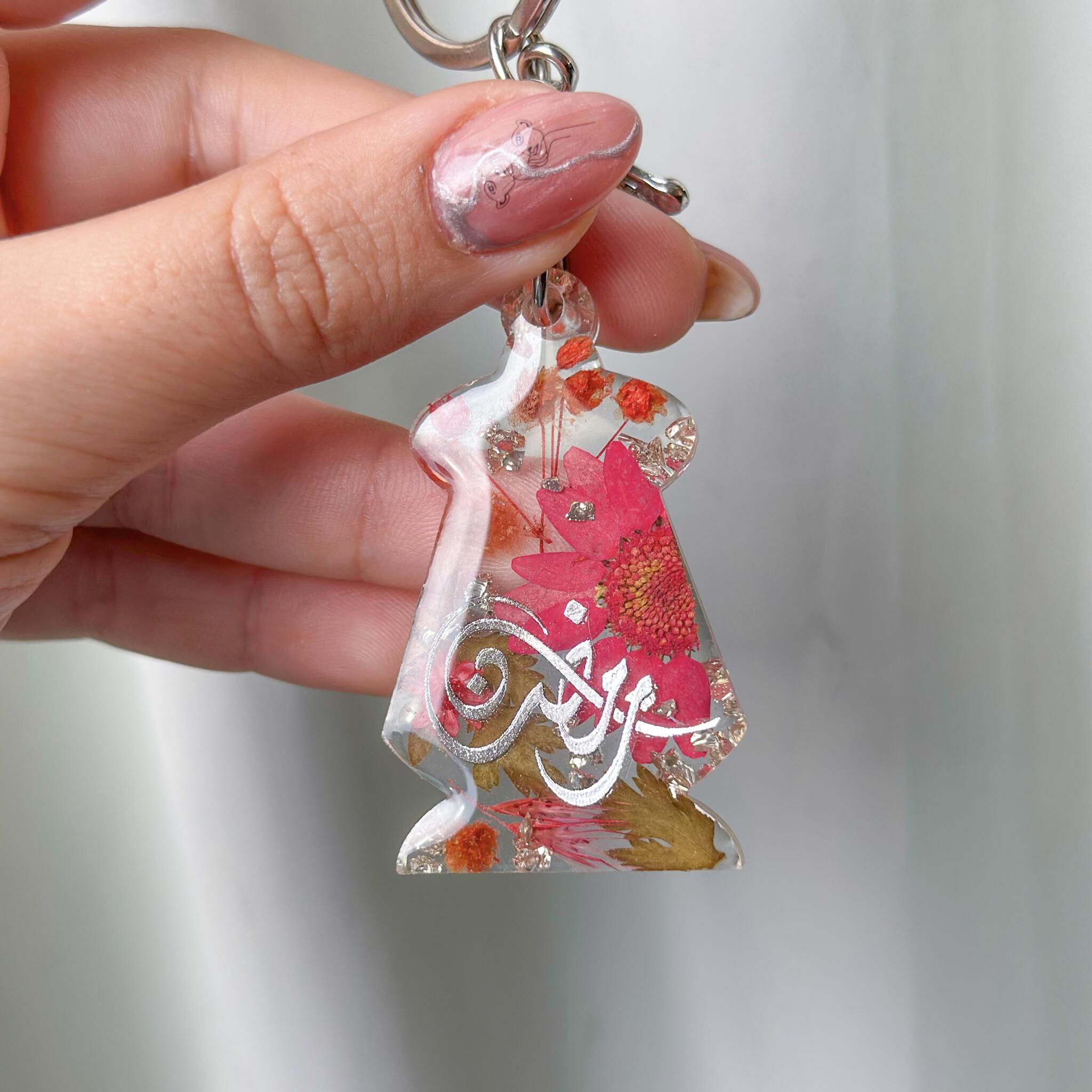This exquisite handcrafted resin keychain is a true work of art, made with real preserved flowers, delicate shimmer, and carefully embedded Arabic calligraphy. Each charm is individually poured and designed, ensuring that no two pieces are ever the same.
