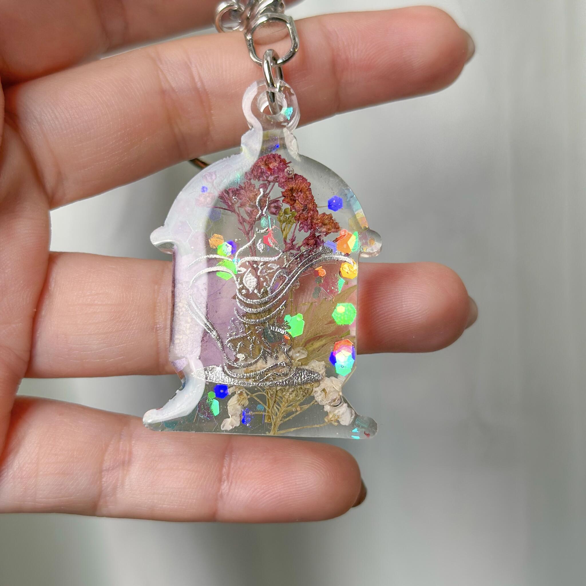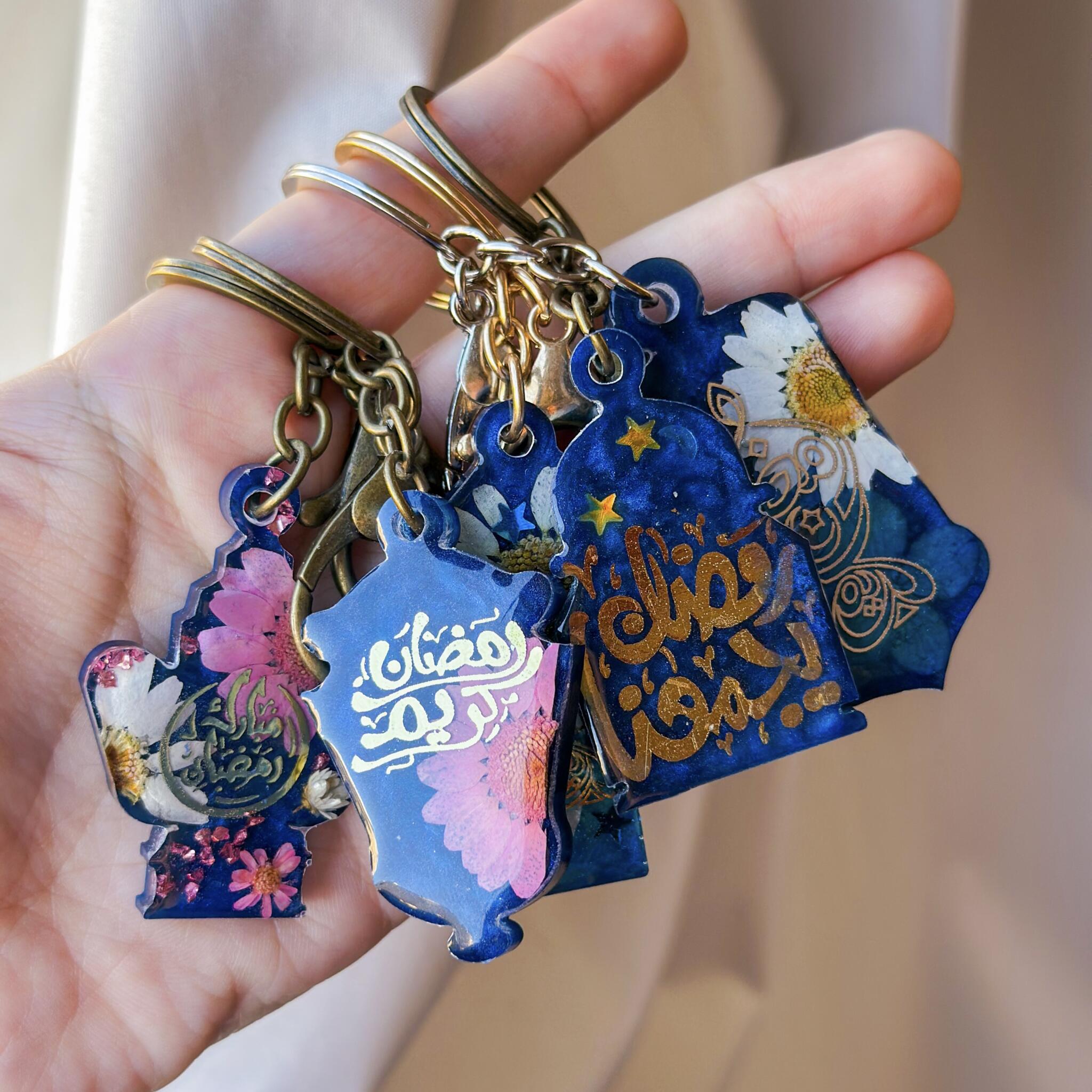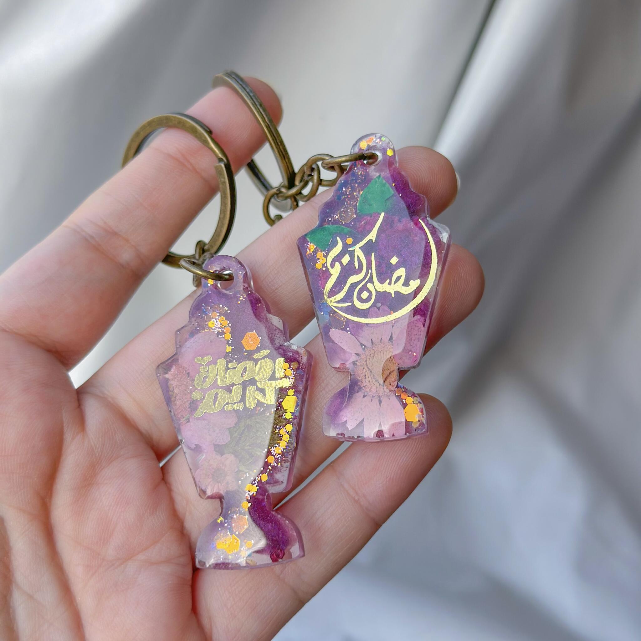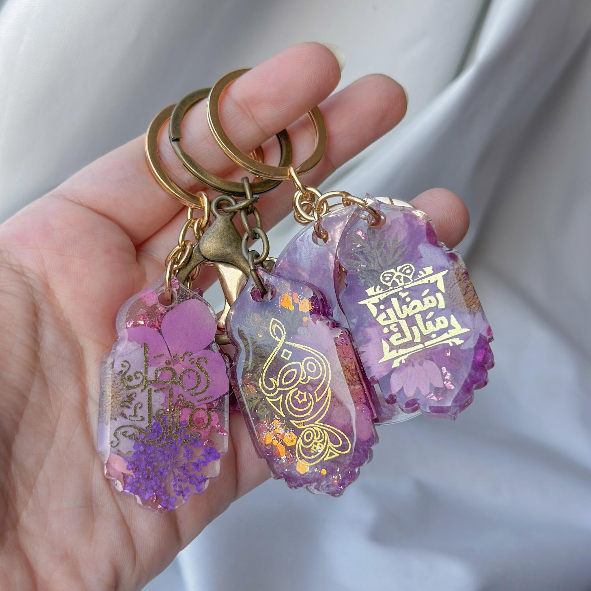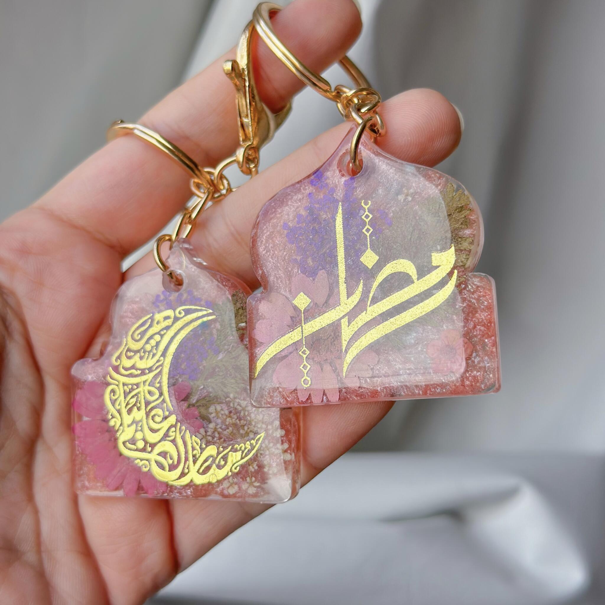 This exquisite handcrafted resin keychain is a true work of art, made with real preserved flowers, delicate shimmer, and carefully embedded Arabic calligraphy. Each charm is individually poured and designed, ensuring that no two pieces are ever the same.