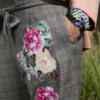 • Hand-applied floral fabric patches