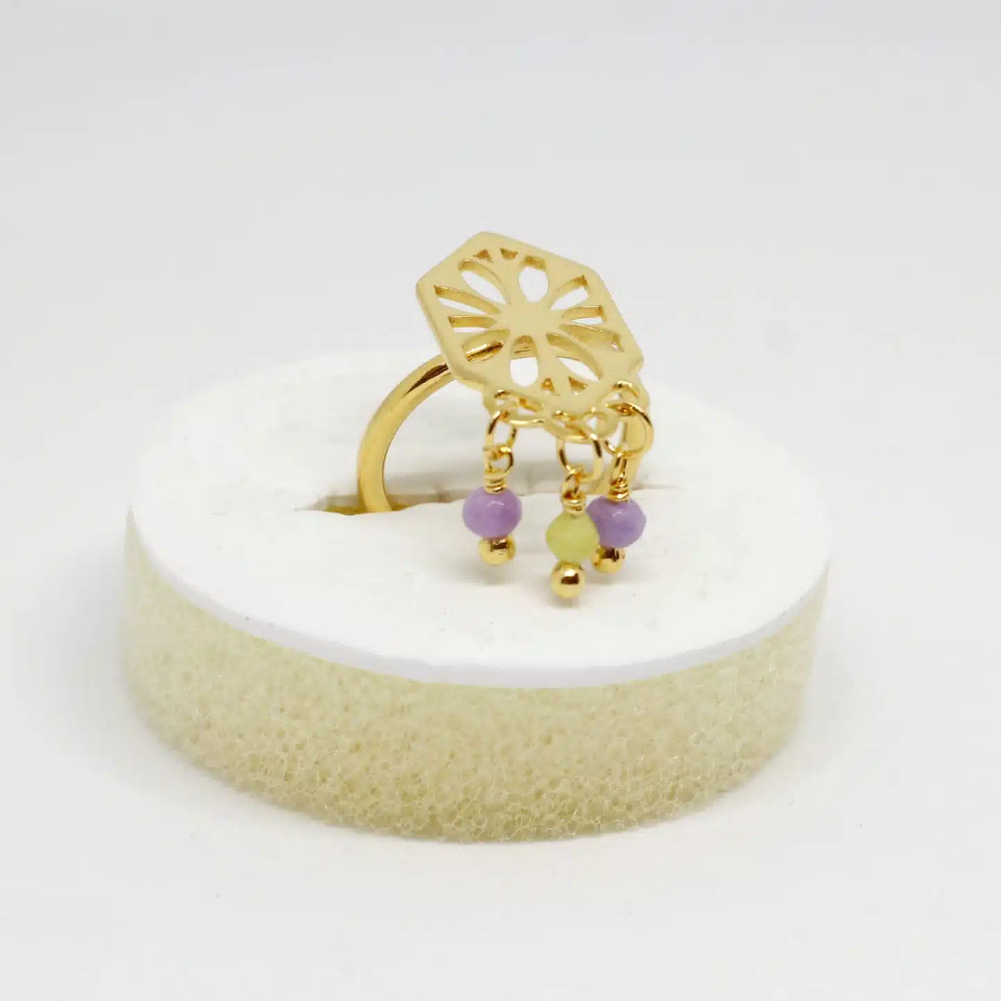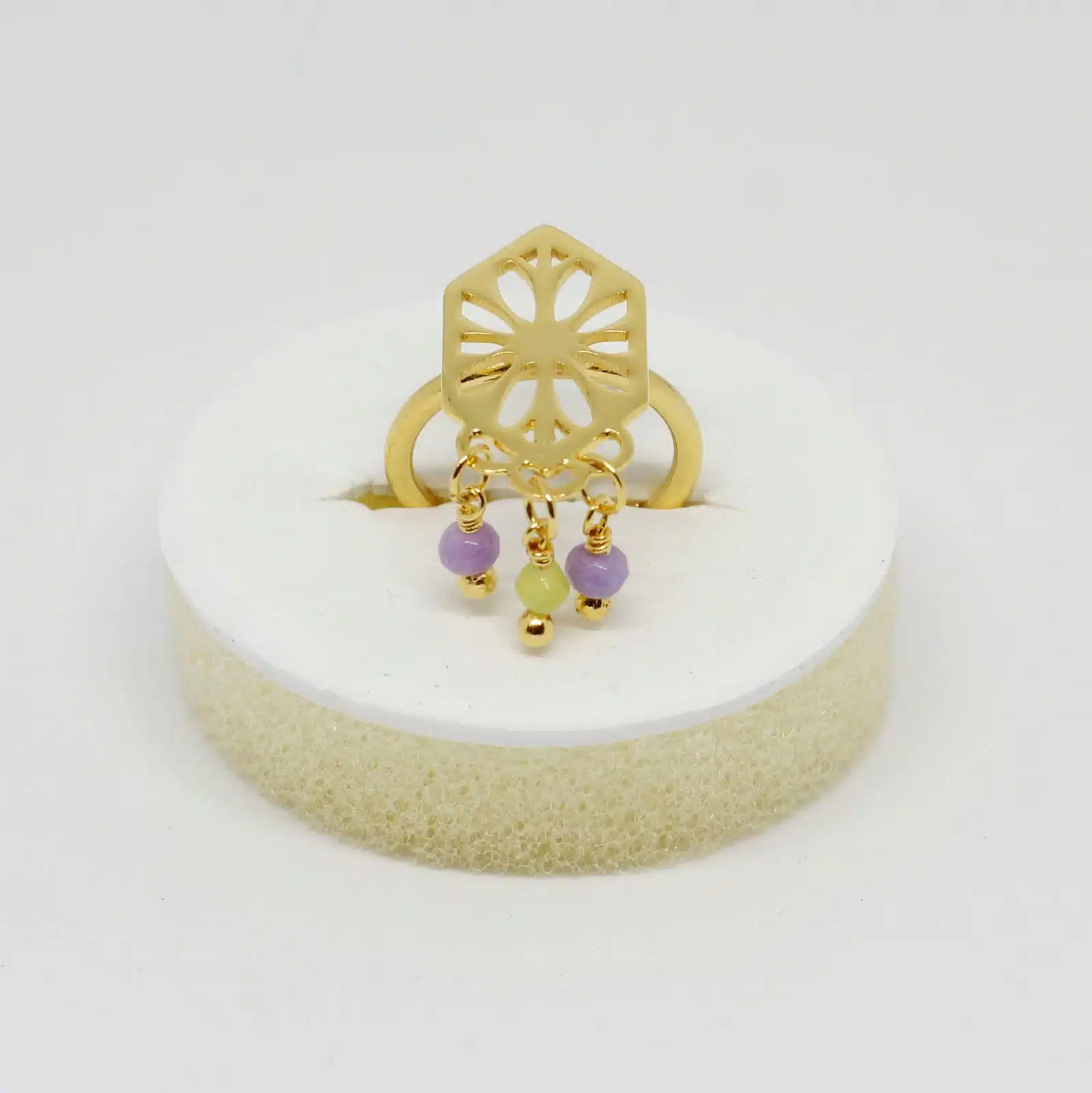 خاتم ورده مستوحي من الطبيعة بأحجار عقيق