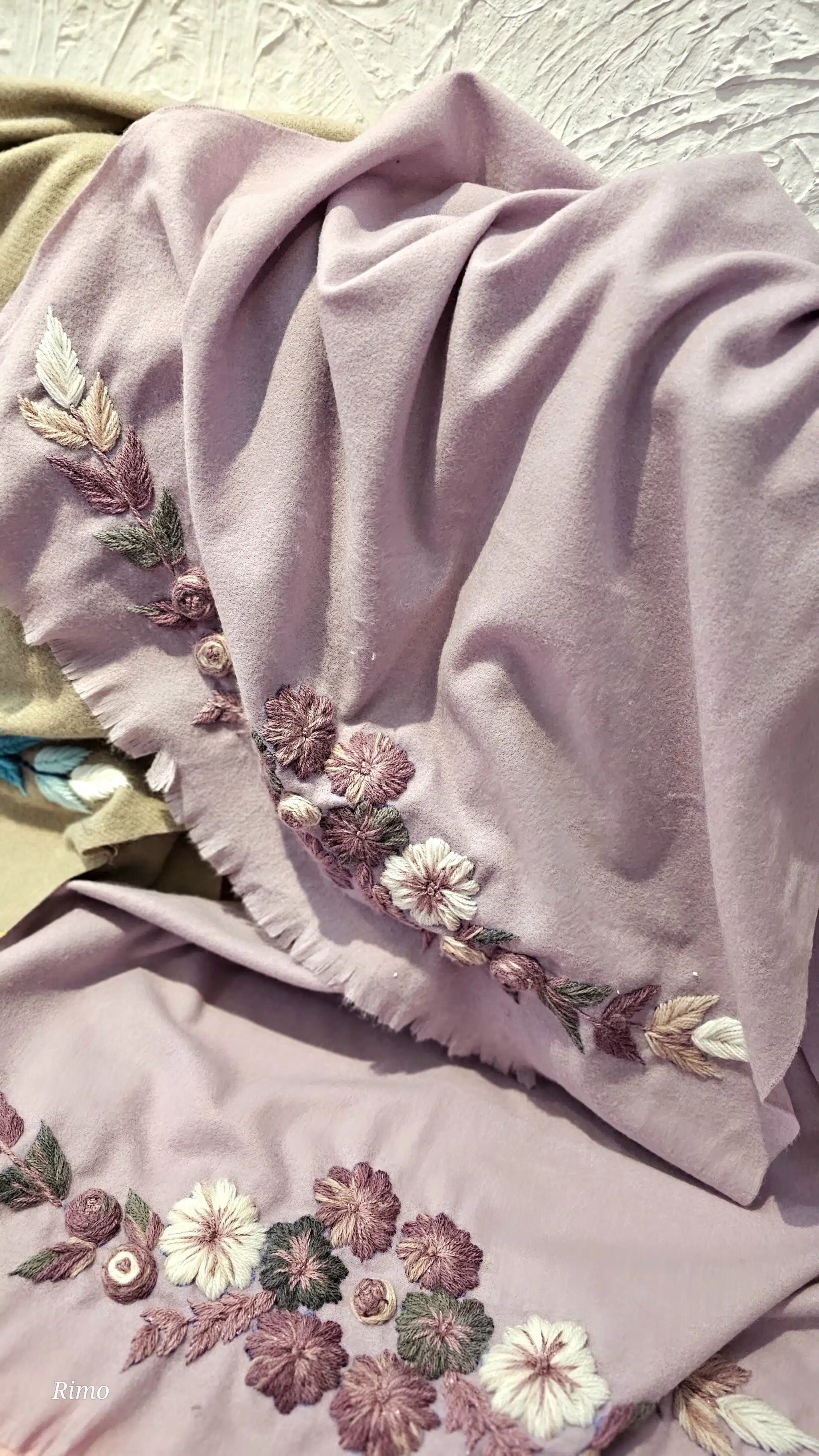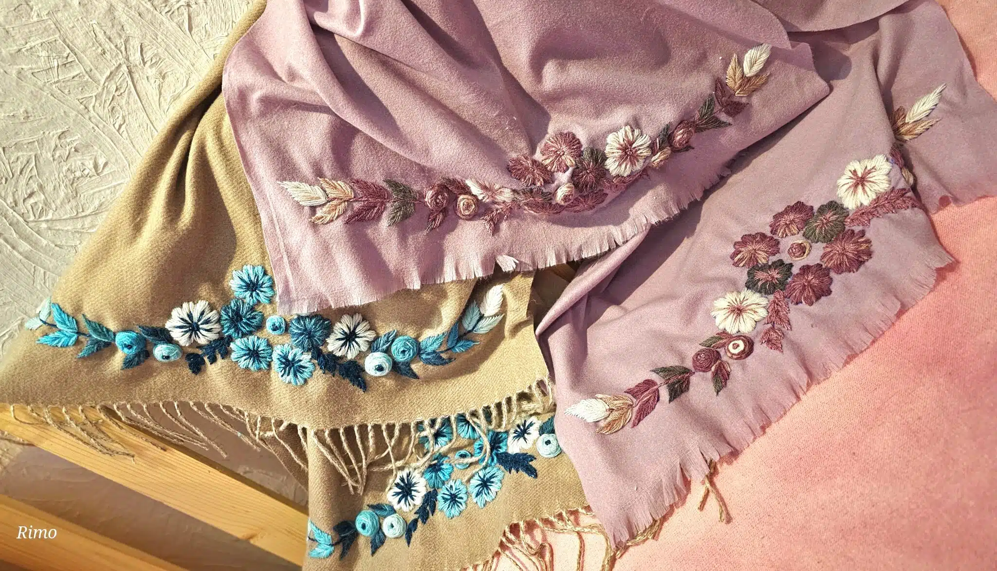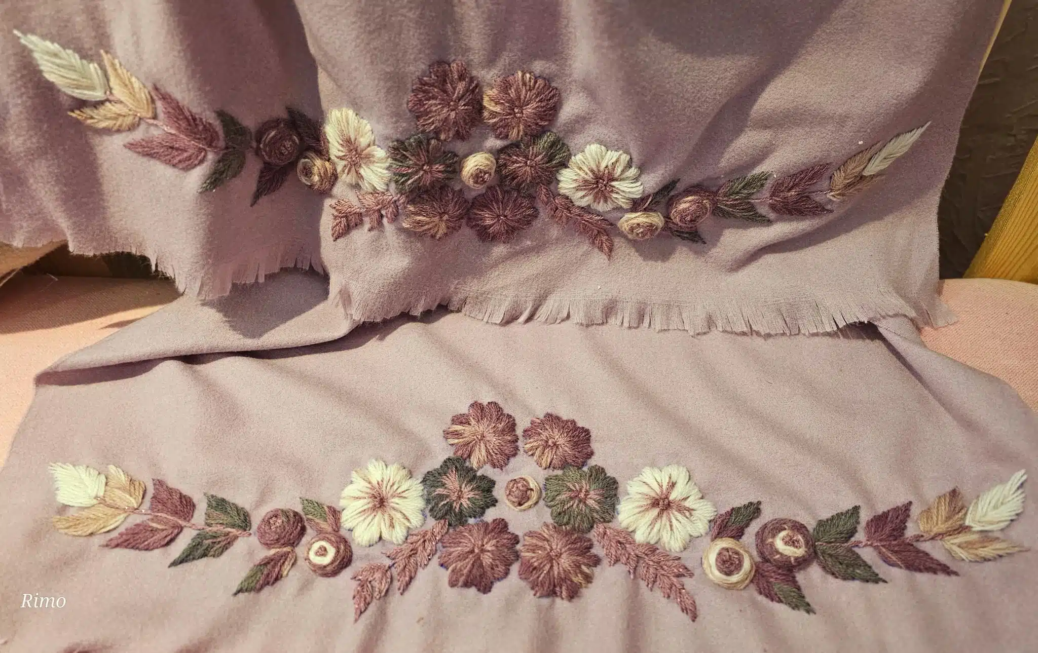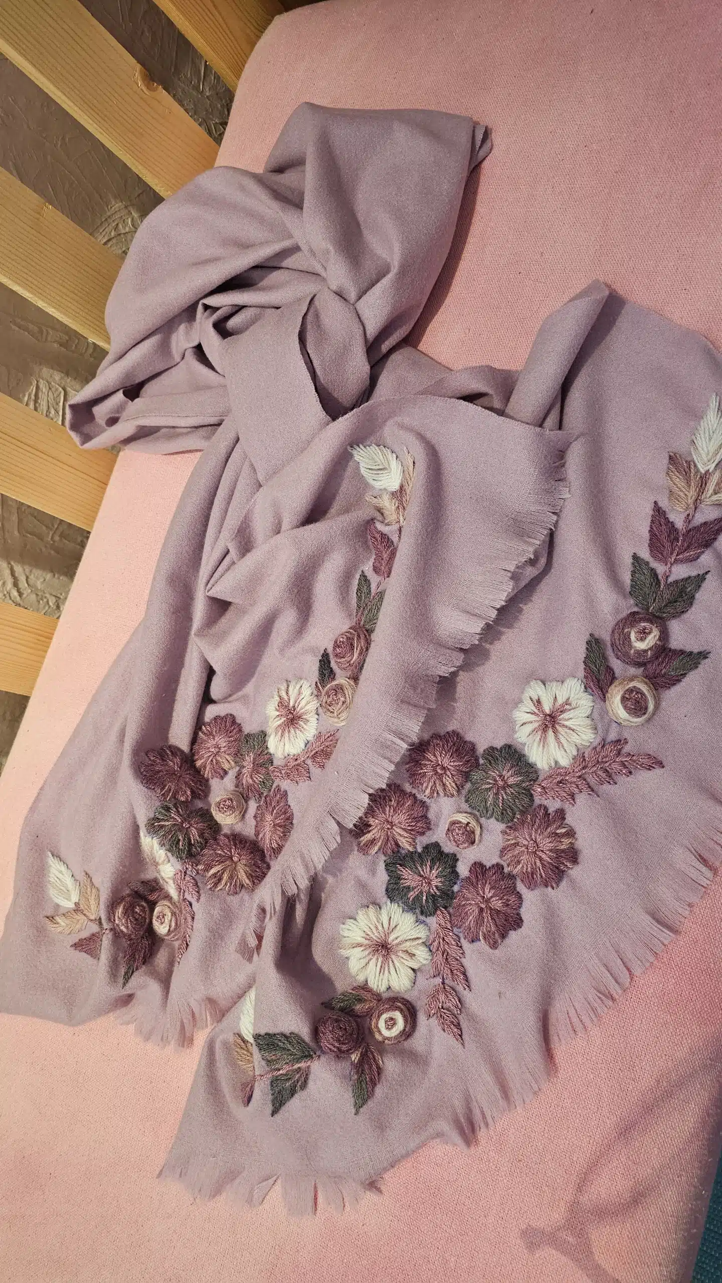 شال صوف موهير متوسط السمك 2×55سم تطريز يدوى متاح درجات الألوان المرفقة