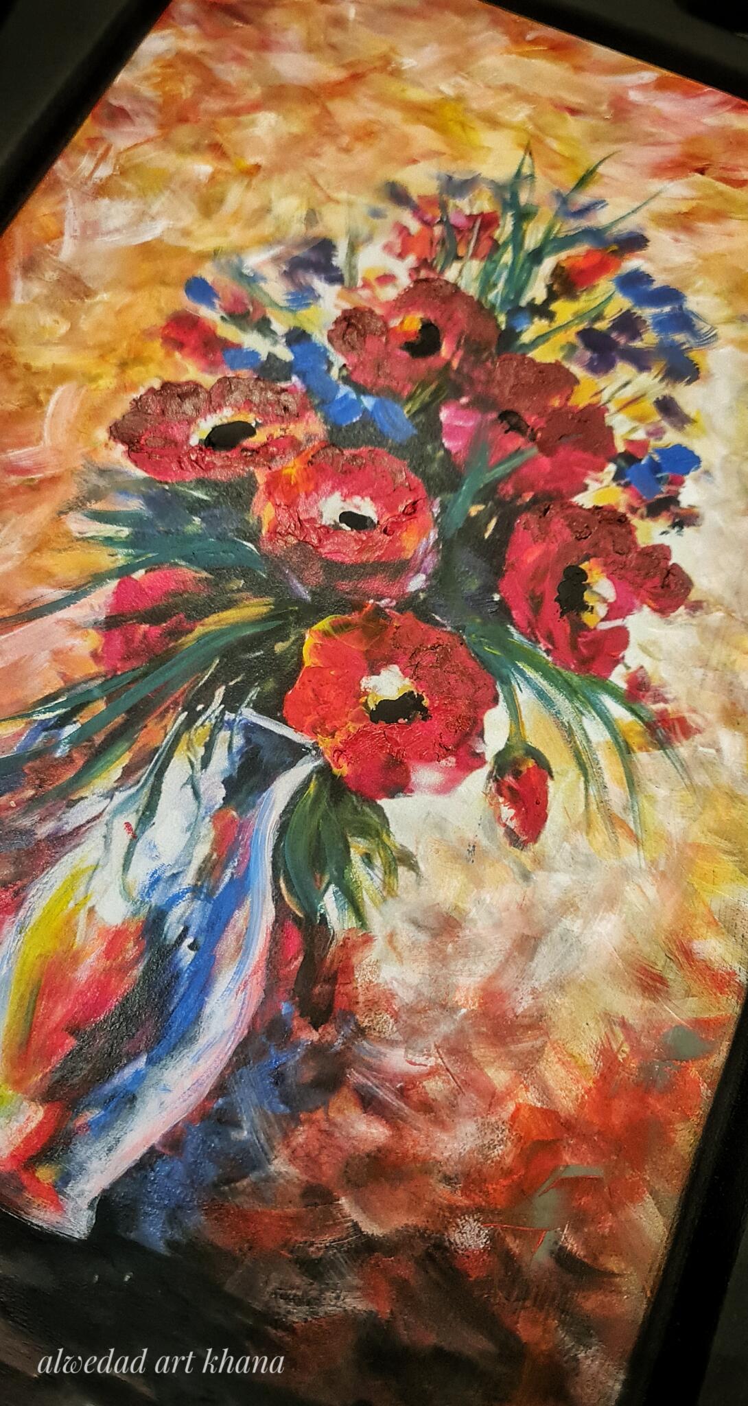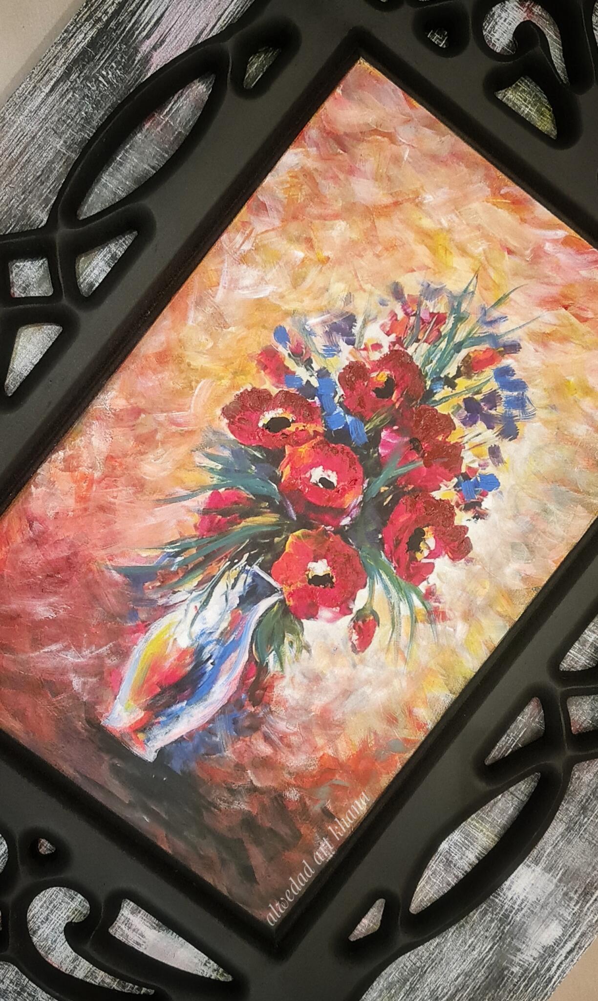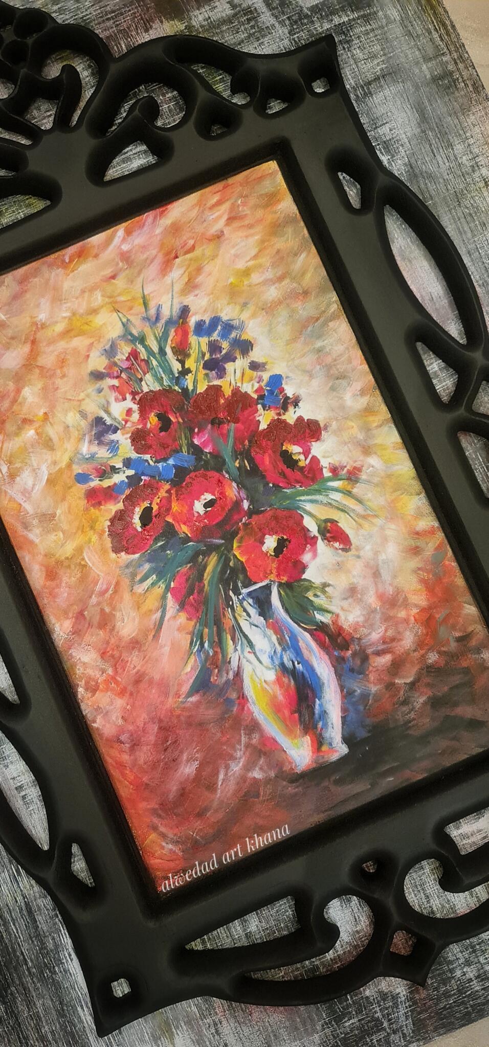 Decoupaged With Red Flowers Vase Photo